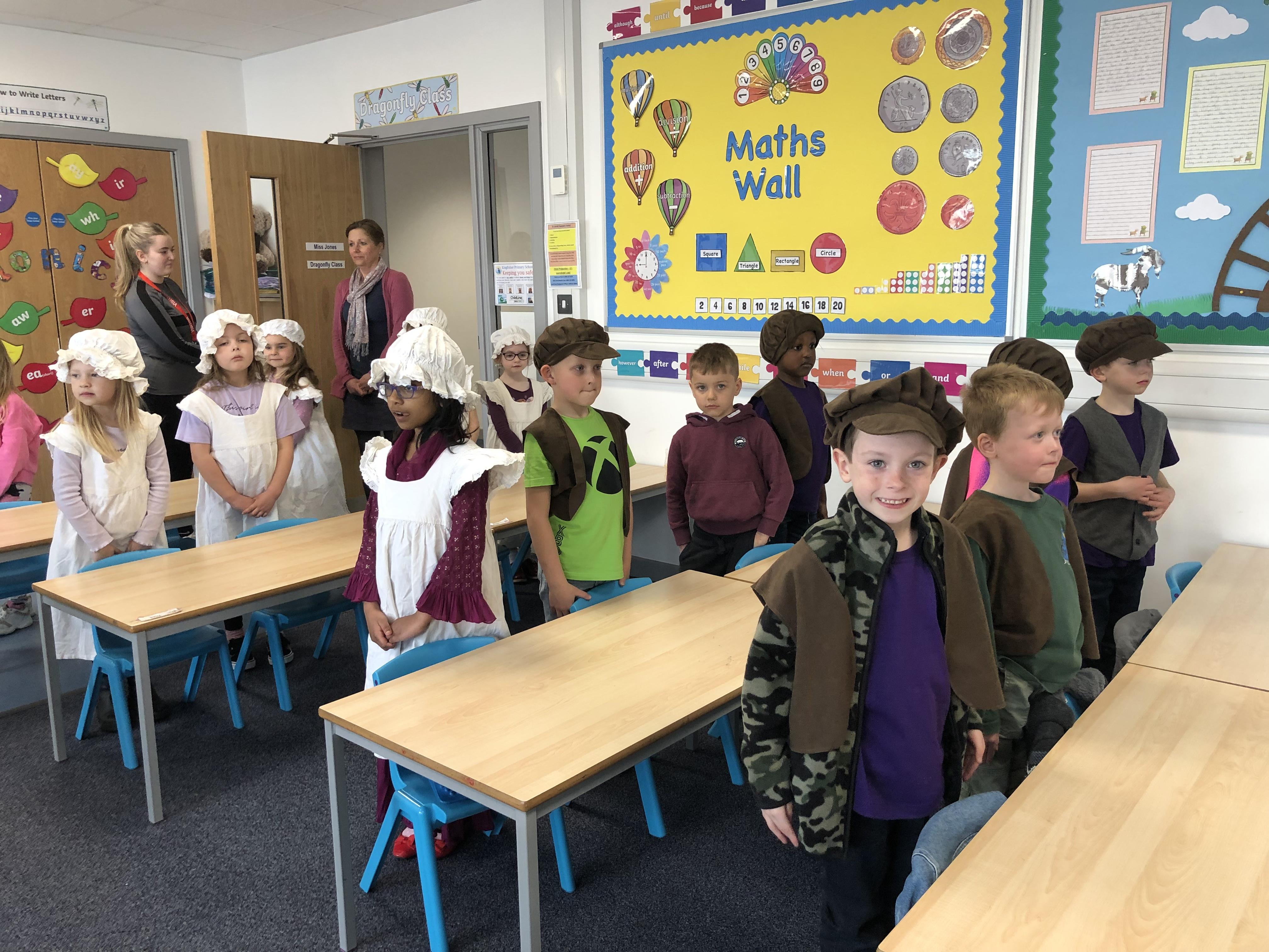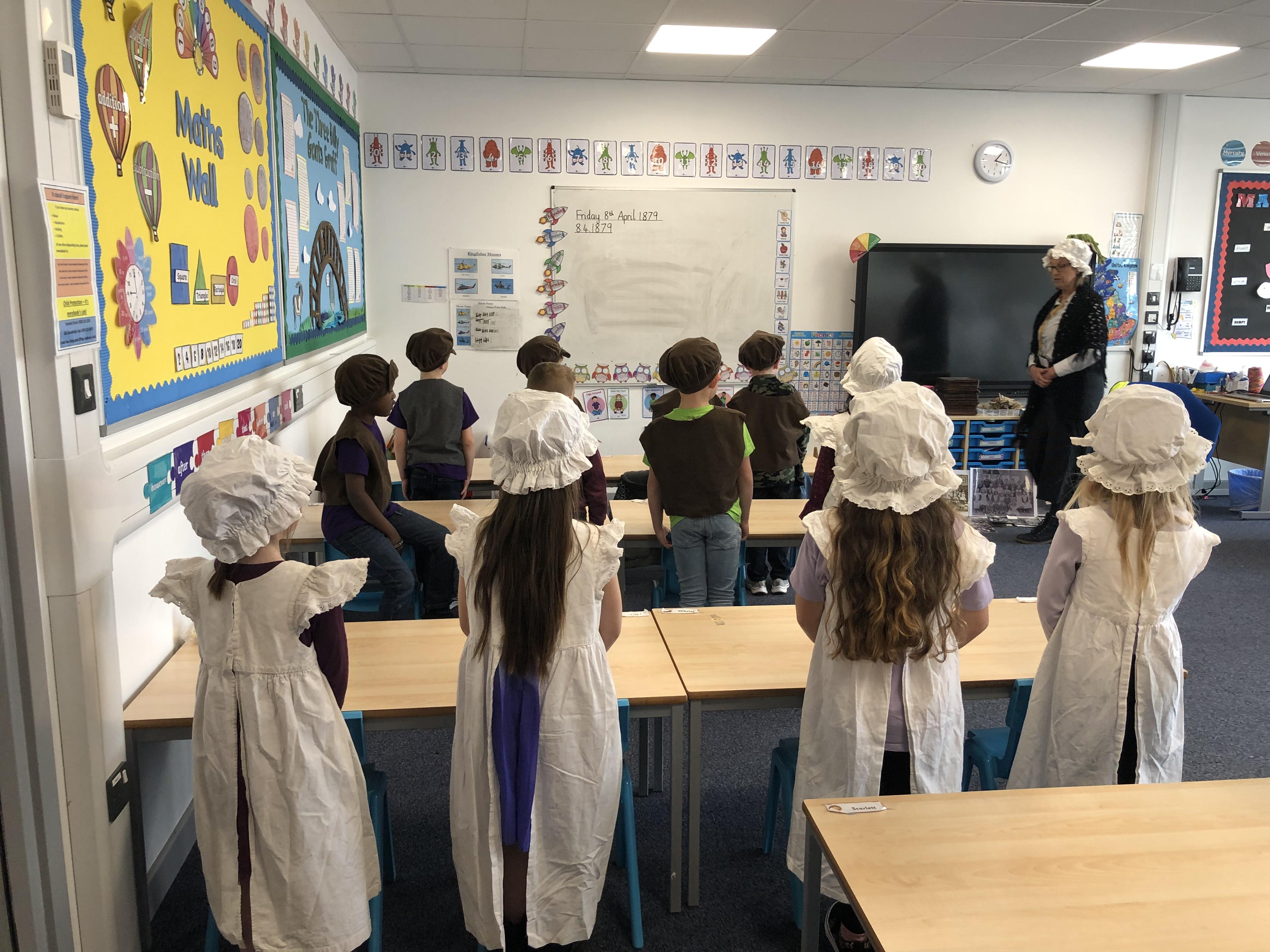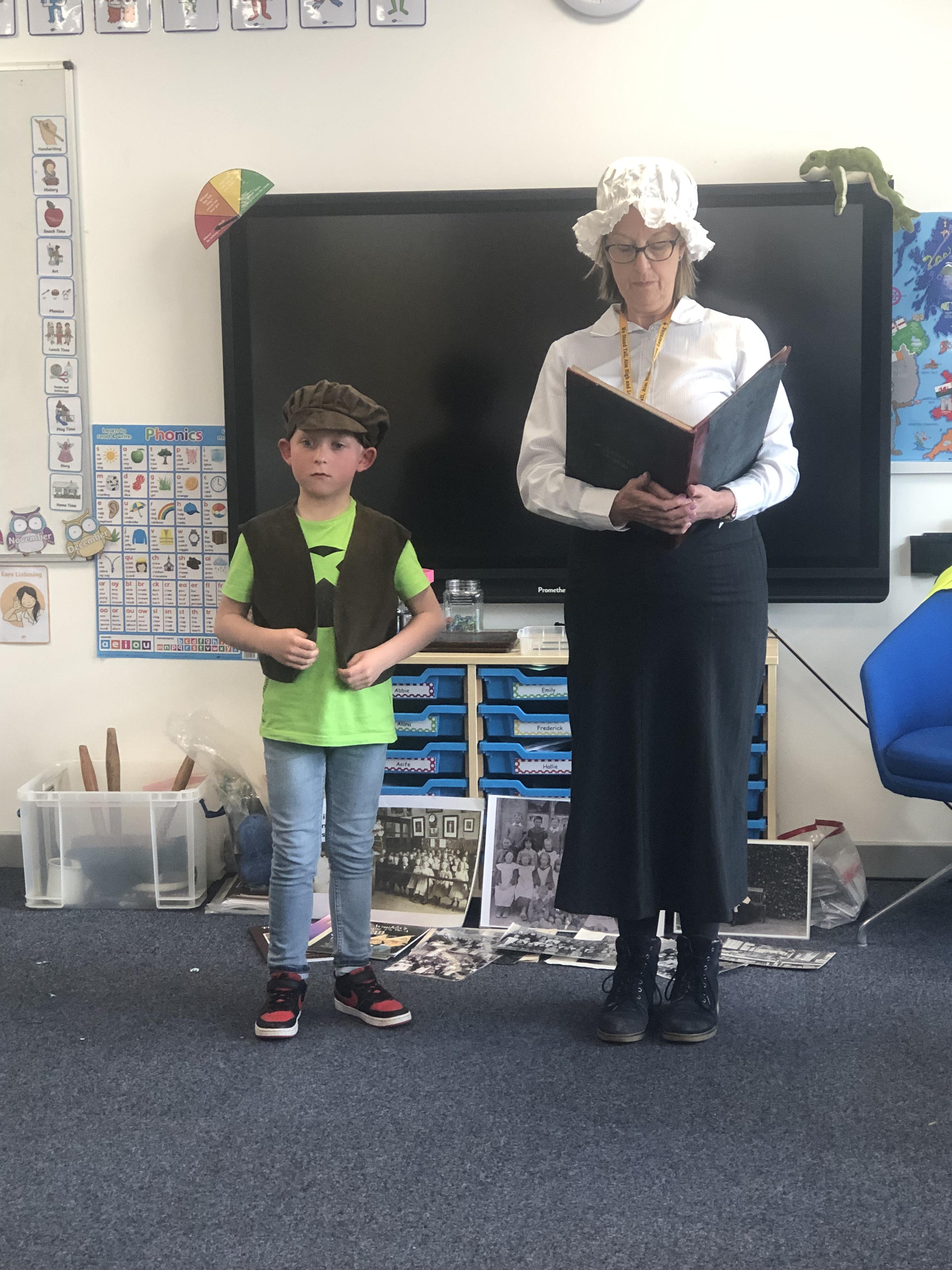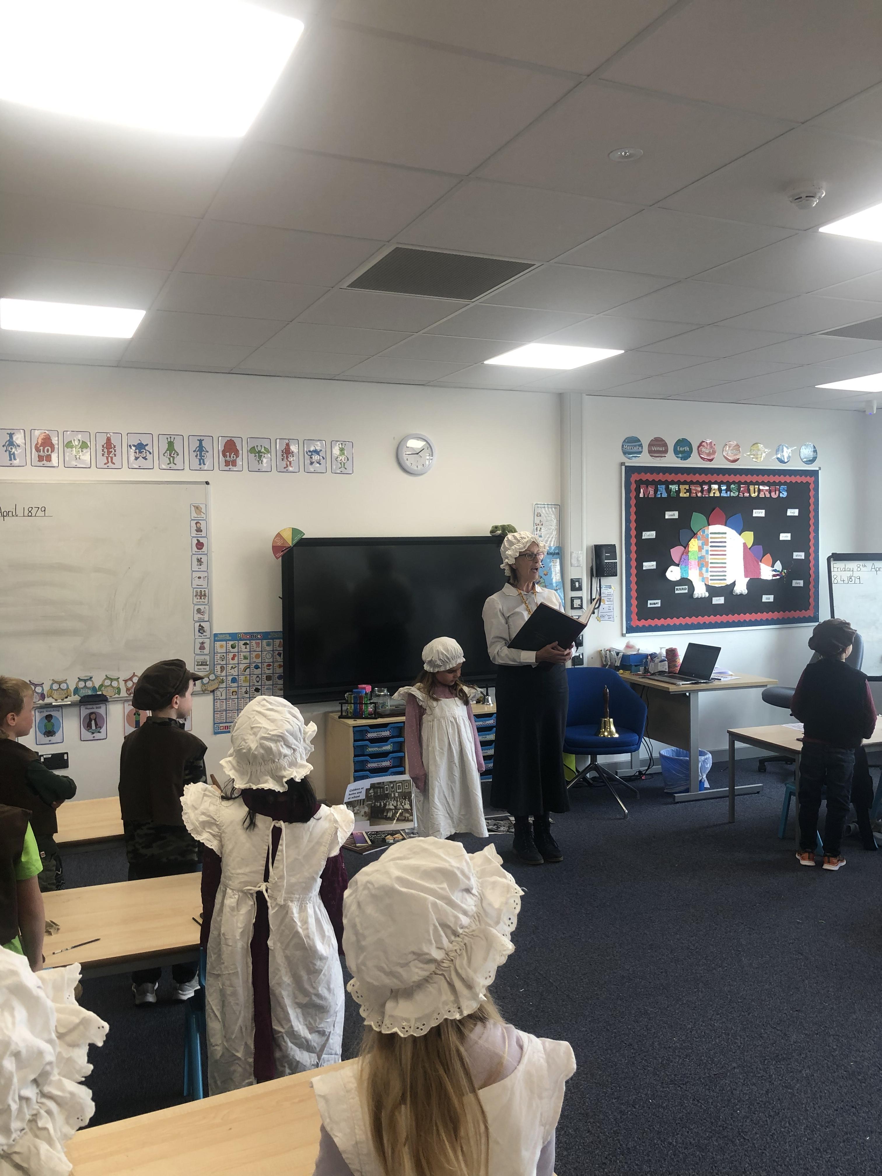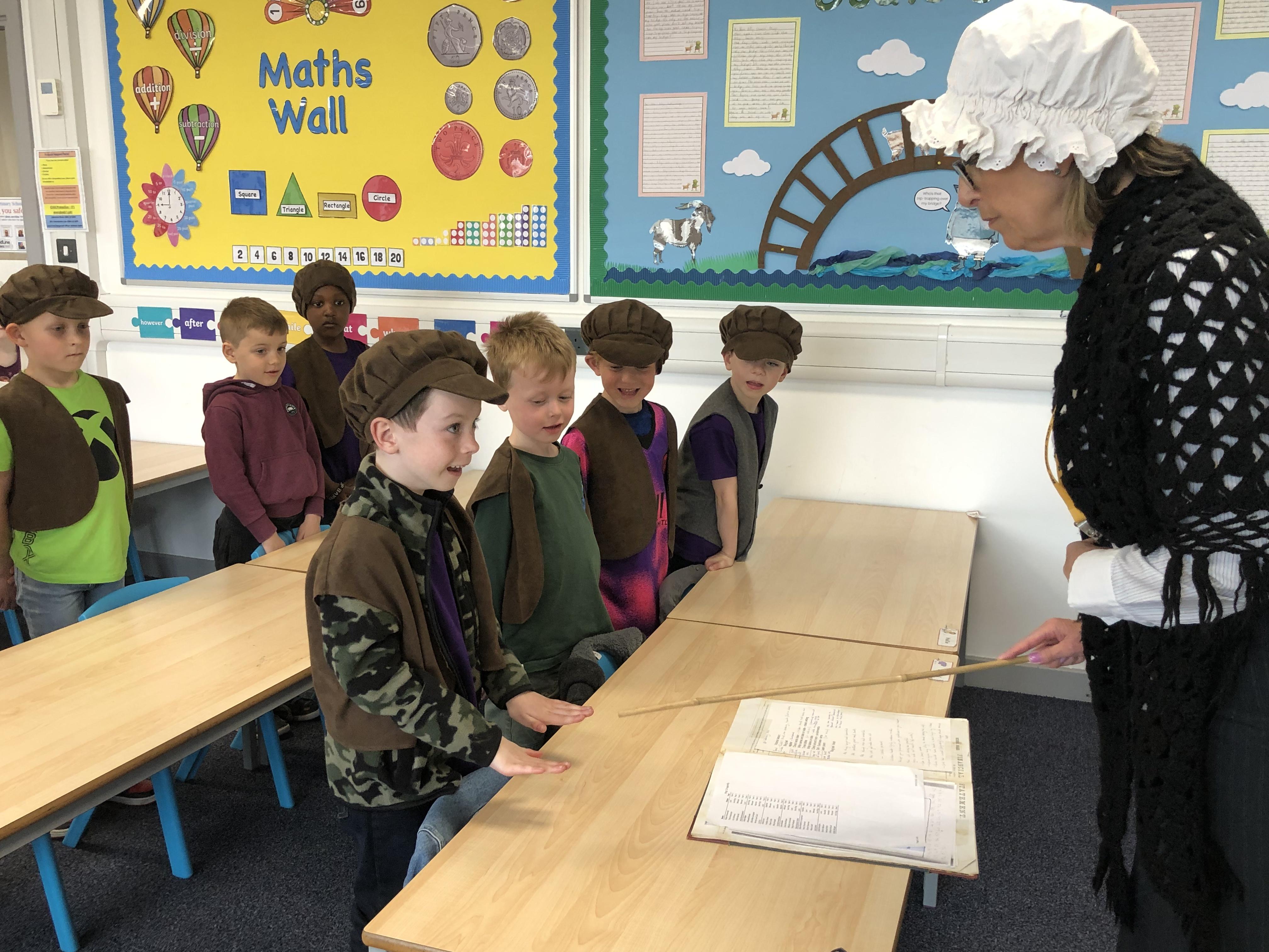 This afternoon, the children were very lucky to have a visit from Sharon from the South West Heritage Trust. She gave the children a glimpse of what school was like for Victorian children. All the children were given the opportunity to dress up as a Victorian school child; a waistcoat and cap for the boys and a dress and bonnet for the girls. The boys and girls were split up in class, just like what happened in Victorian schools and they were able to try out writing on slates. Everyone also had a go at sewing and practising handwriting. Sharon very kindly showed the children a range of Victorian artefacts. It was a really fun afternoon with the children super engaged throughout. It goes without saying that they are all very happy that school life has advanced since the Victorian times.