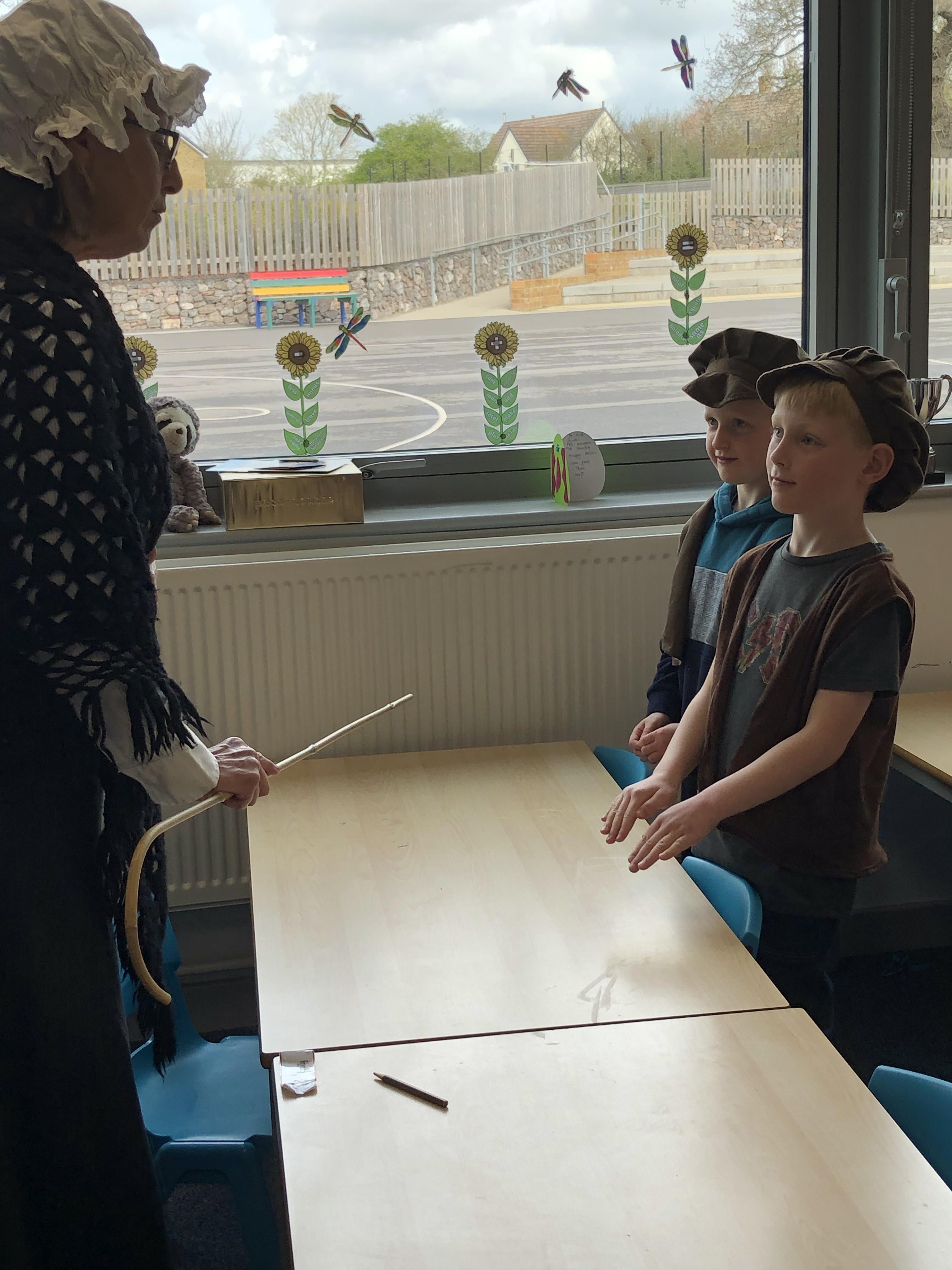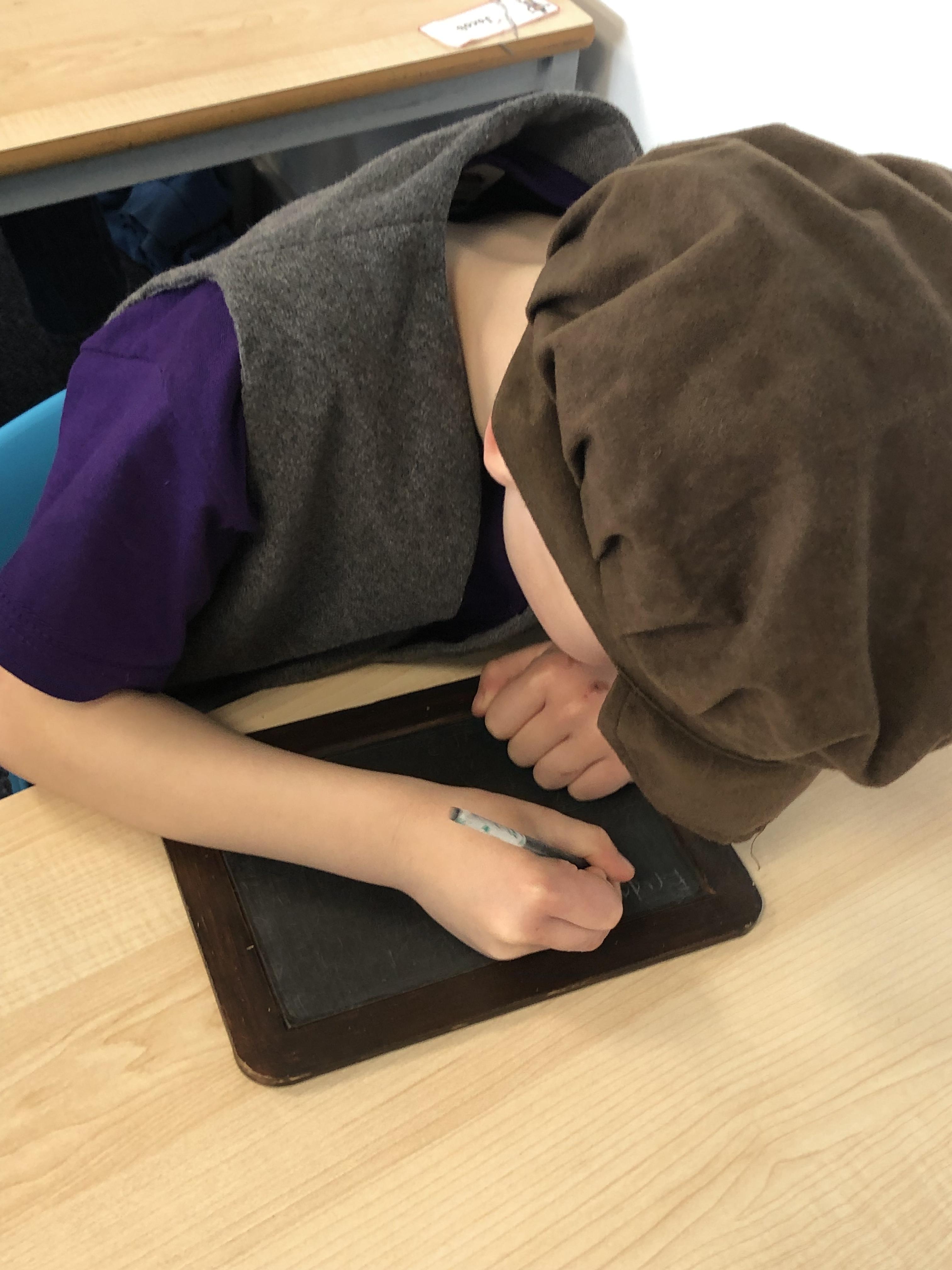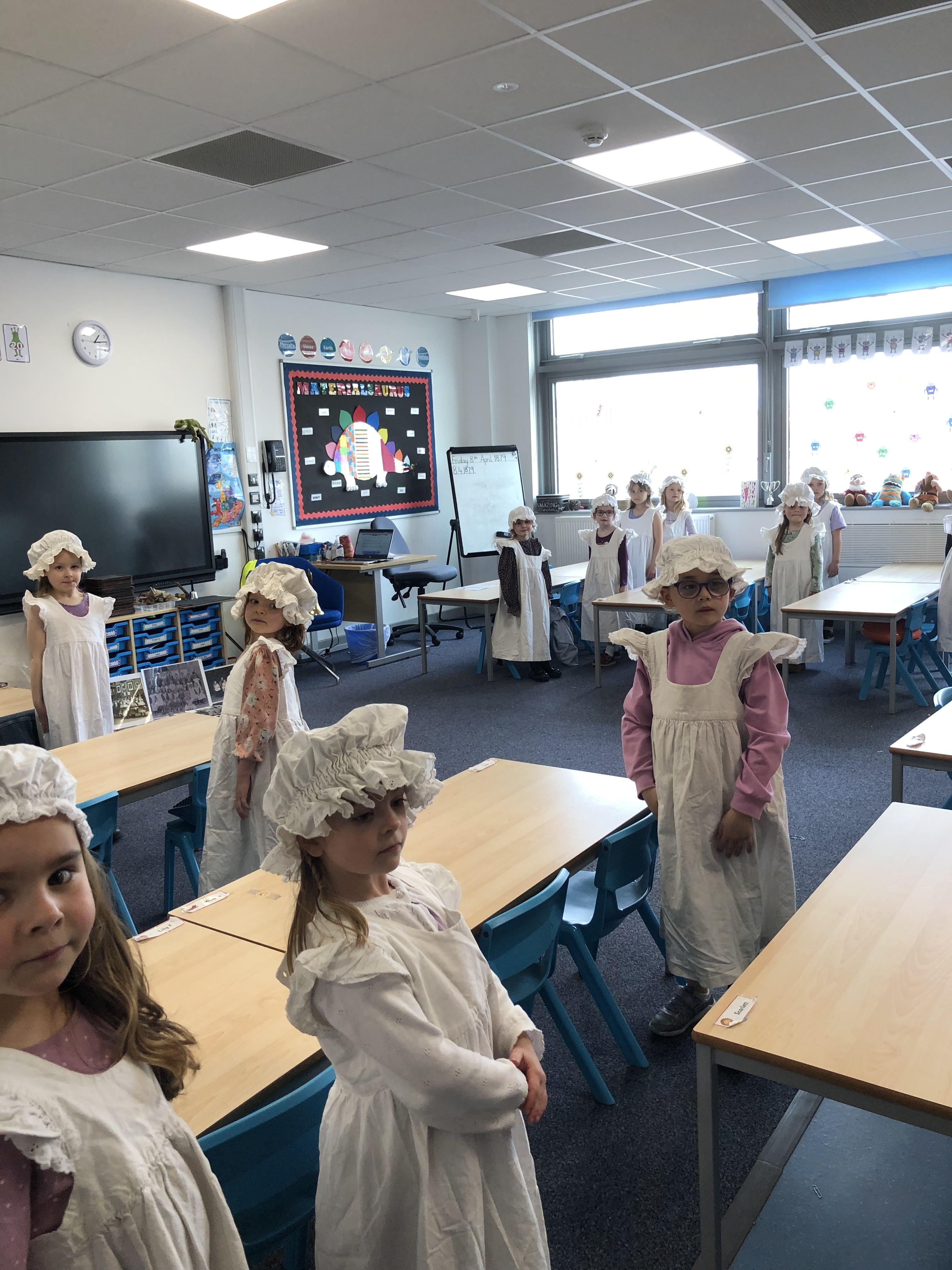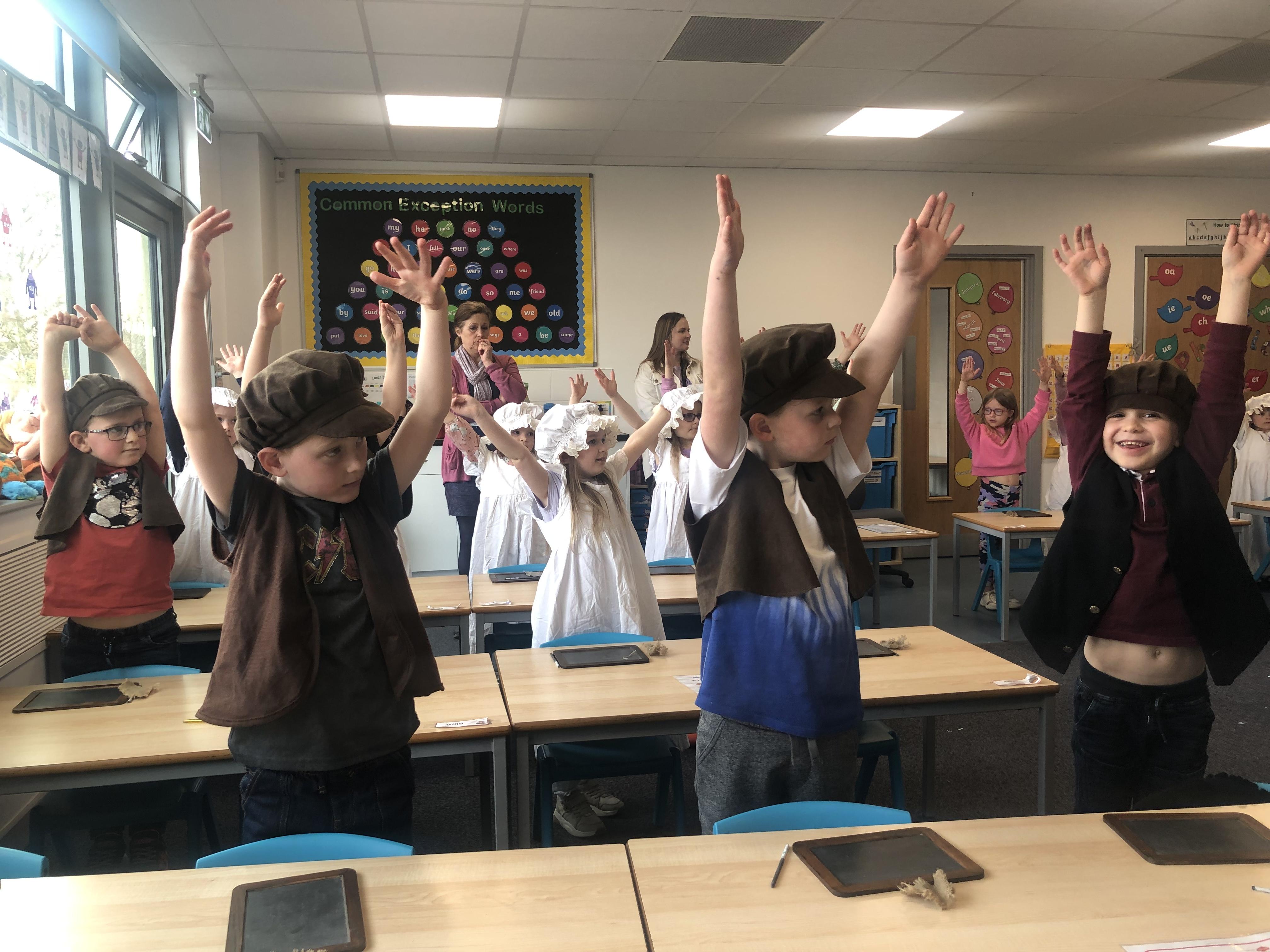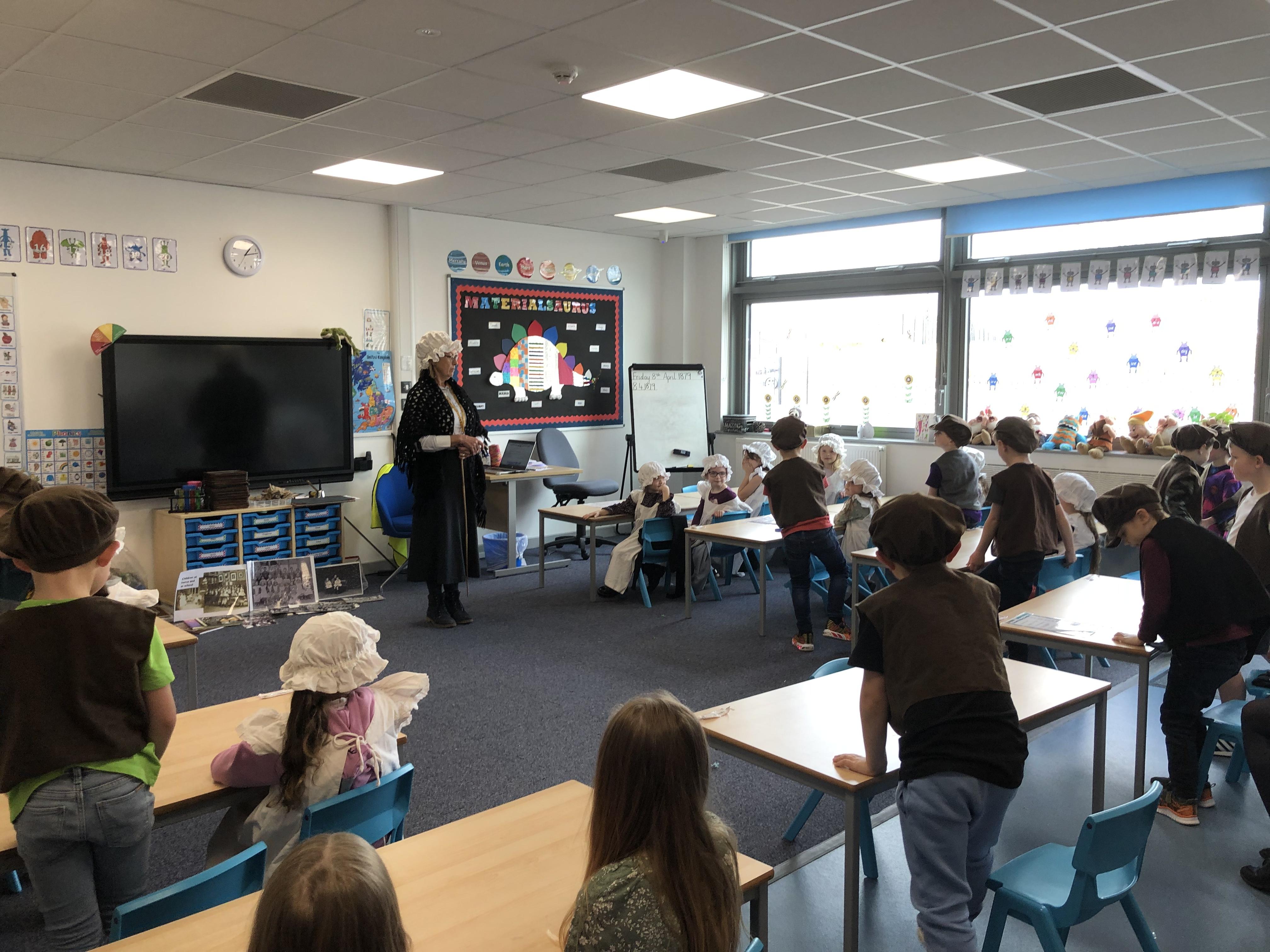 This afternoon, the children were very lucky to have a visit from Sharon from the South West Heritage Trust. She gave the children a glimpse of what school was like for Victorian children. All the children were given the opportunity to dress up as a Victorian school child; a waistcoat and cap for the boys and a dress and bonnet for the girls. The boys and girls were split up in class, just like what happened in Victorian schools and they were able to try out writing on slates. Everyone also had a go at sewing and practising handwriting. Sharon very kindly showed the children a range of Victorian artefacts. It was a really fun afternoon with the children super engaged throughout. It goes without saying that they are all very happy that school life has advanced since the Victorian times.