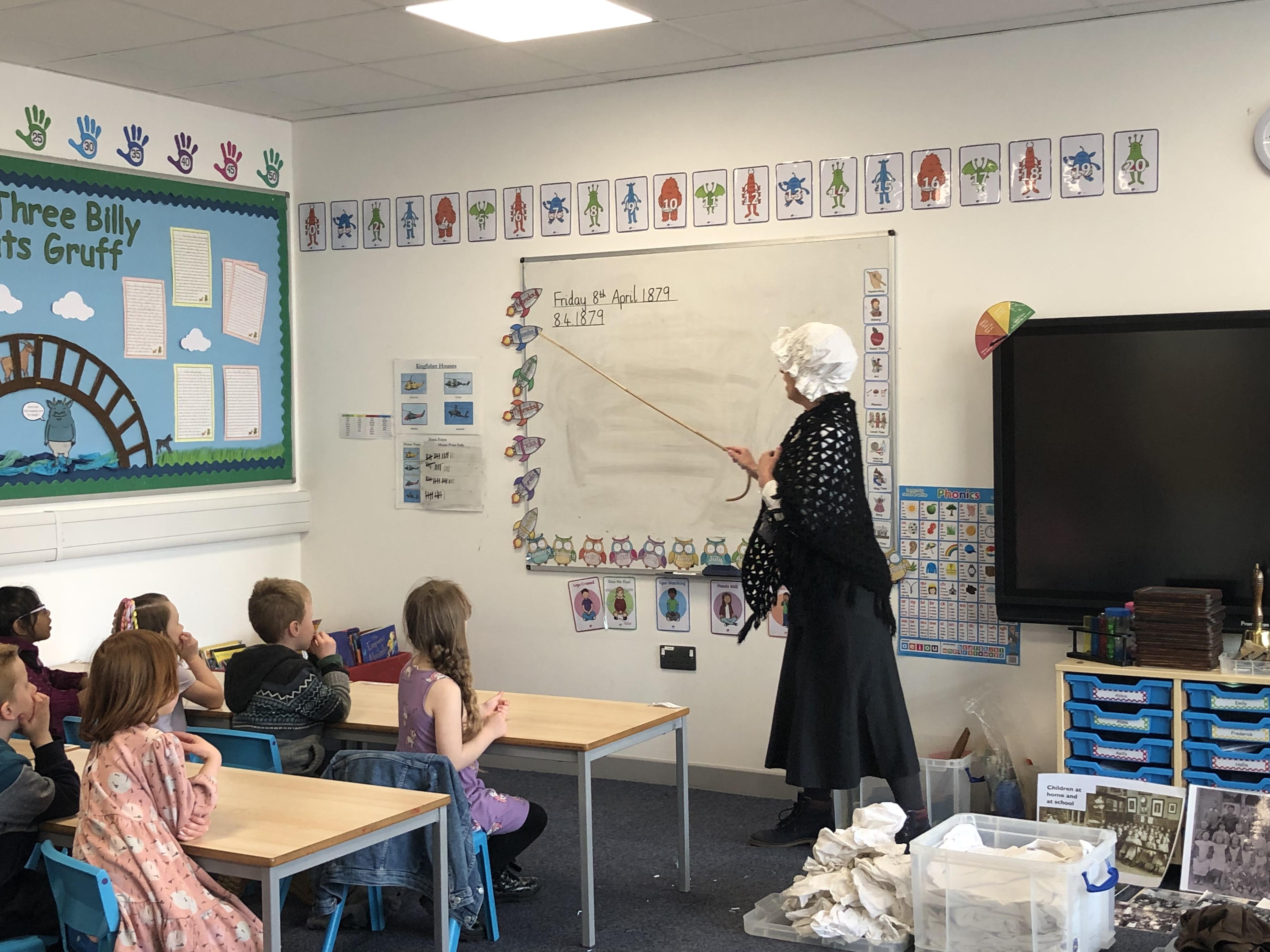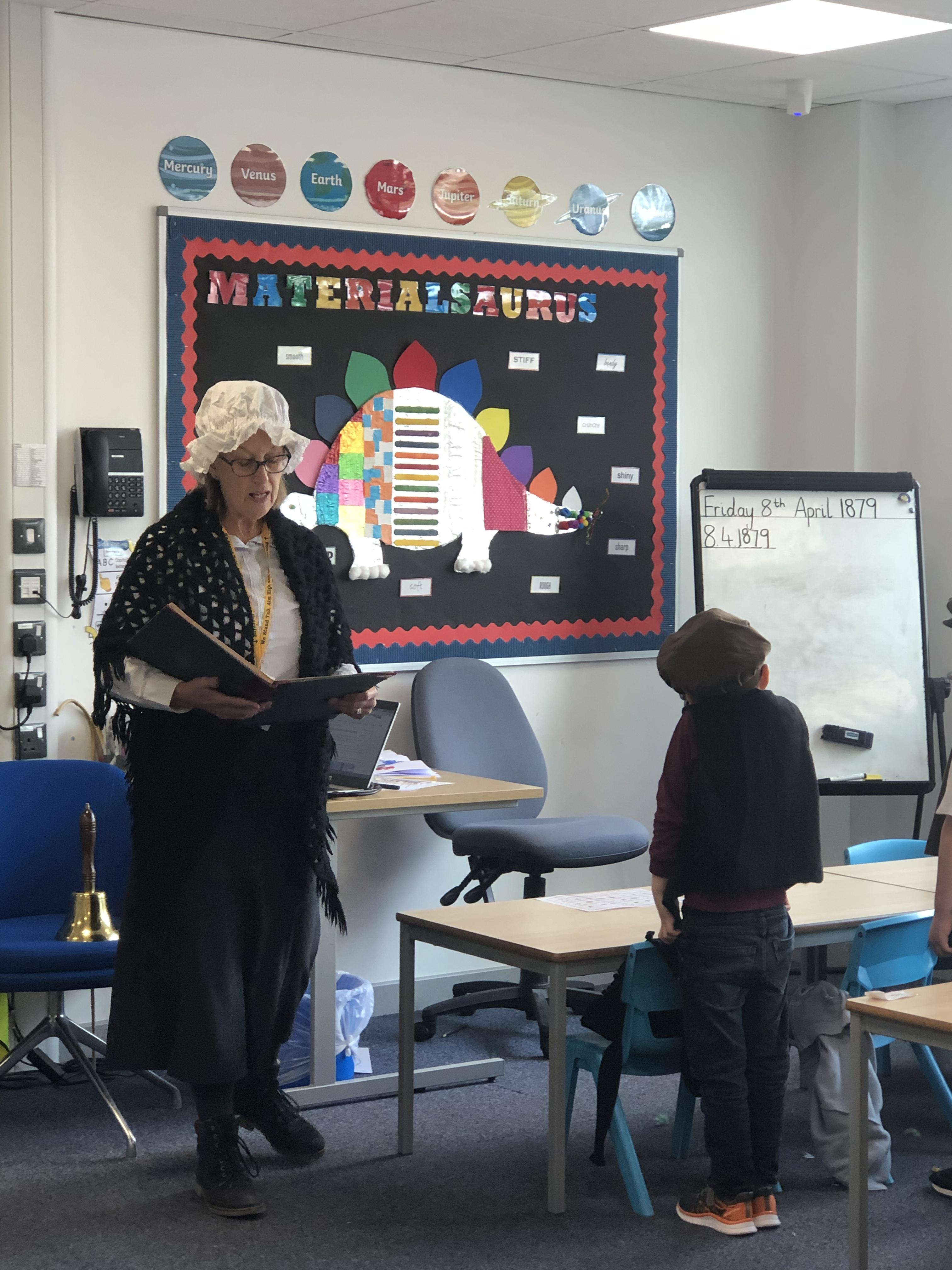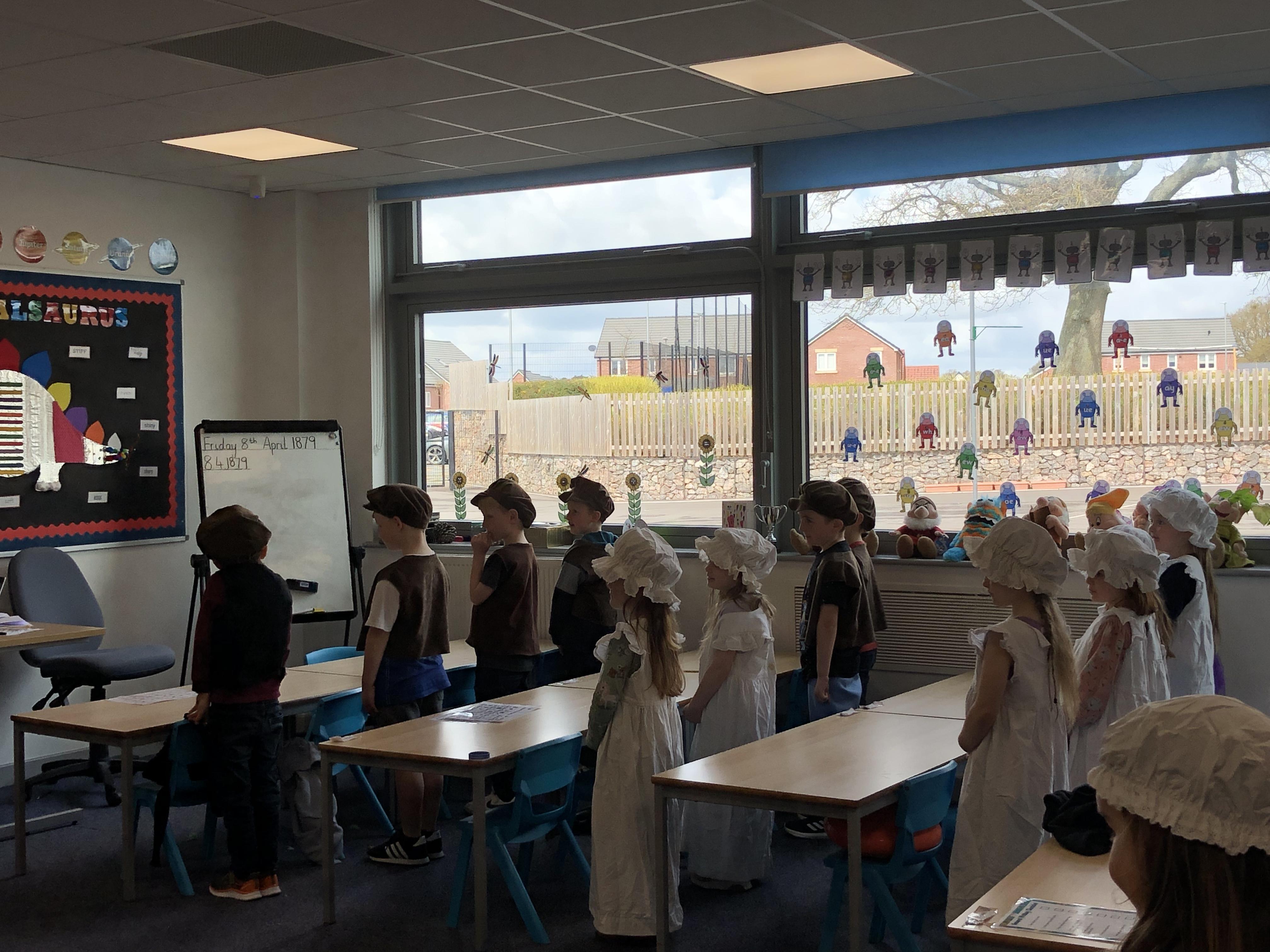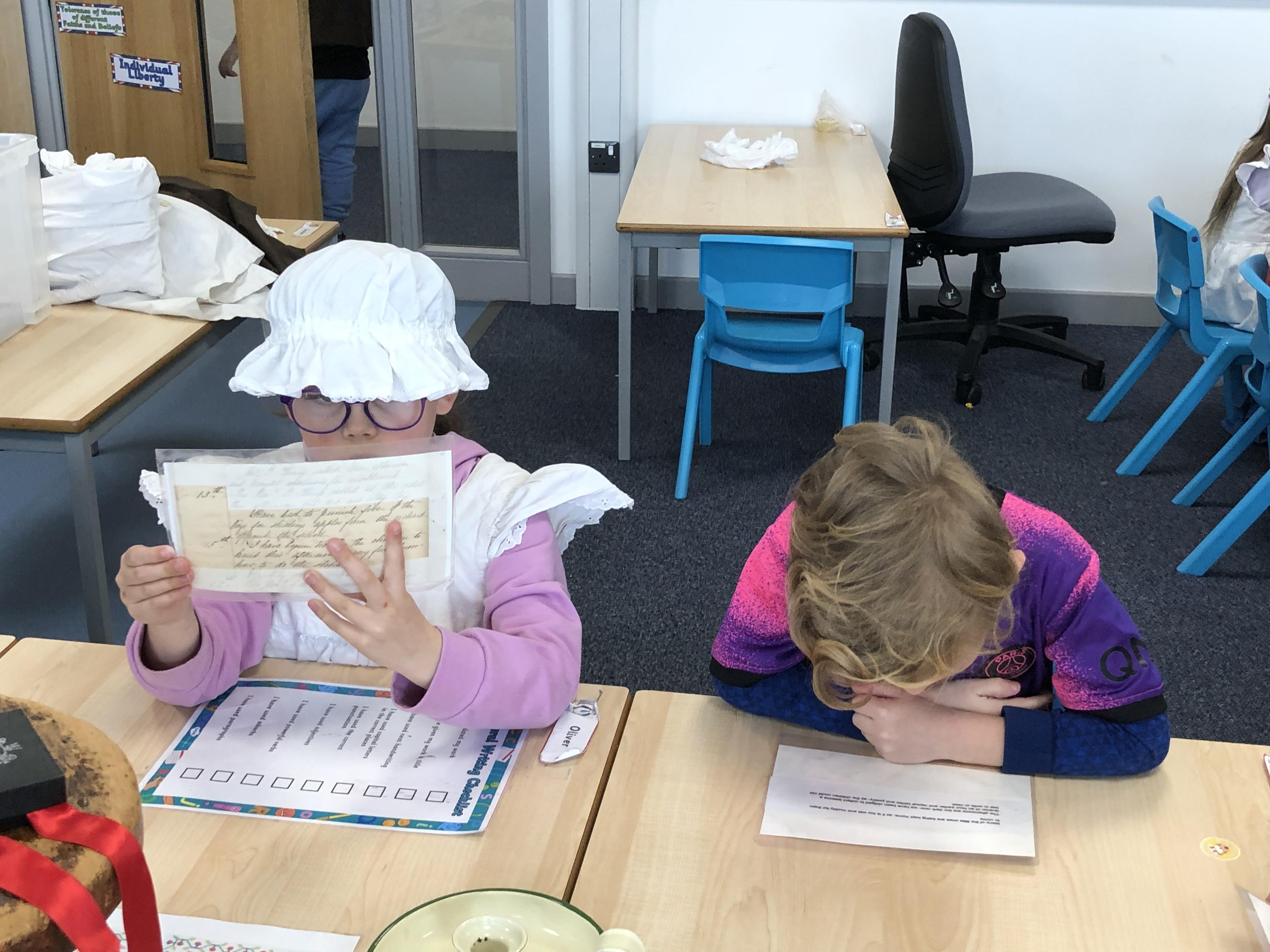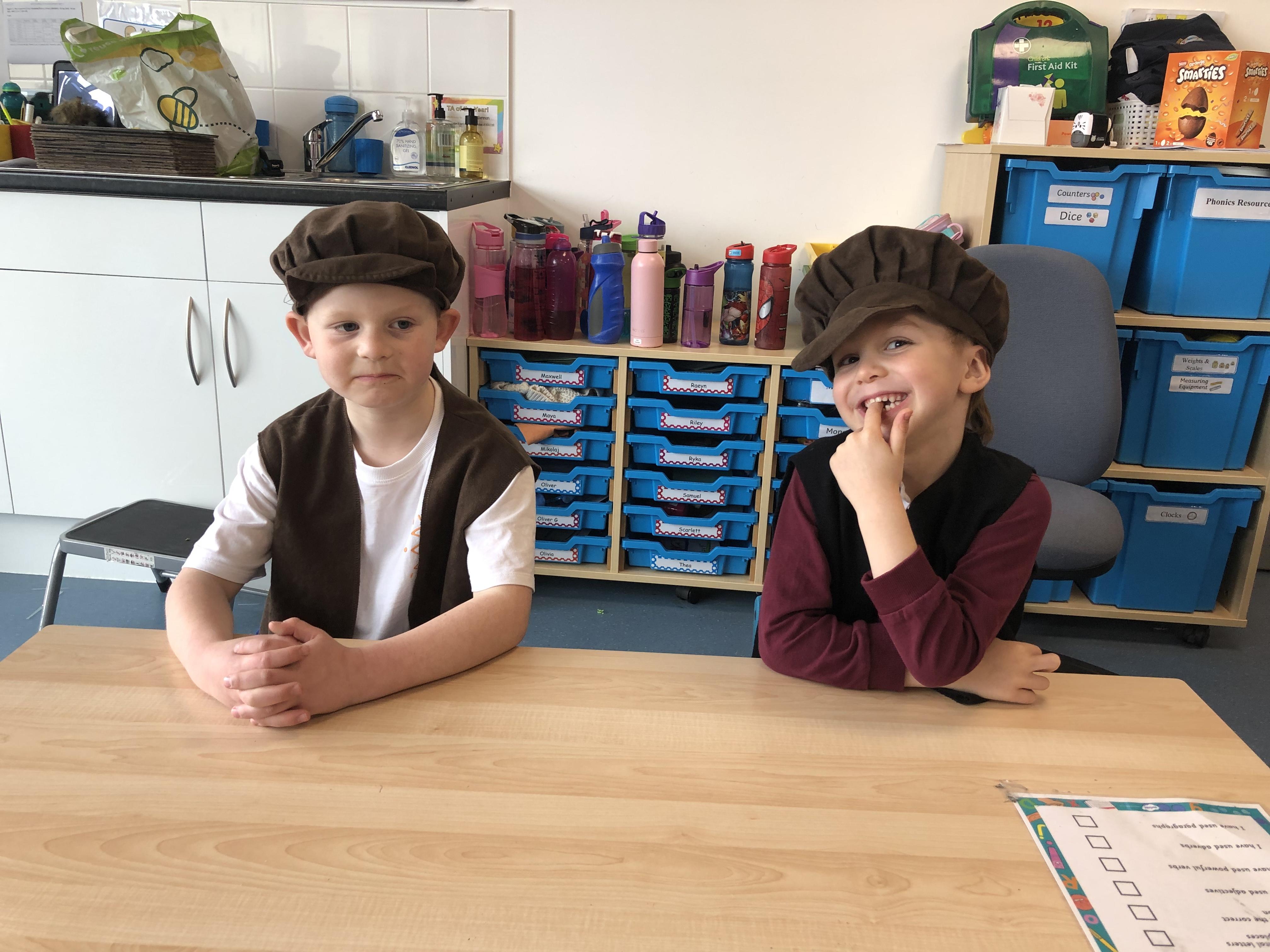 This afternoon, the children were very lucky to have a visit from Sharon from the South West Heritage Trust. She gave the children a glimpse of what school was like for Victorian children. All the children were given the opportunity to dress up as a Victorian school child; a waistcoat and cap for the boys and a dress and bonnet for the girls. The boys and girls were split up in class, just like what happened in Victorian schools and they were able to try out writing on slates. Everyone also had a go at sewing and practising handwriting. Sharon very kindly showed the children a range of Victorian artefacts. It was a really fun afternoon with the children super engaged throughout. It goes without saying that they are all very happy that school life has advanced since the Victorian times.