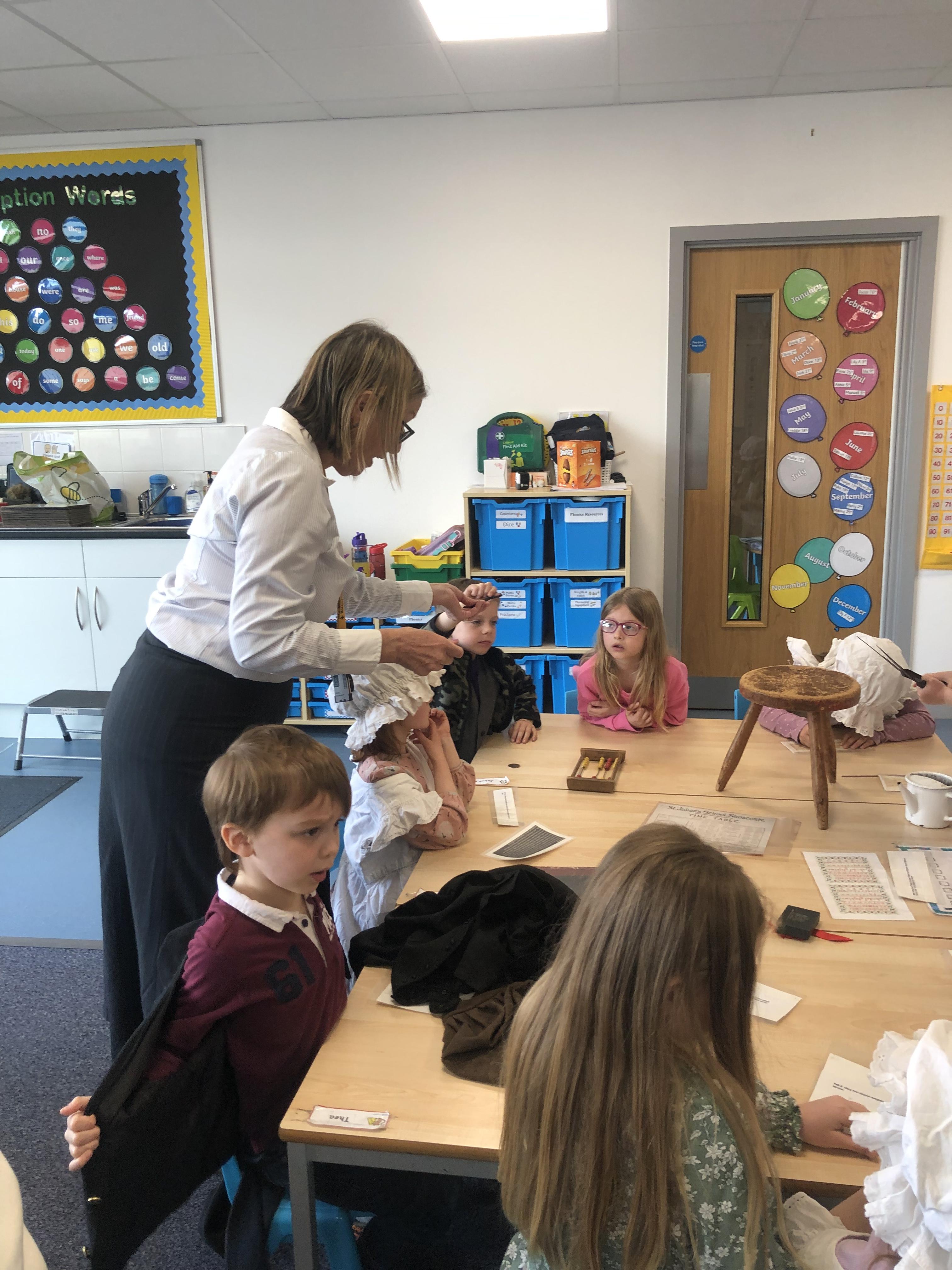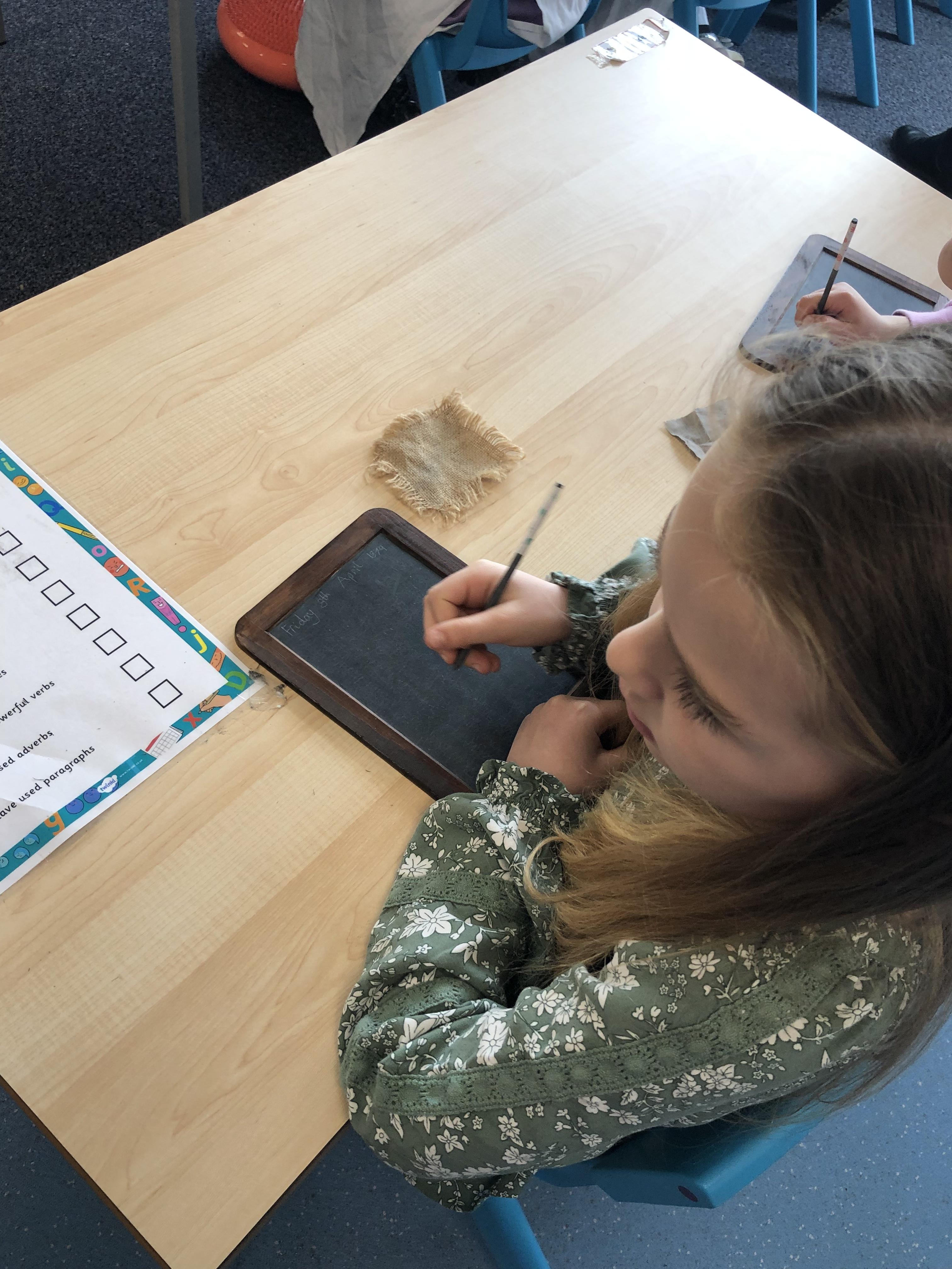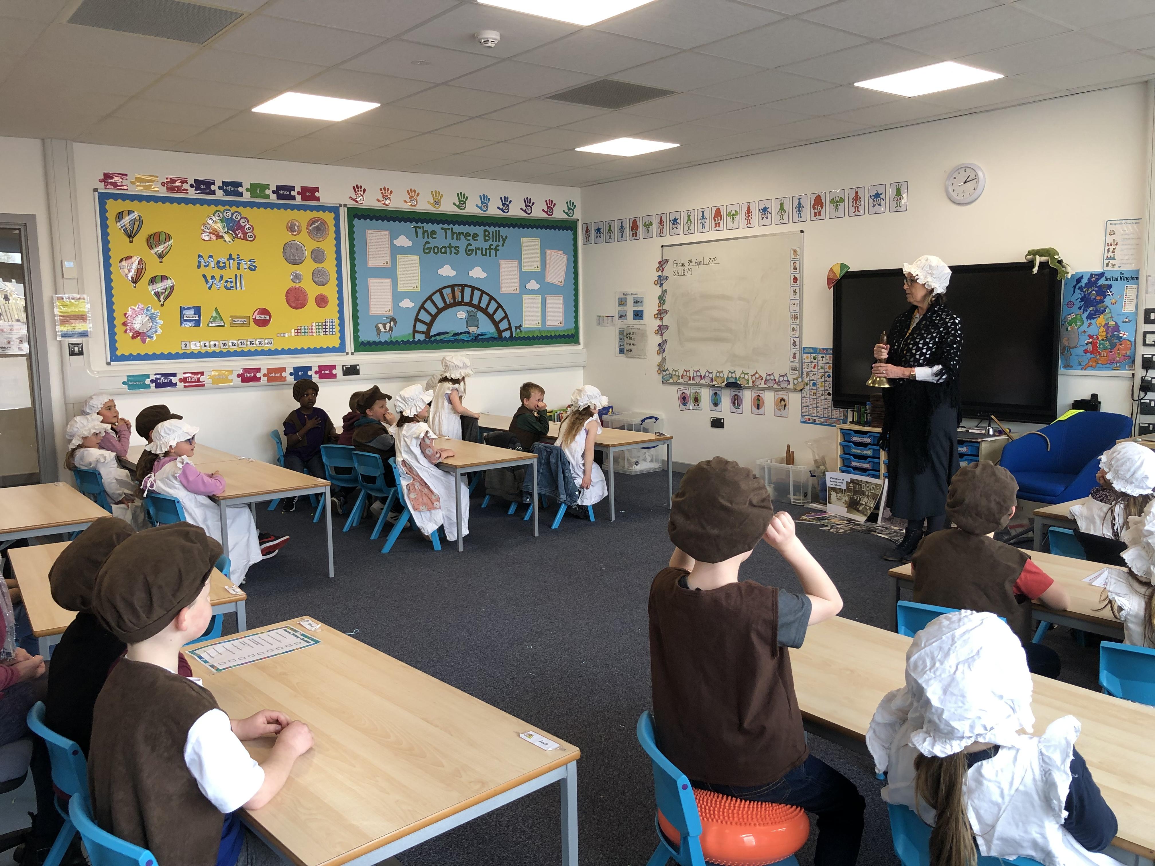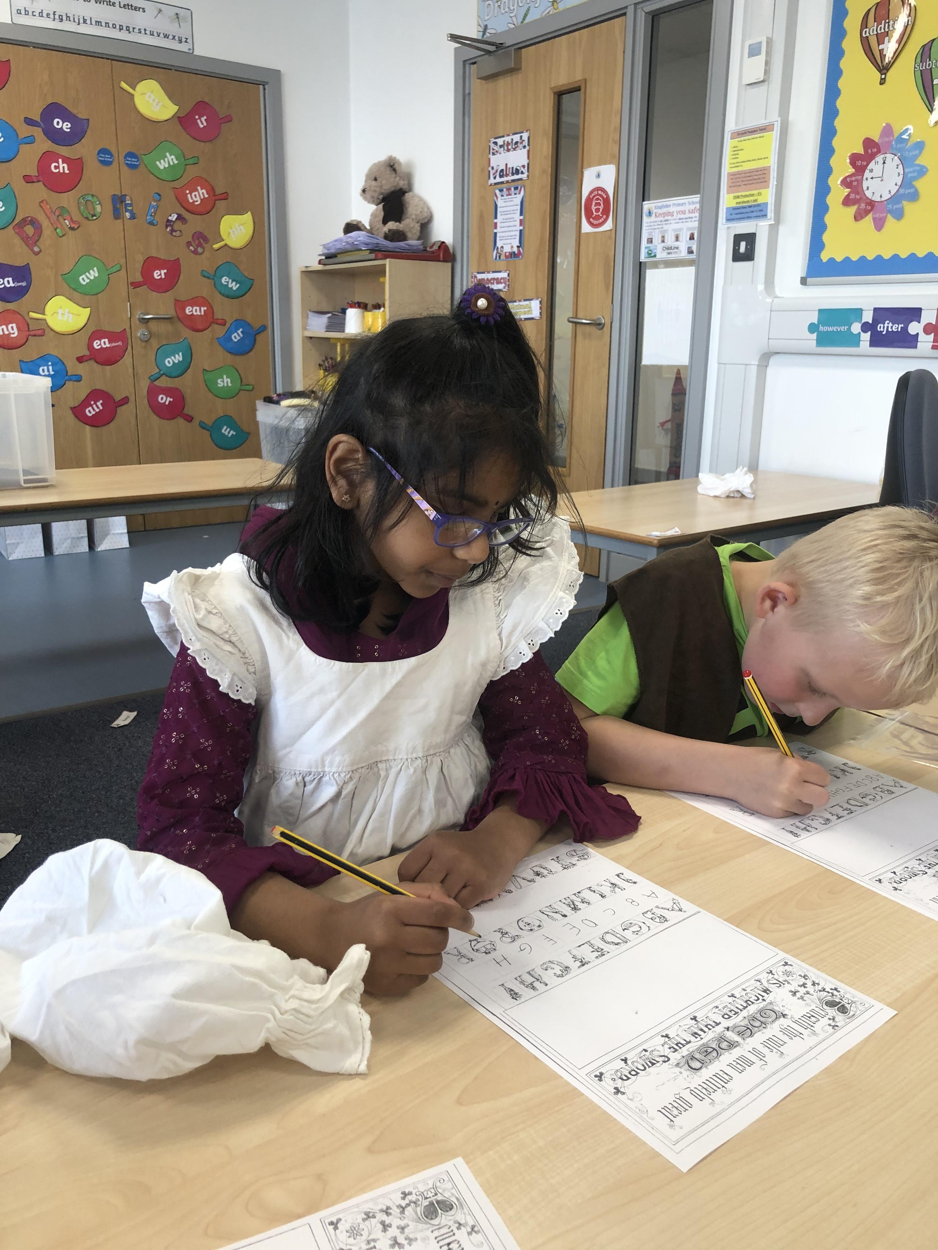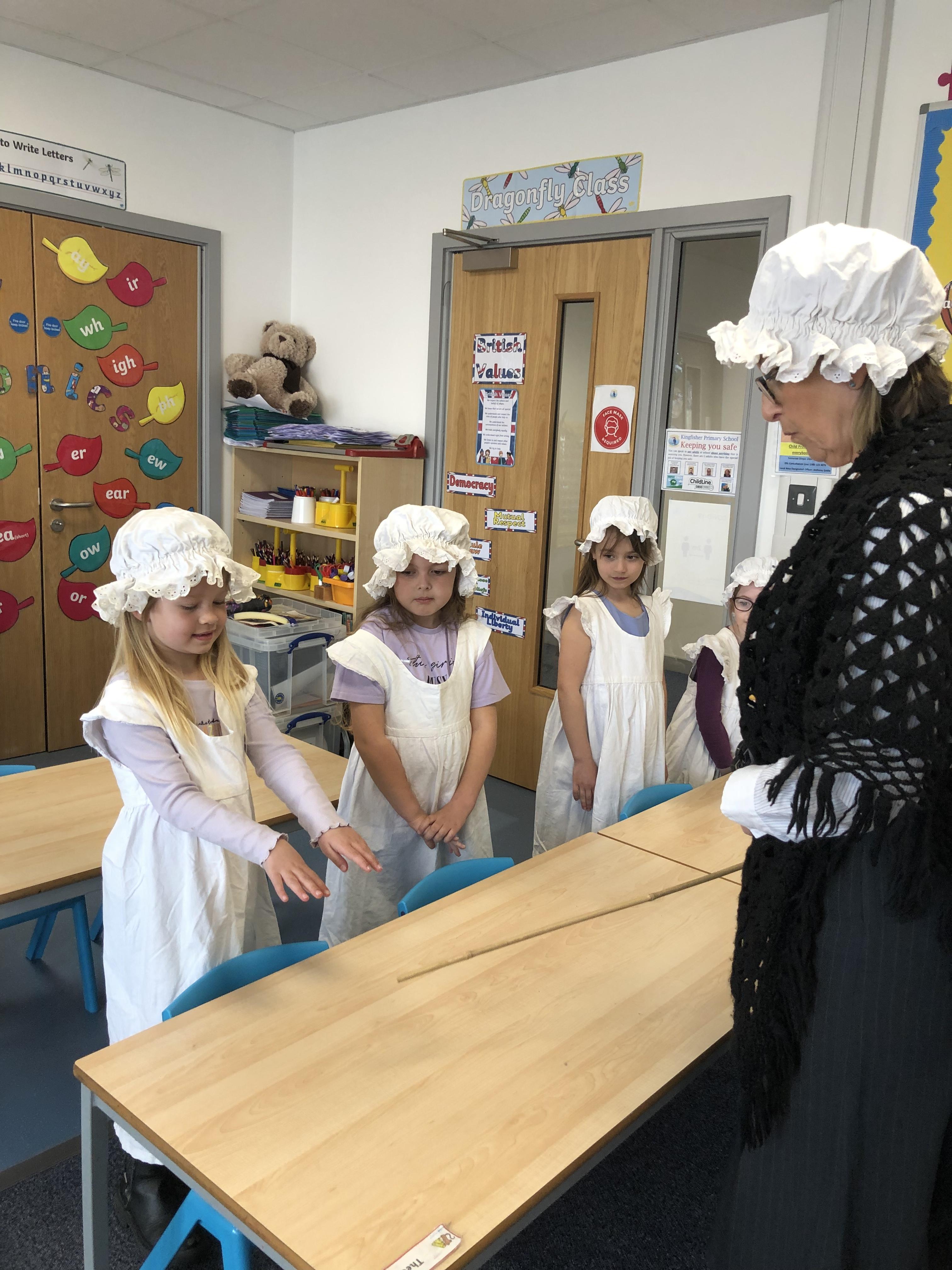 This afternoon, the children were very lucky to have a visit from Sharon from the South West Heritage Trust. She gave the children a glimpse of what school was like for Victorian children. All the children were given the opportunity to dress up as a Victorian school child; a waistcoat and cap for the boys and a dress and bonnet for the girls. The boys and girls were split up in class, just like what happened in Victorian schools and they were able to try out writing on slates. Everyone also had a go at sewing and practising handwriting. Sharon very kindly showed the children a range of Victorian artefacts. It was a really fun afternoon with the children super engaged throughout. It goes without saying that they are all very happy that school life has advanced since the Victorian times.