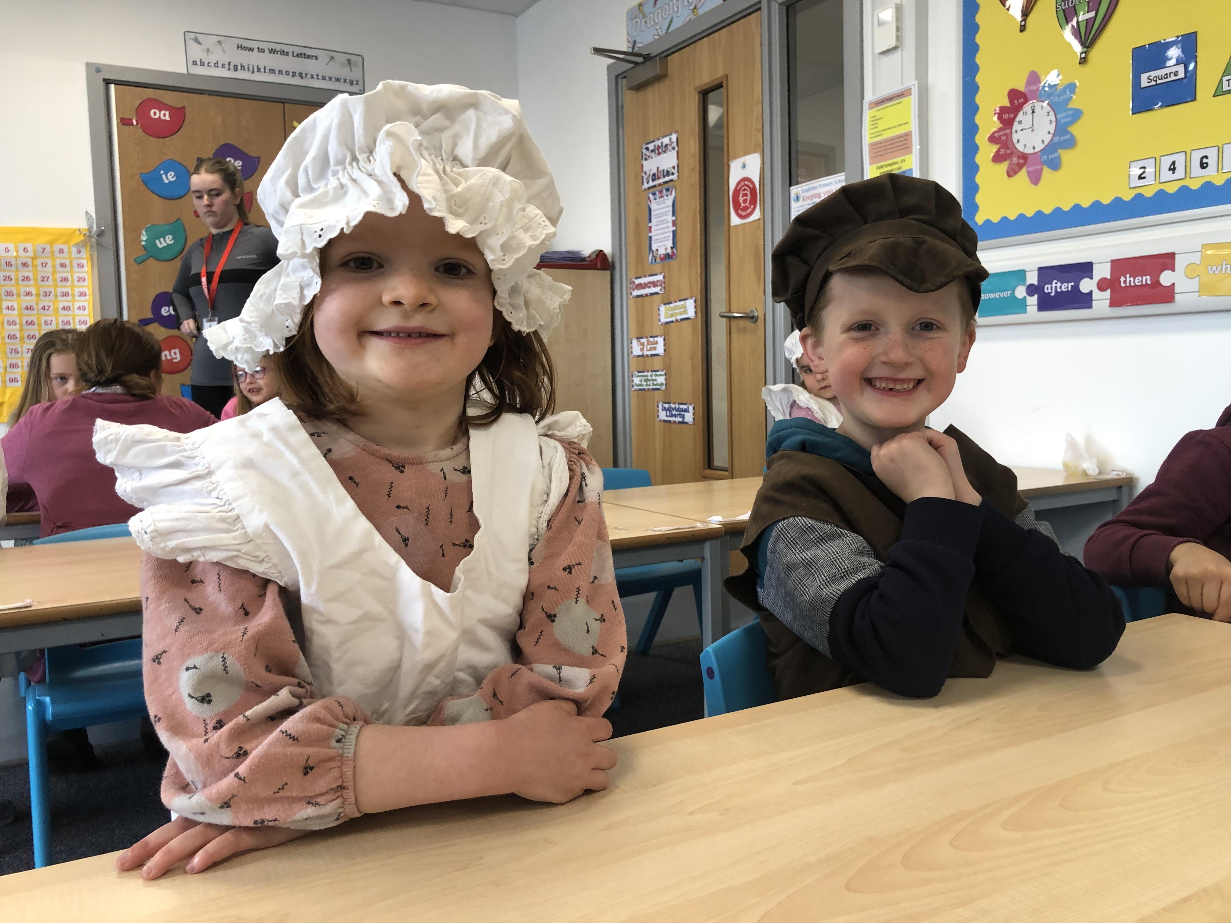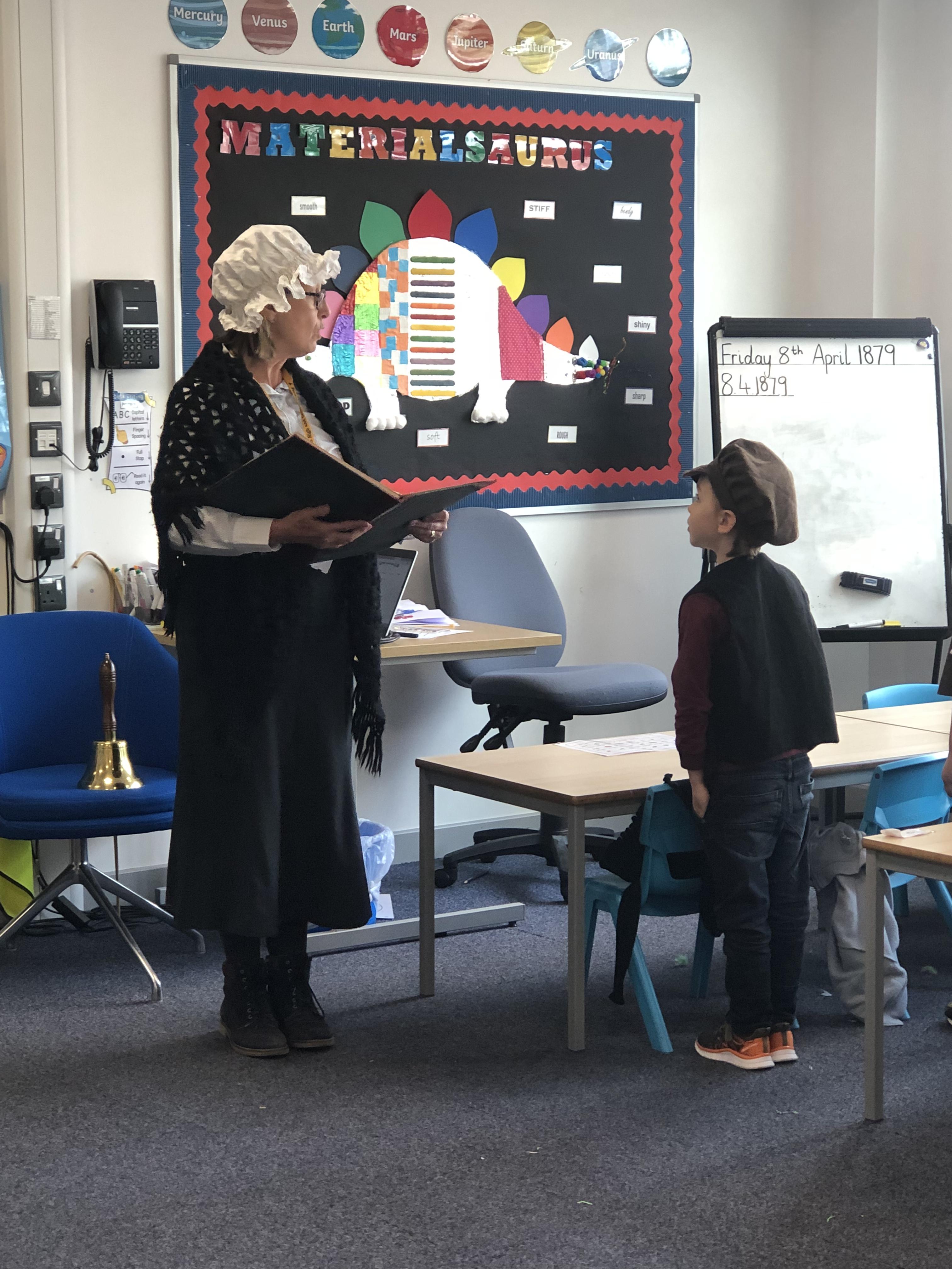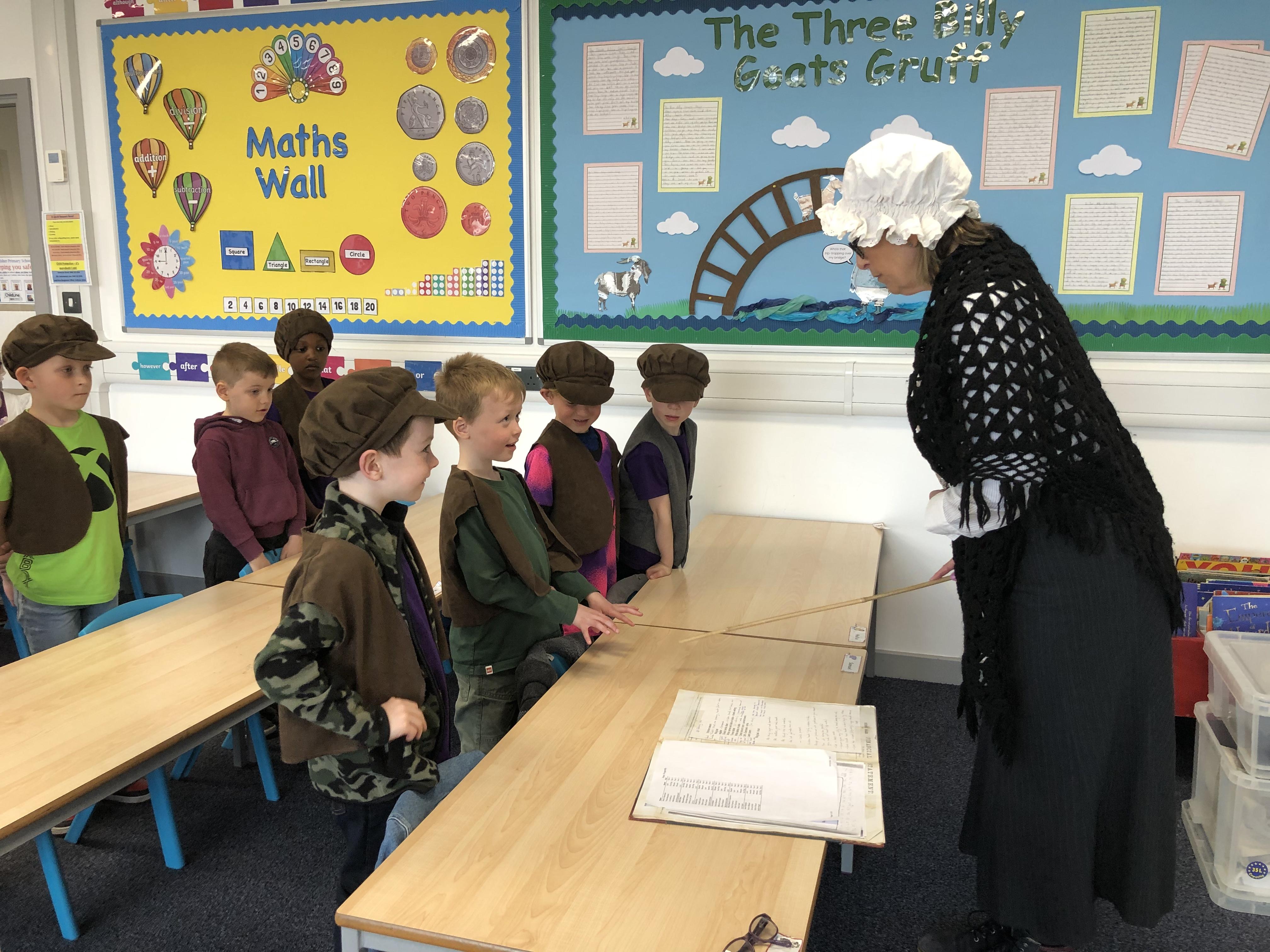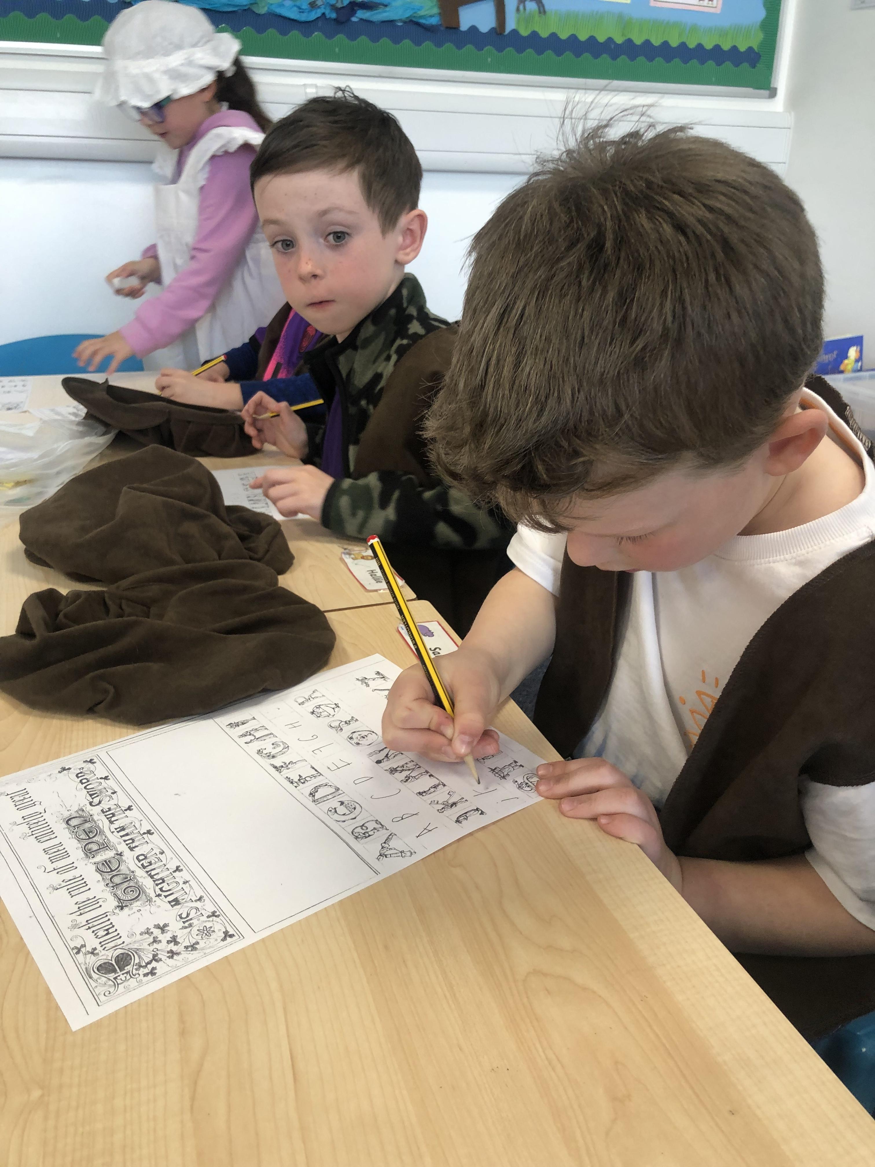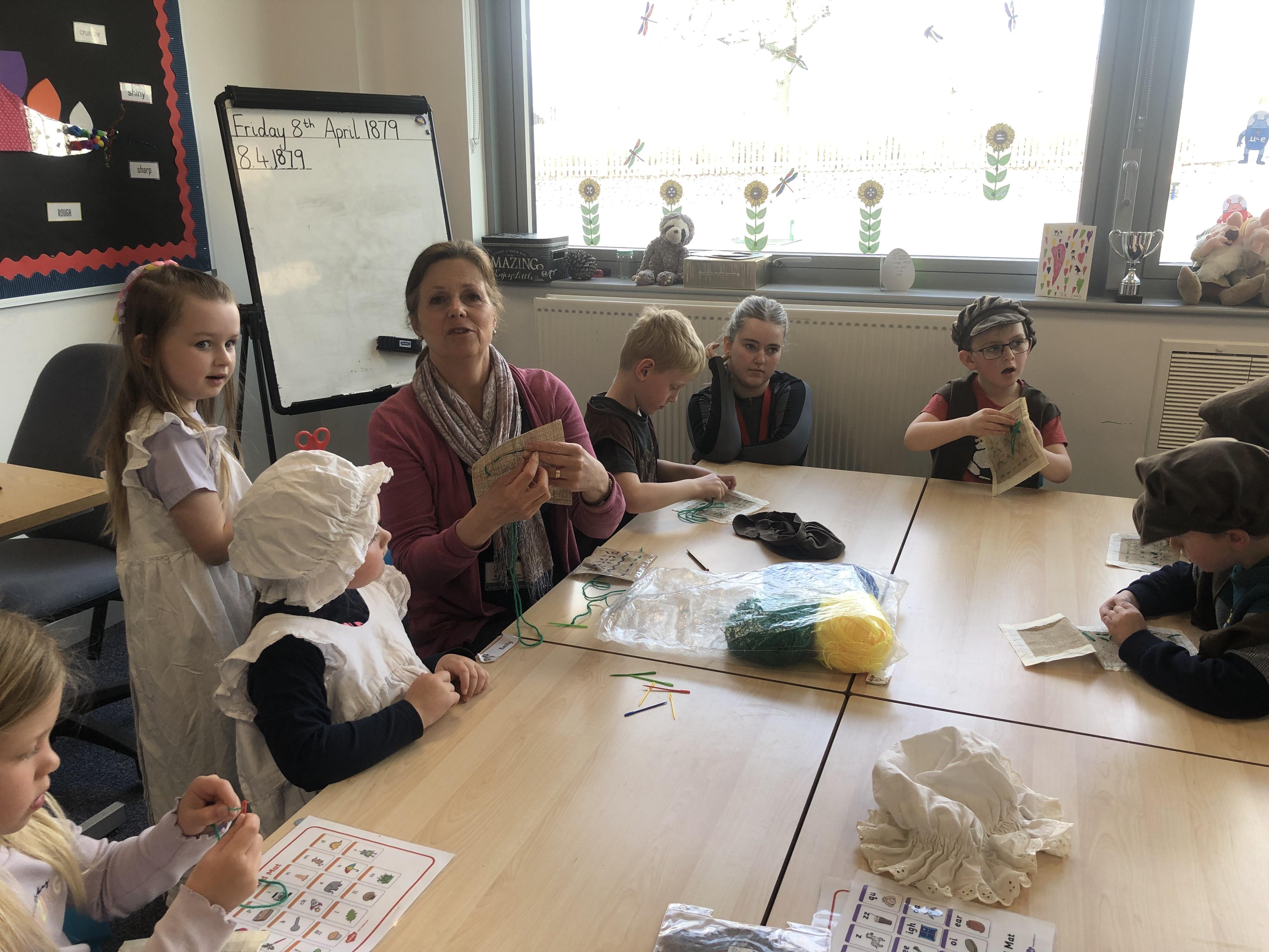 This afternoon, the children were very lucky to have a visit from Sharon from the South West Heritage Trust. She gave the children a glimpse of what school was like for Victorian children. All the children were given the opportunity to dress up as a Victorian school child; a waistcoat and cap for the boys and a dress and bonnet for the girls. The boys and girls were split up in class, just like what happened in Victorian schools and they were able to try out writing on slates. Everyone also had a go at sewing and practising handwriting. Sharon very kindly showed the children a range of Victorian artefacts. It was a really fun afternoon with the children super engaged throughout. It goes without saying that they are all very happy that school life has advanced since the Victorian times.