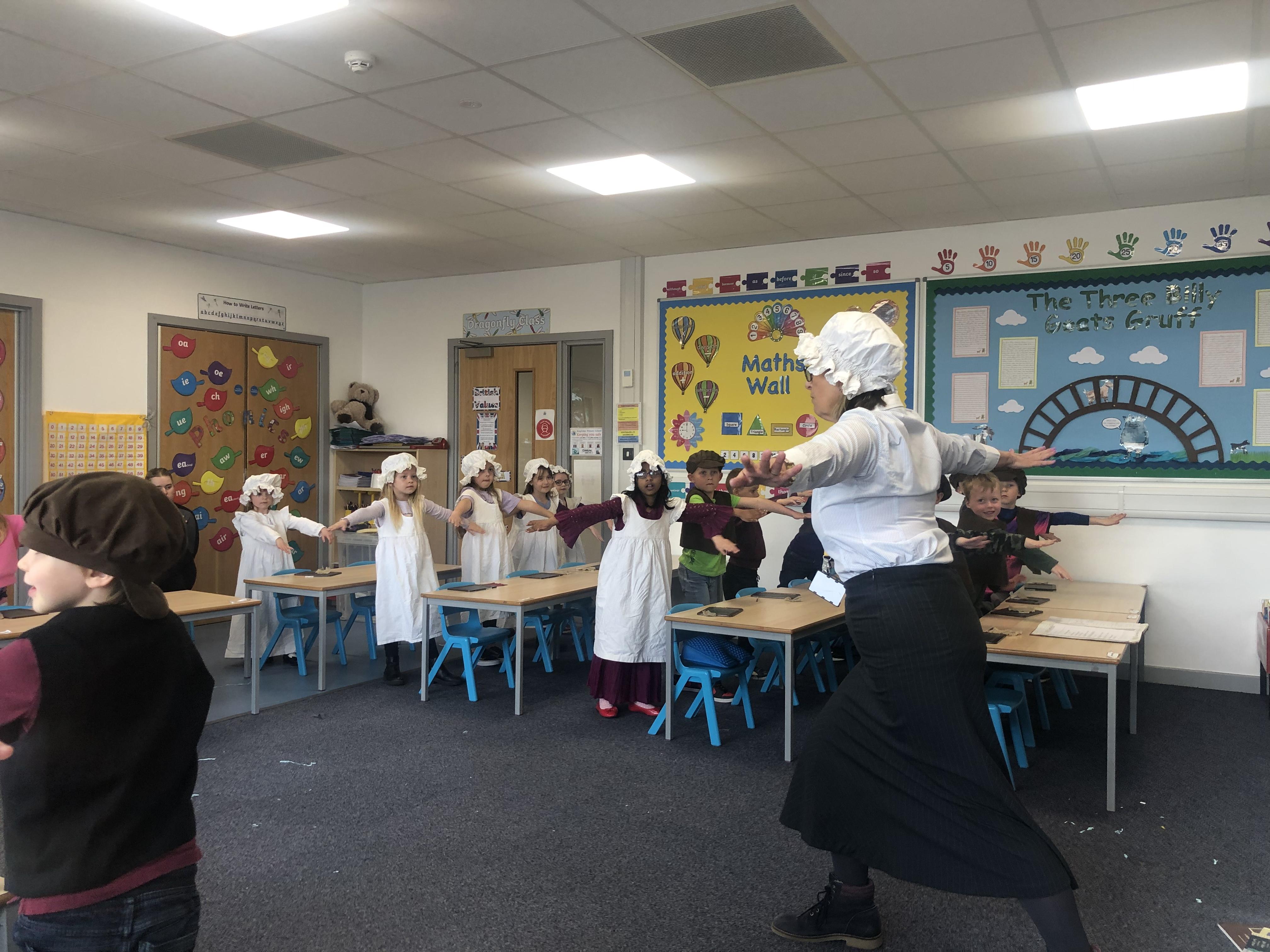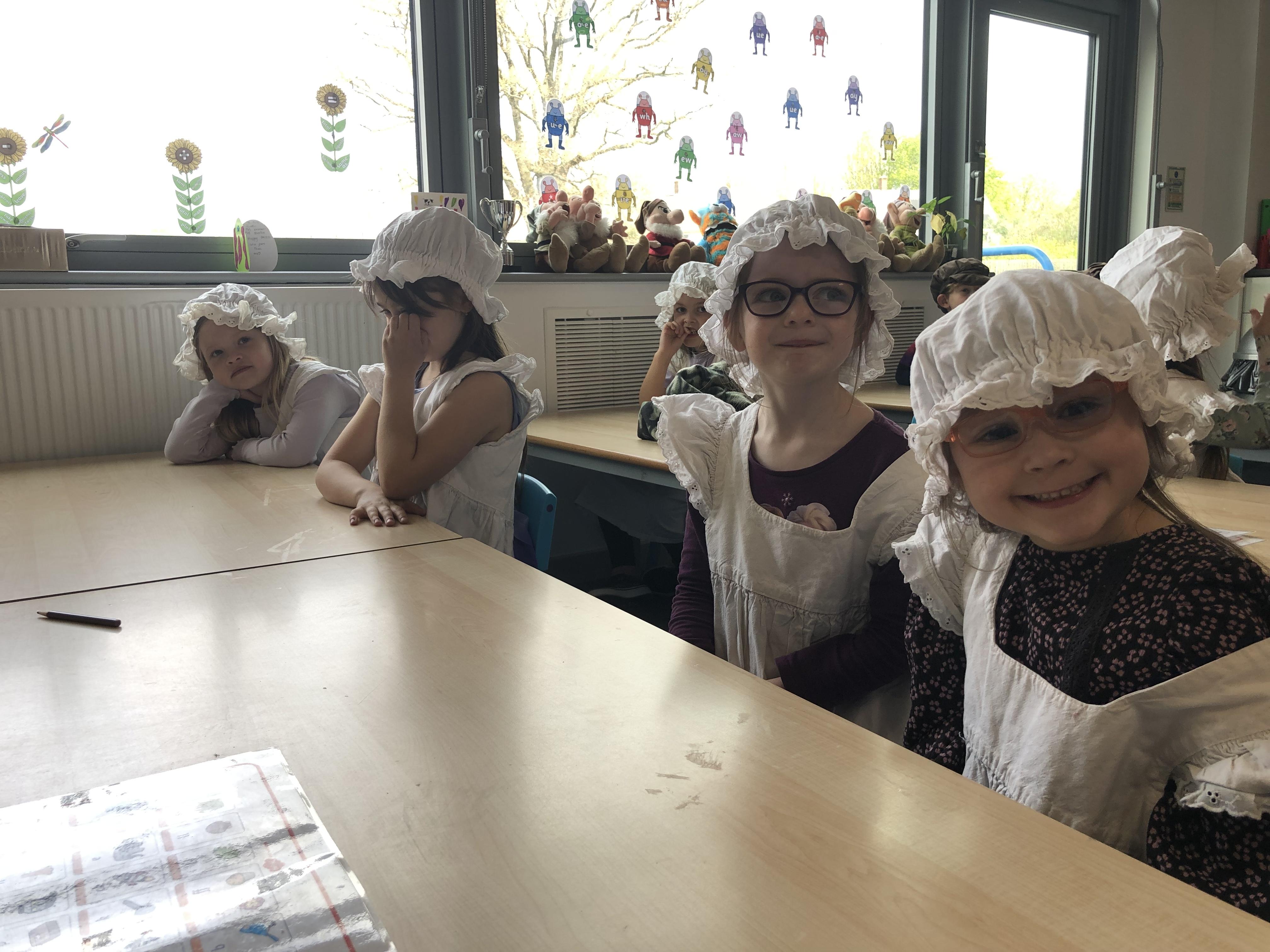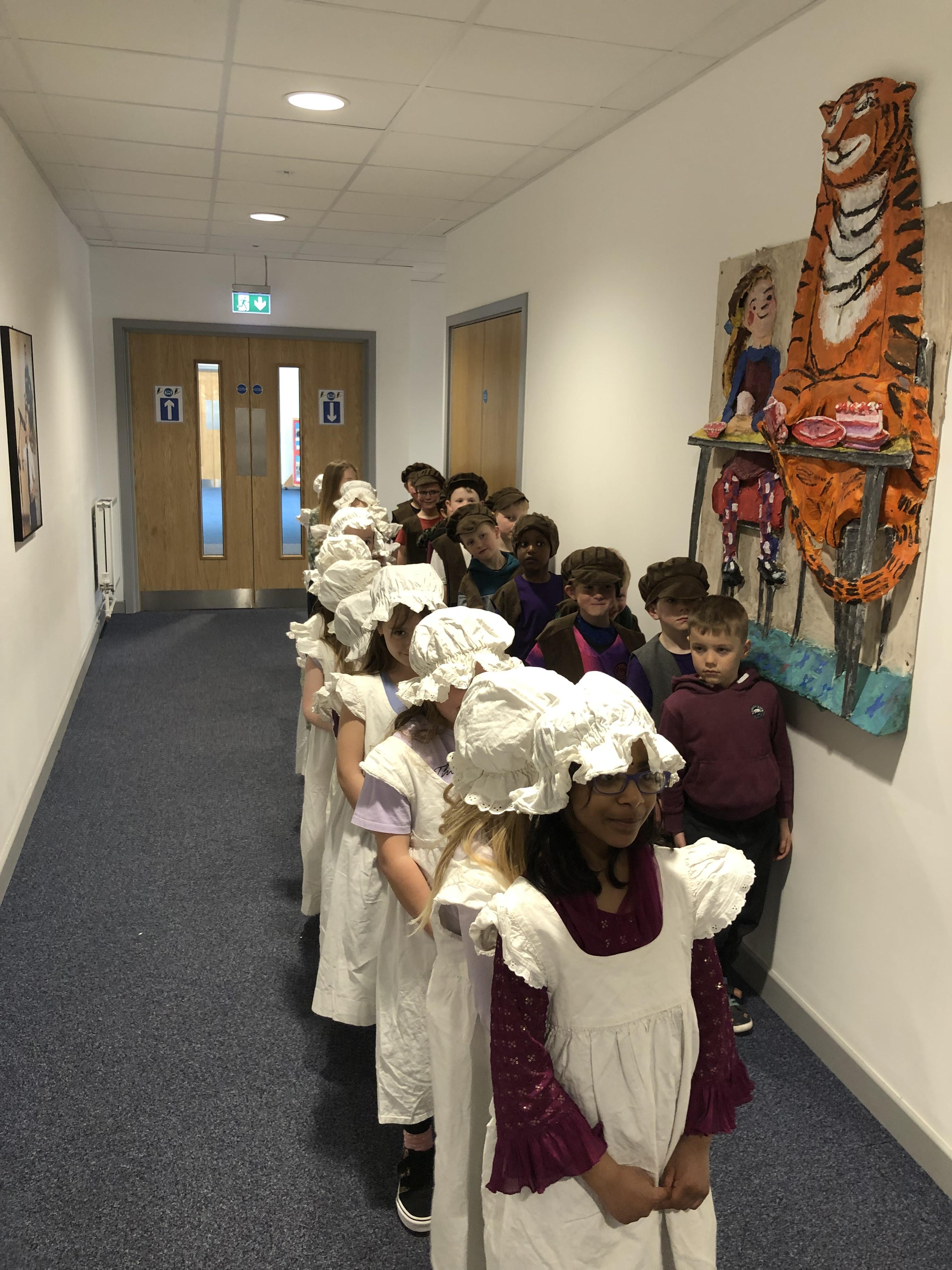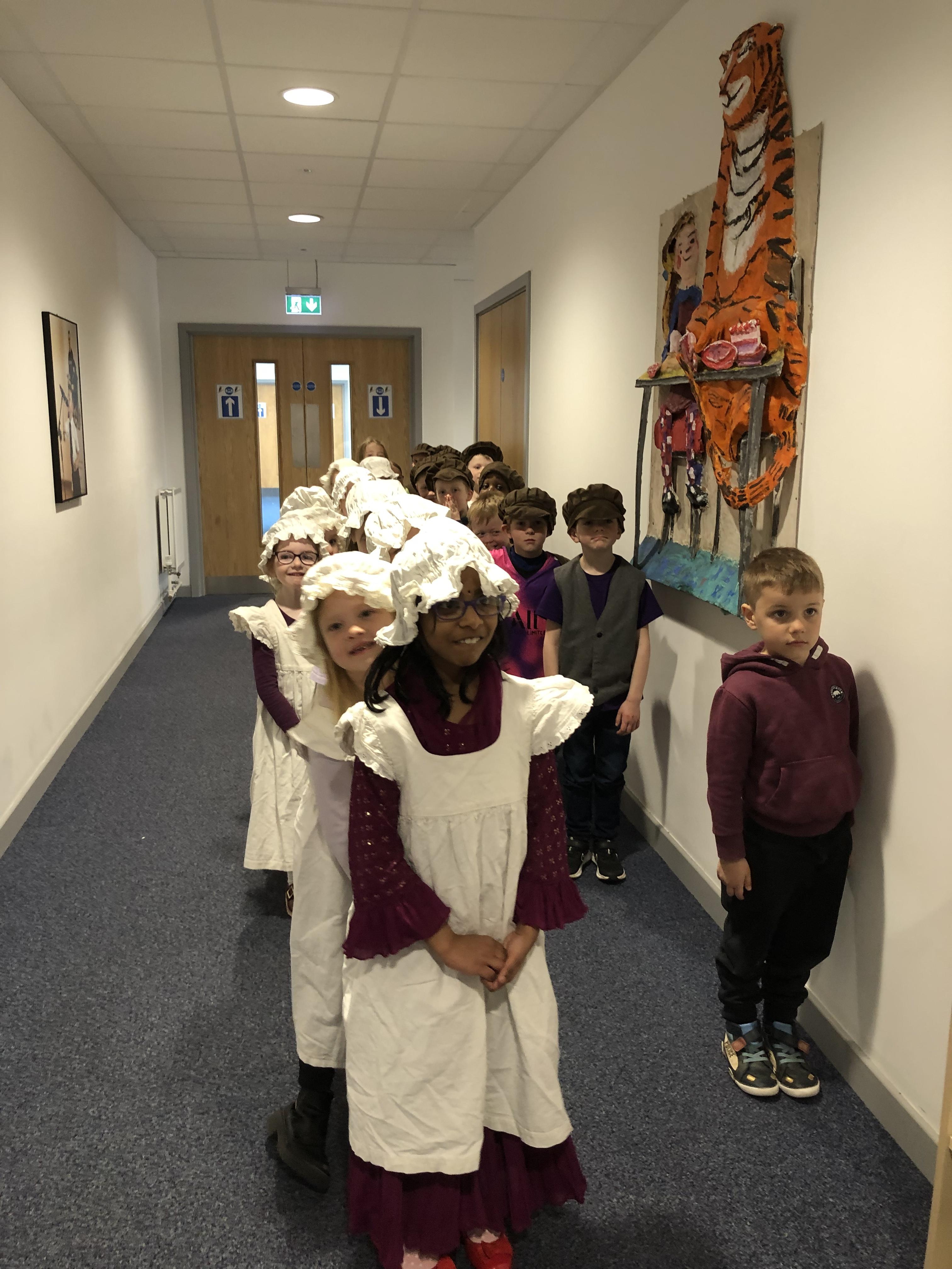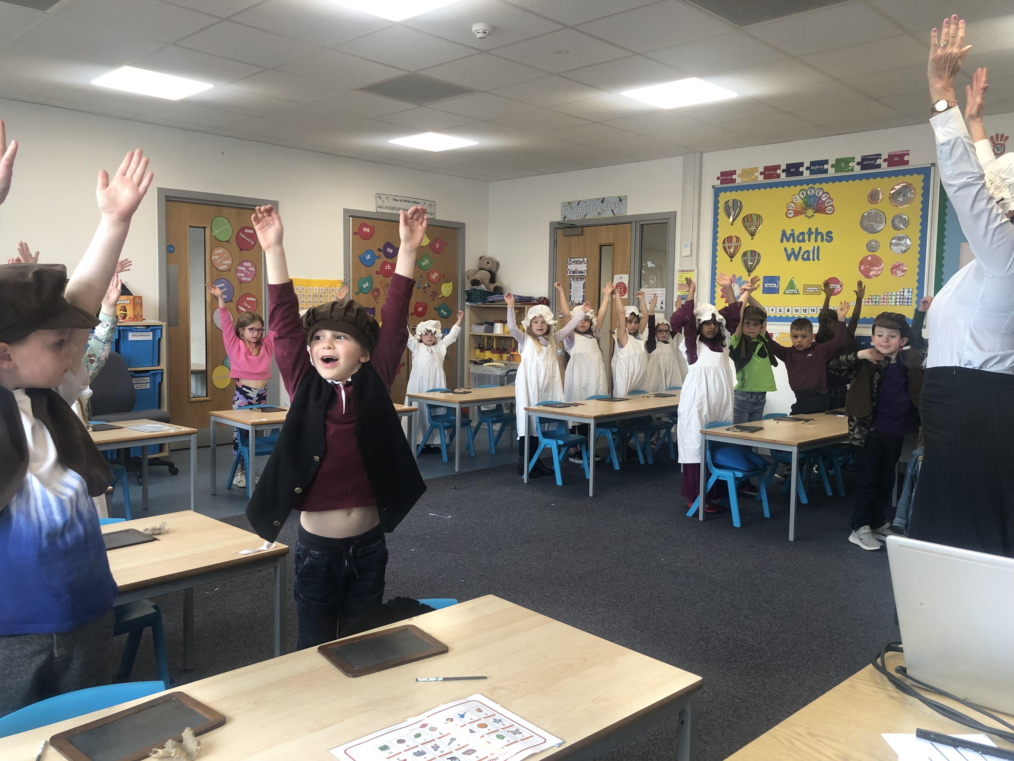 This afternoon, the children were very lucky to have a visit from Sharon from the South West Heritage Trust. She gave the children a glimpse of what school was like for Victorian children. All the children were given the opportunity to dress up as a Victorian school child; a waistcoat and cap for the boys and a dress and bonnet for the girls. The boys and girls were split up in class, just like what happened in Victorian schools and they were able to try out writing on slates. Everyone also had a go at sewing and practising handwriting. Sharon very kindly showed the children a range of Victorian artefacts. It was a really fun afternoon with the children super engaged throughout. It goes without saying that they are all very happy that school life has advanced since the Victorian times.