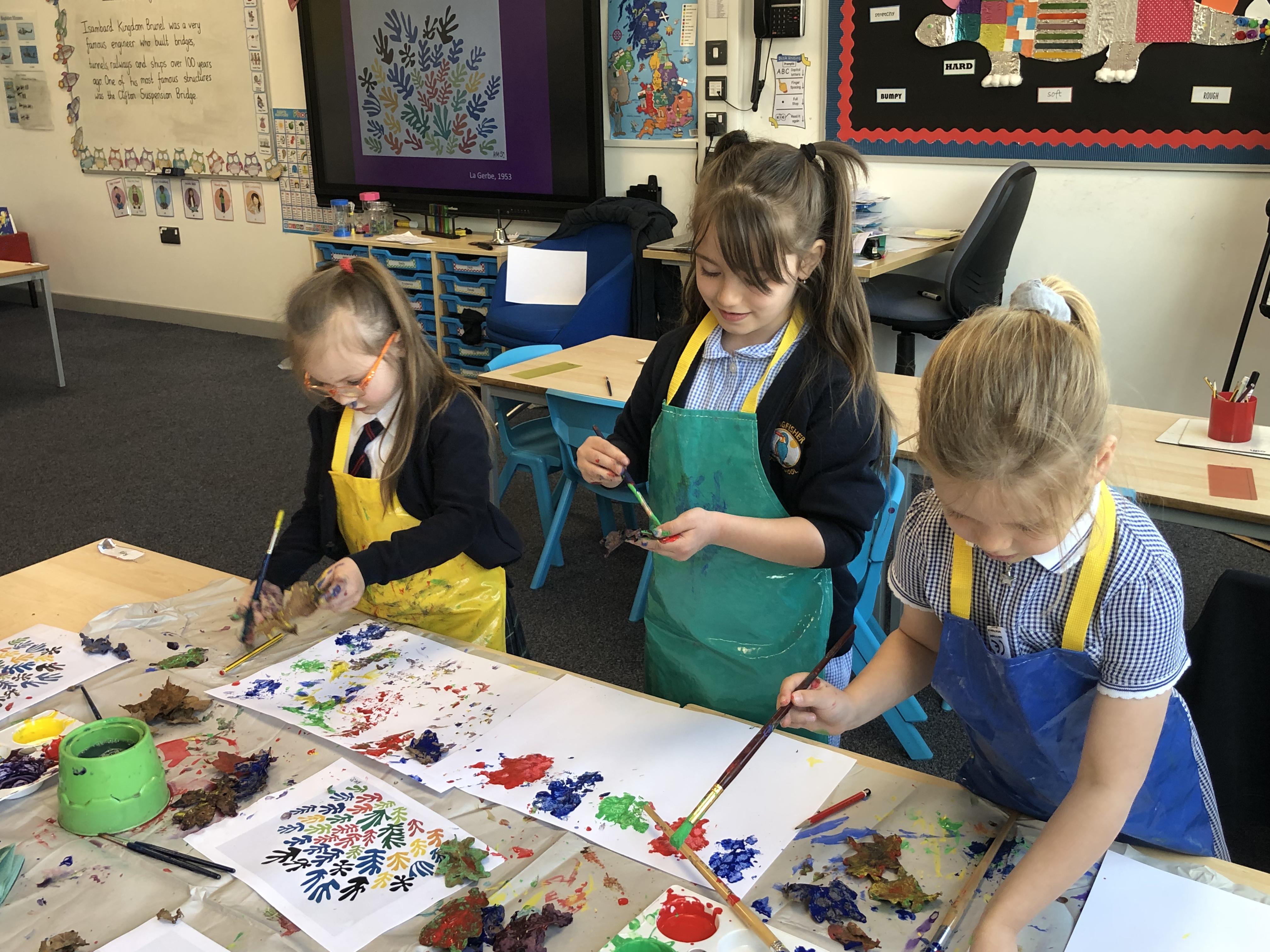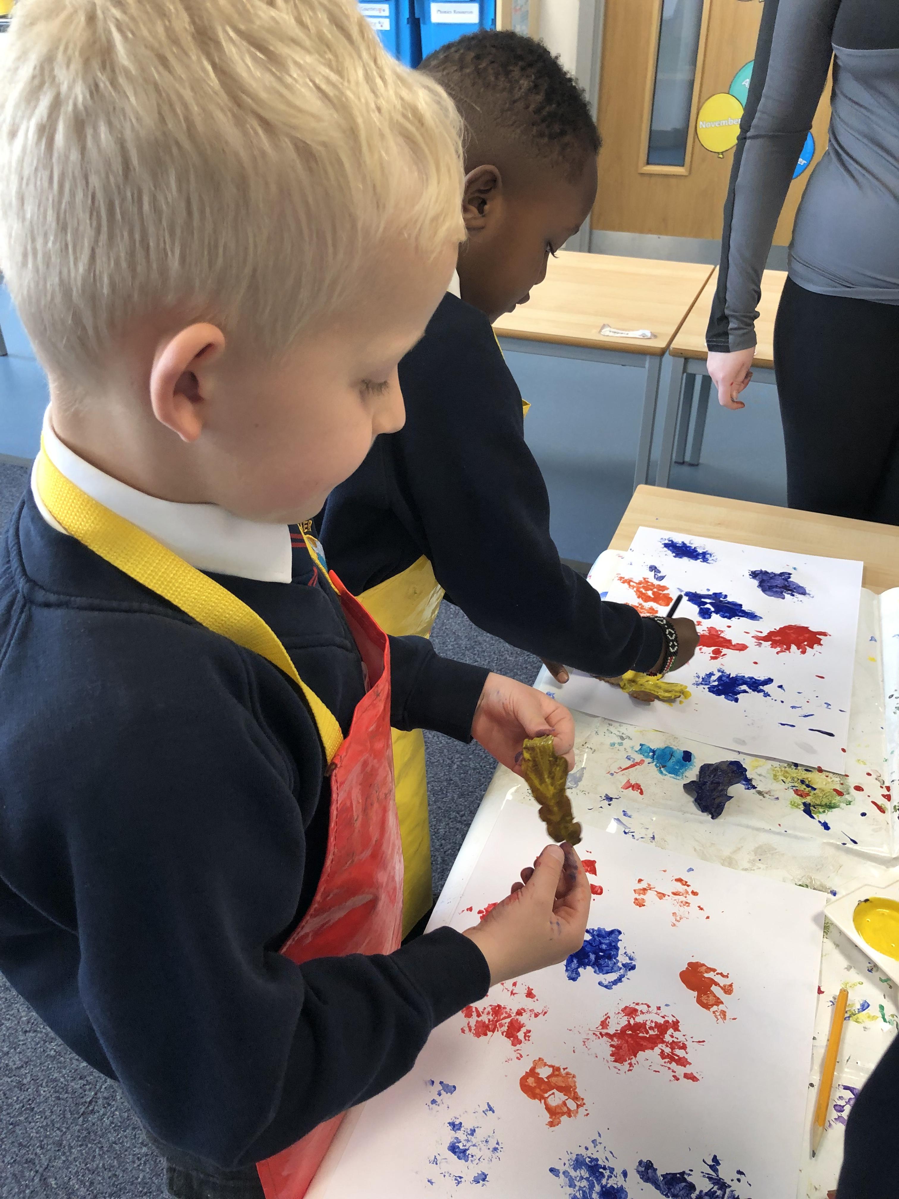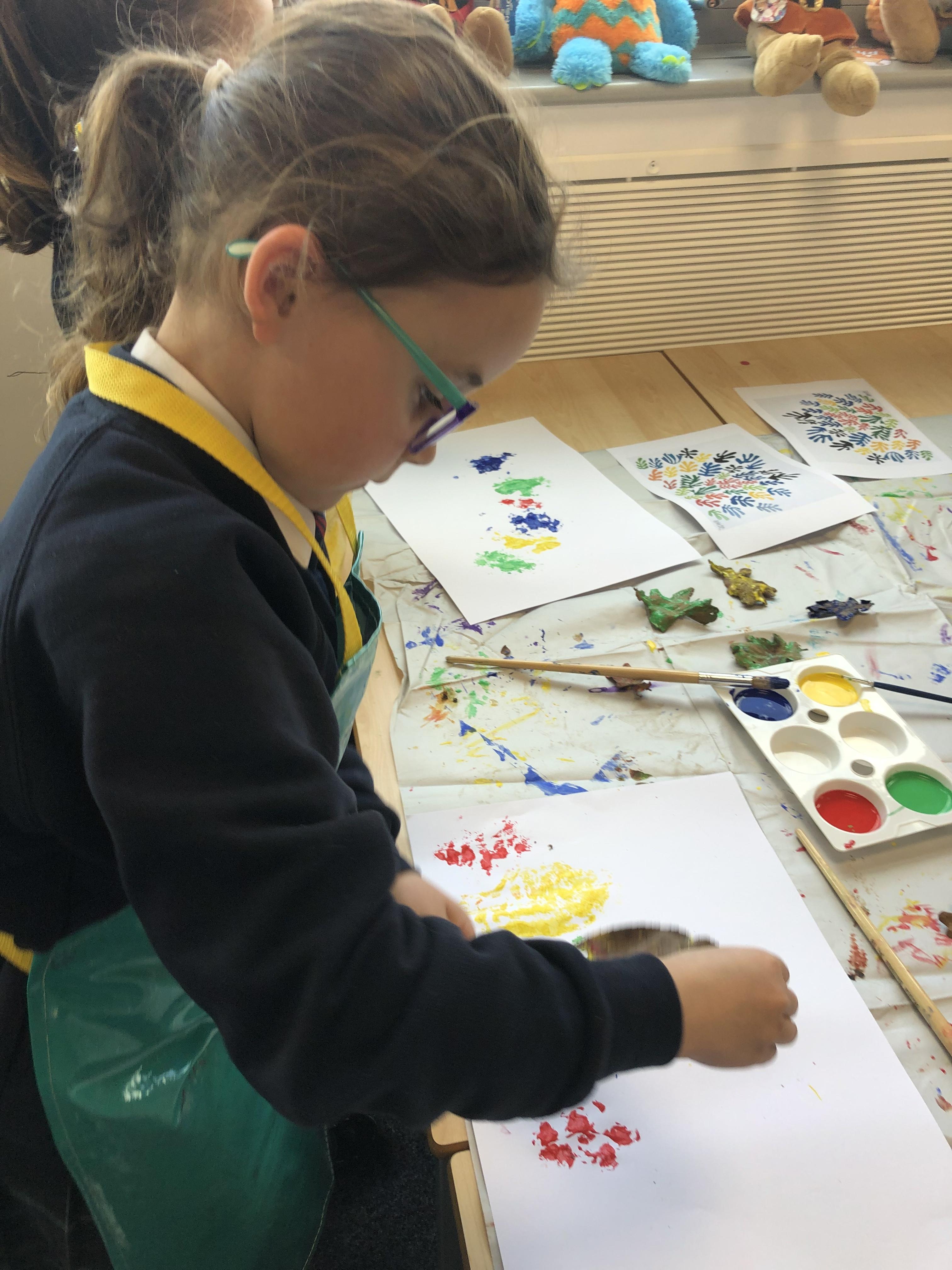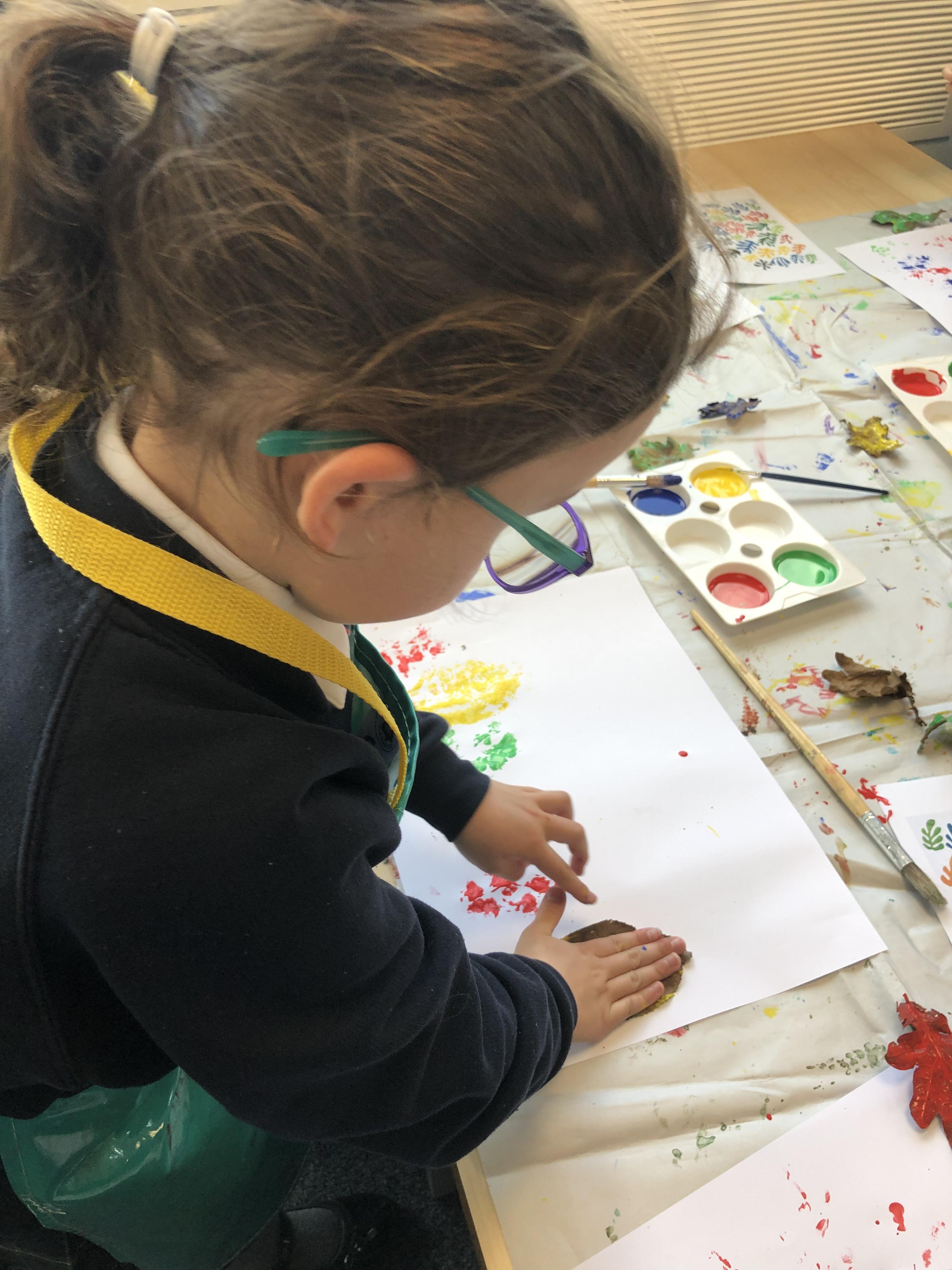 In Art this term we have been exploring printing and mark making. For our final piece, the children used Matisse’s ‘La Gerbe’ creation as inspiration to make their own picture. They applied their printing skills using leaves found on campus and various different colours of paint. It was great to see the children so focussed and enjoying being creative.