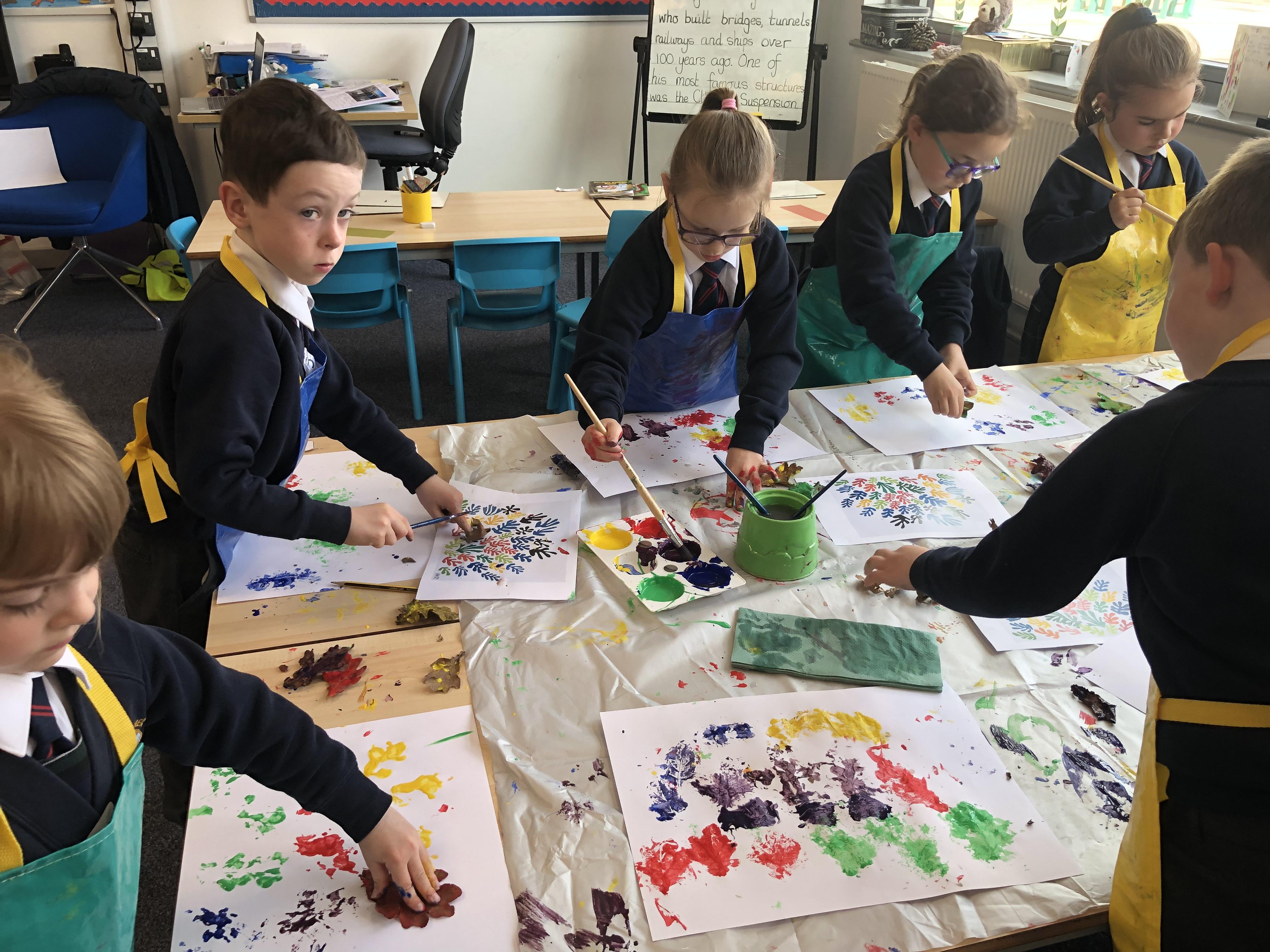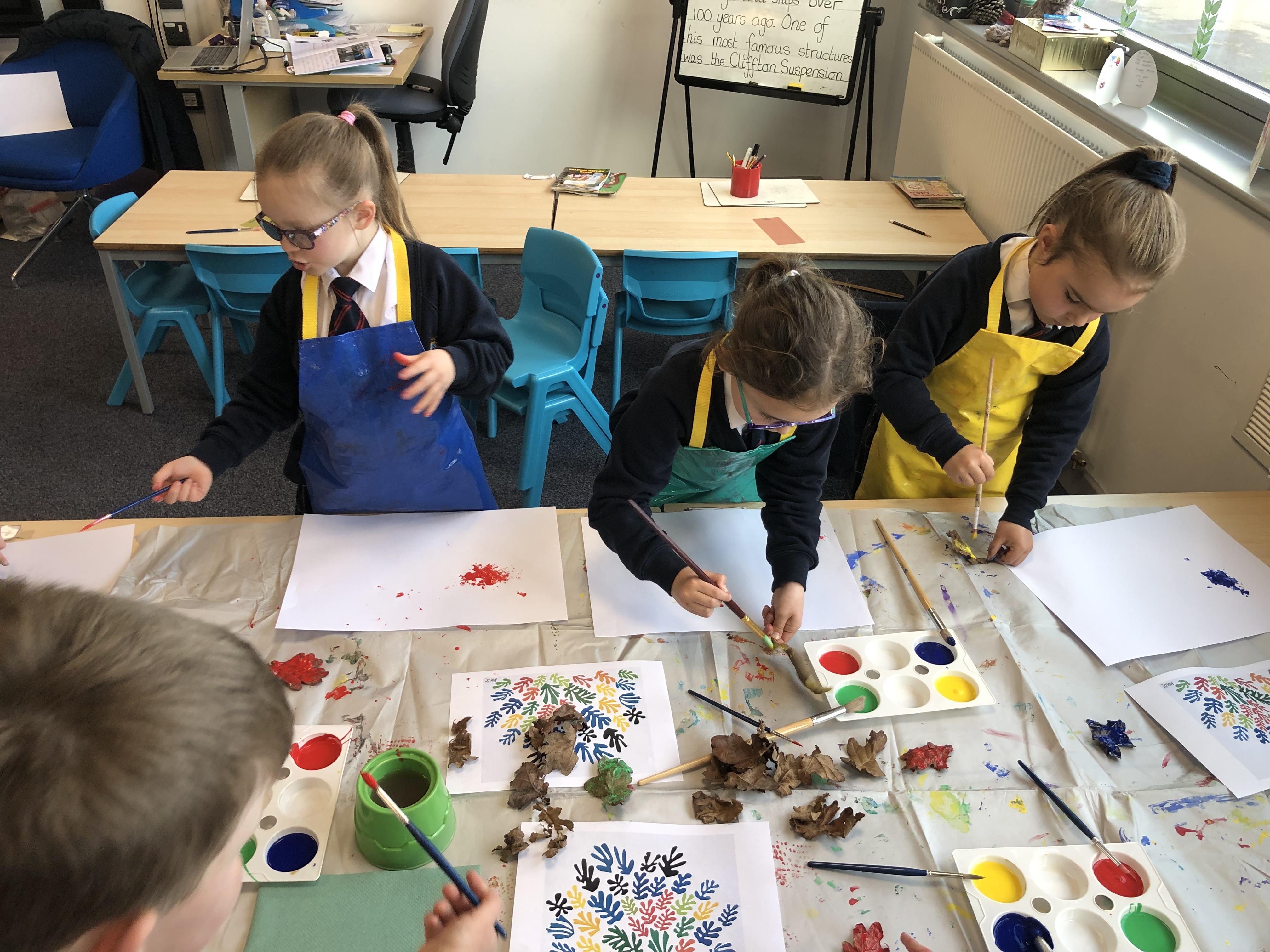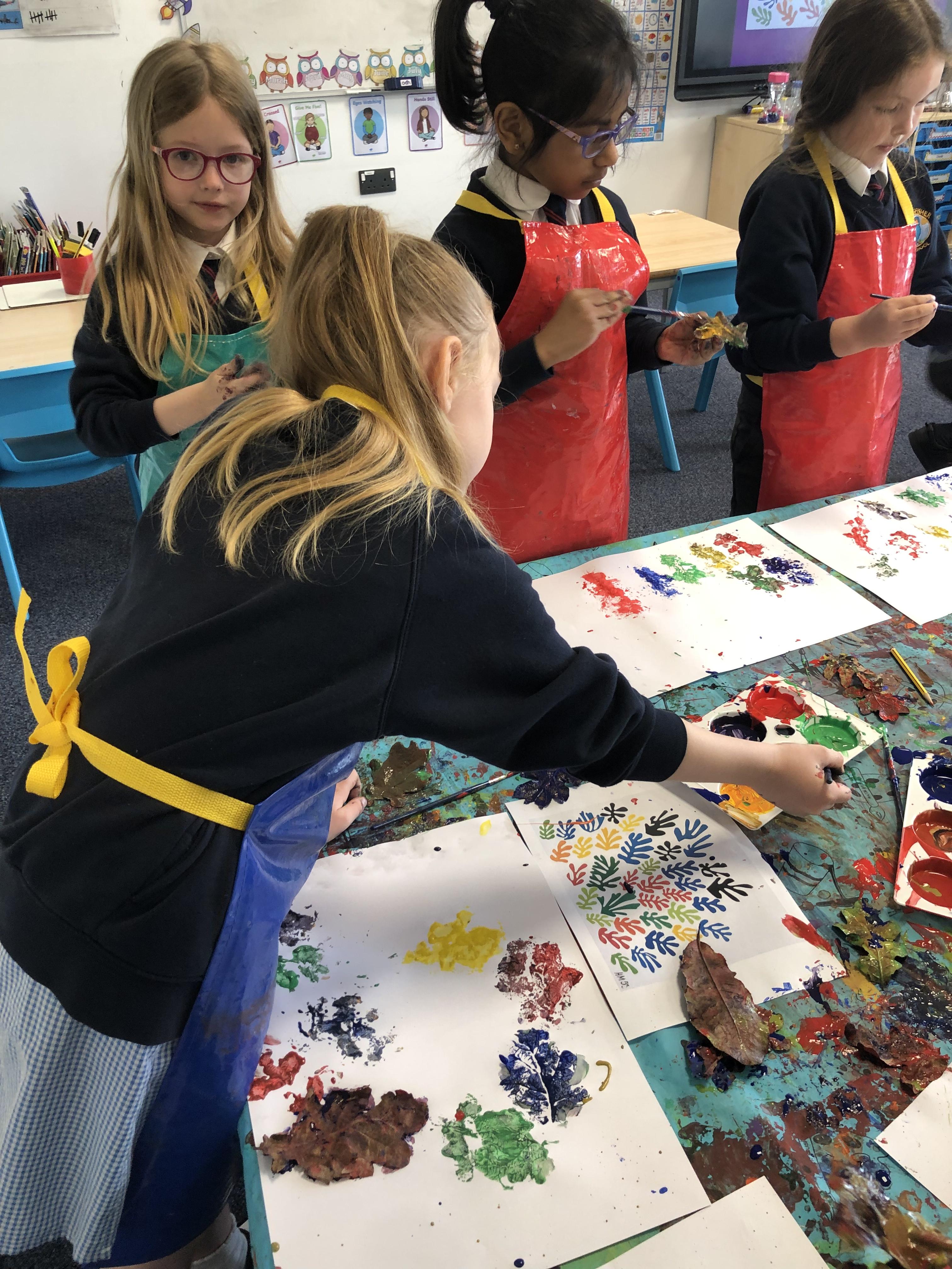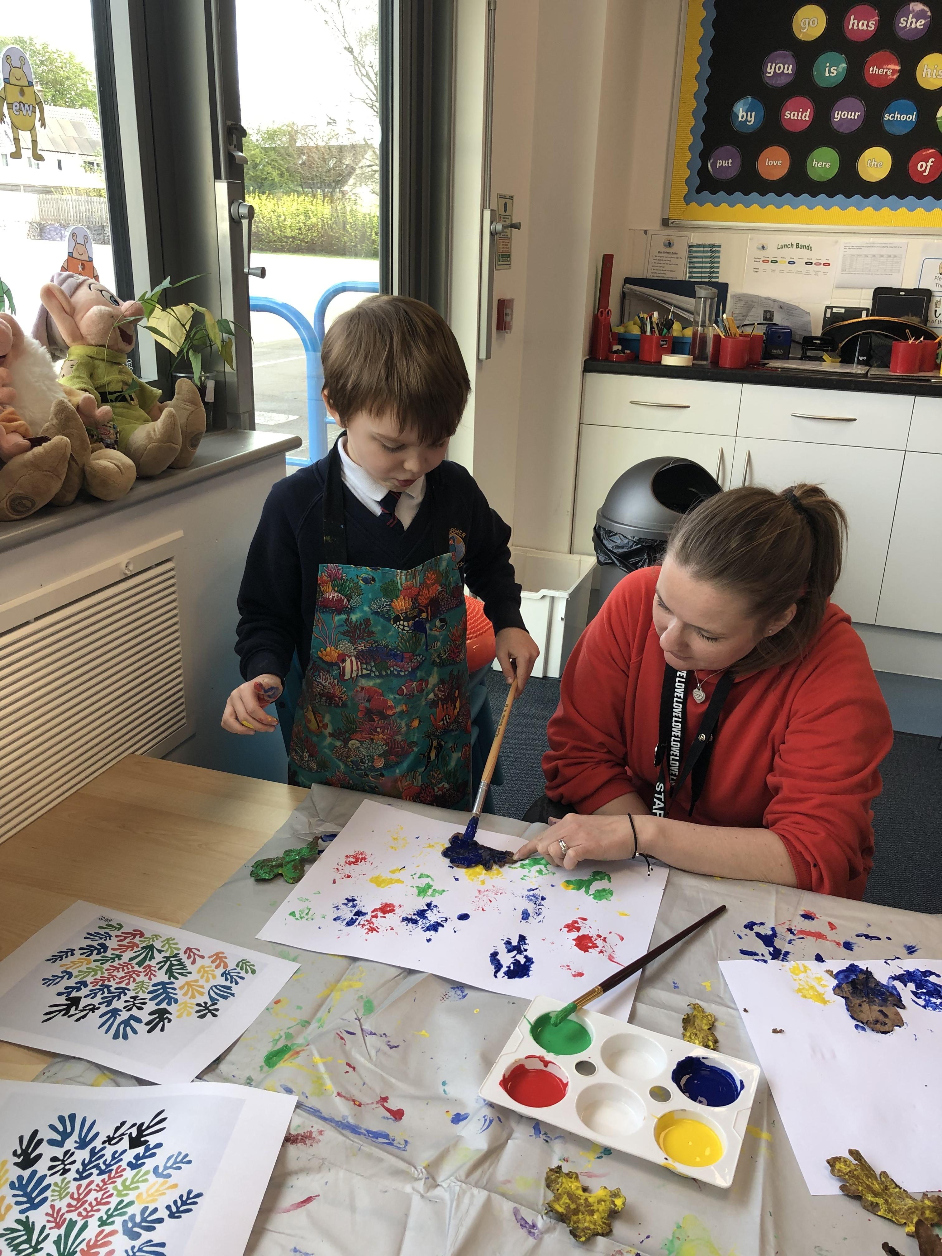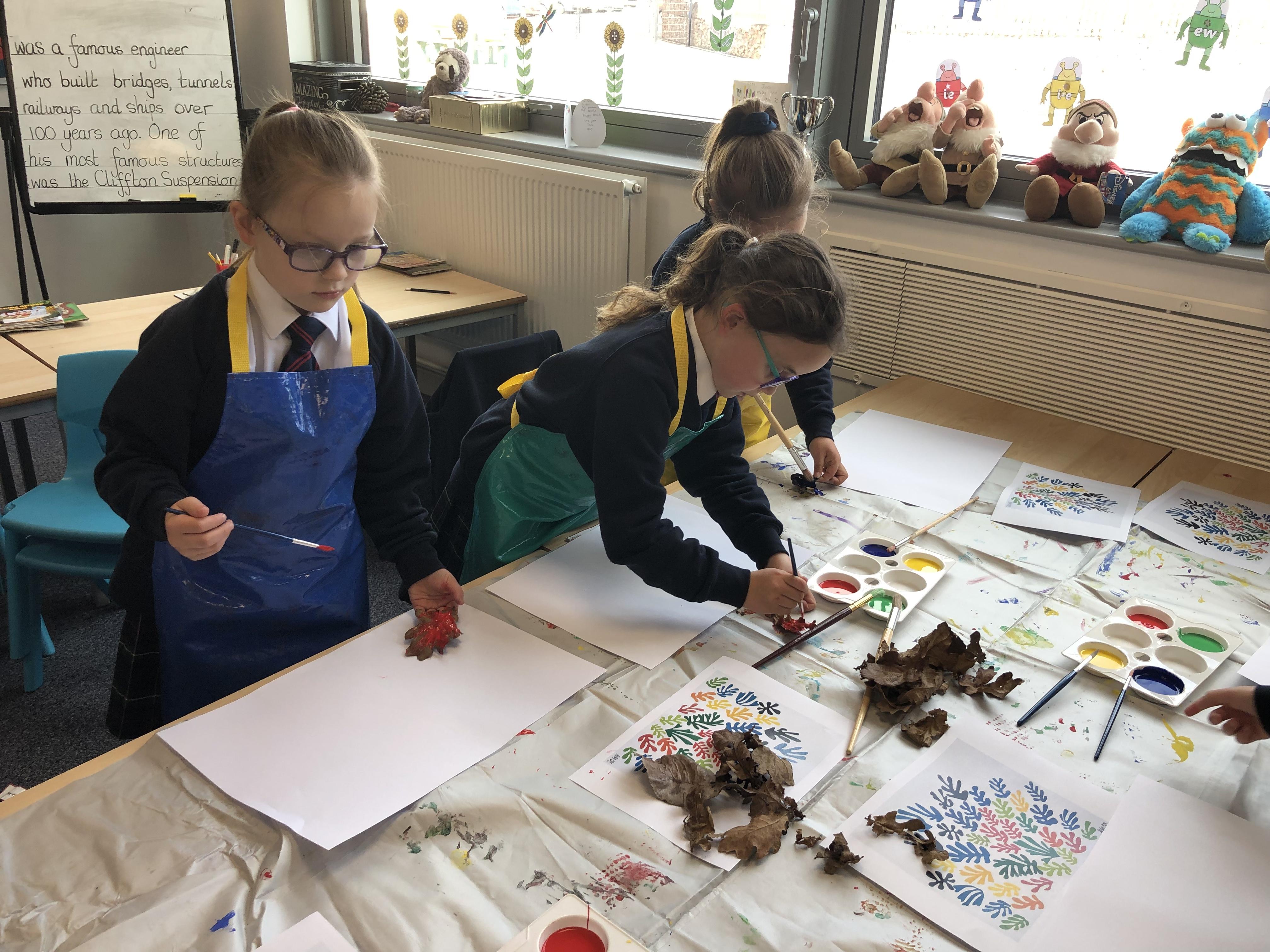 In Art this term we have been exploring printing and mark making. For our final piece, the children used Matisse’s ‘La Gerbe’ creation as inspiration to make their own picture. They applied their printing skills using leaves found on campus and various different colours of paint. It was great to see the children so focussed and enjoying being creative.