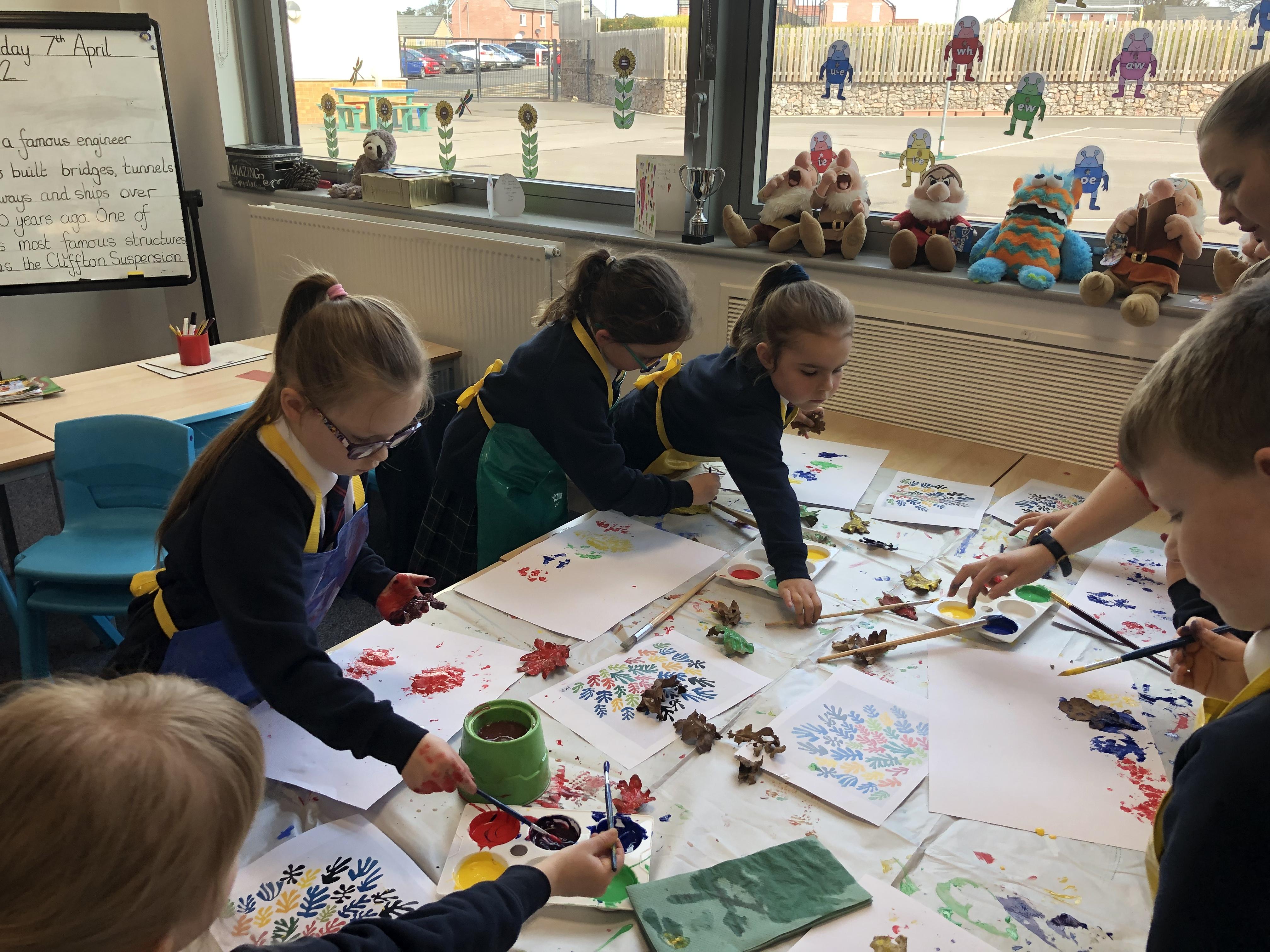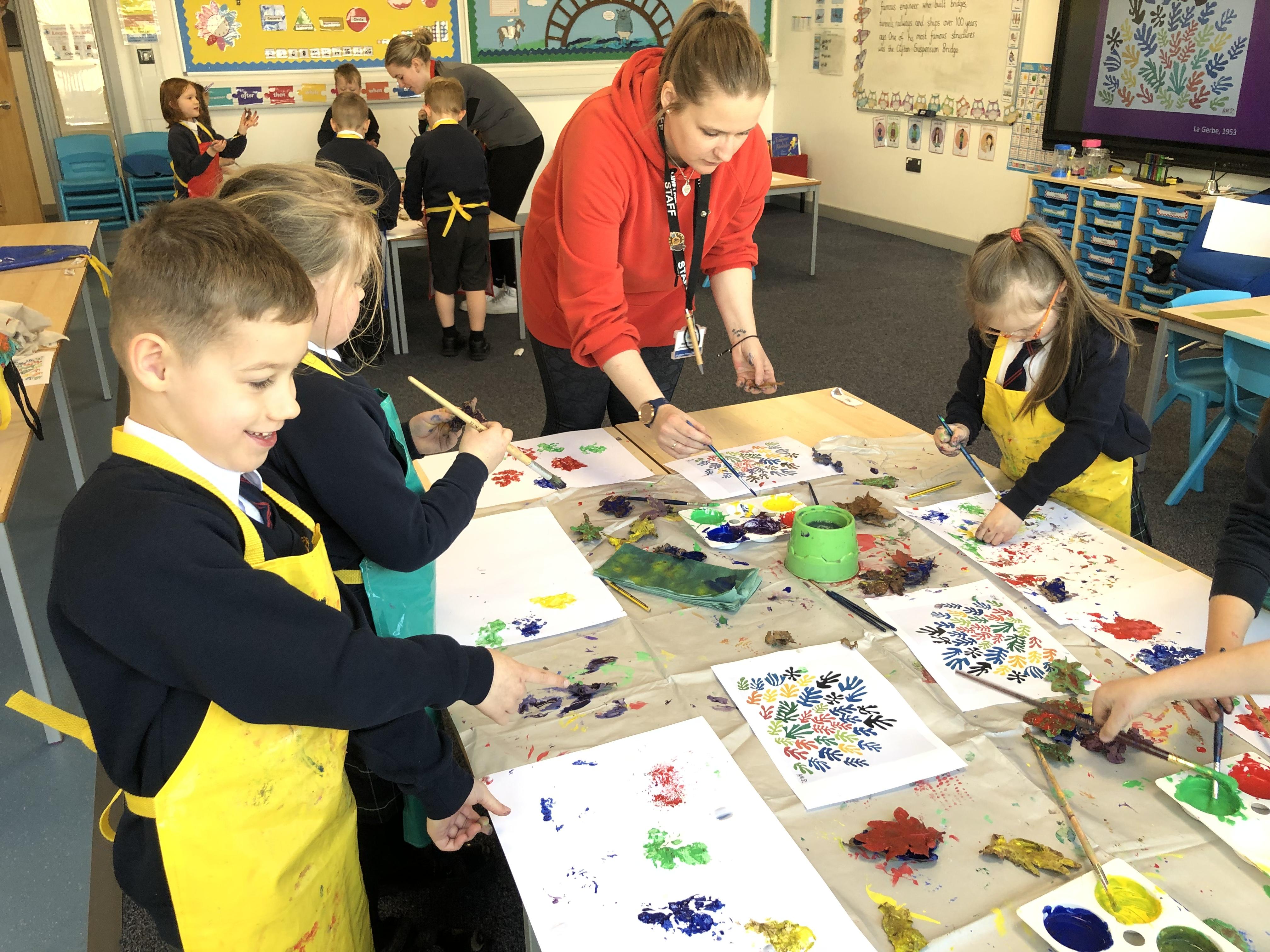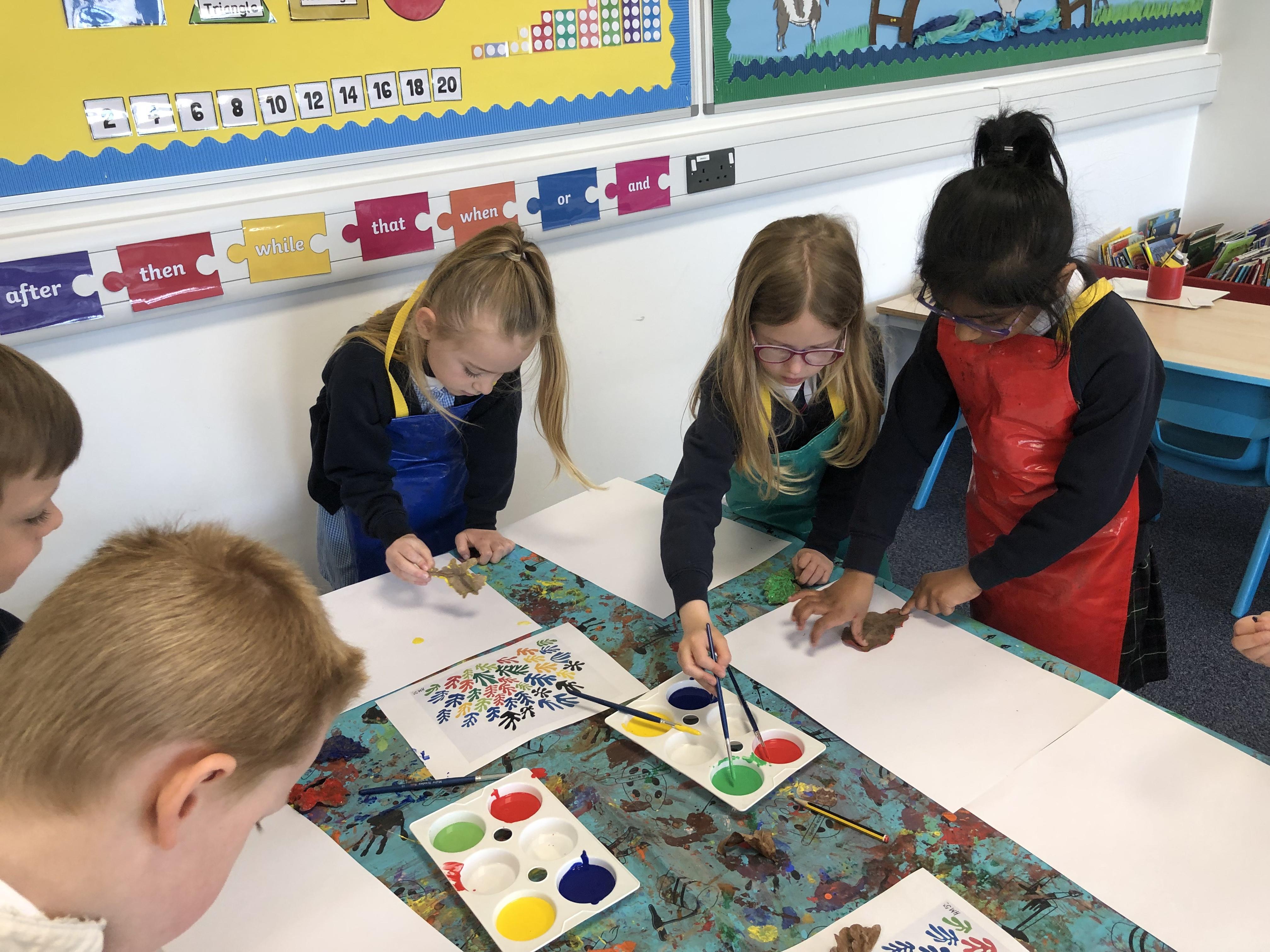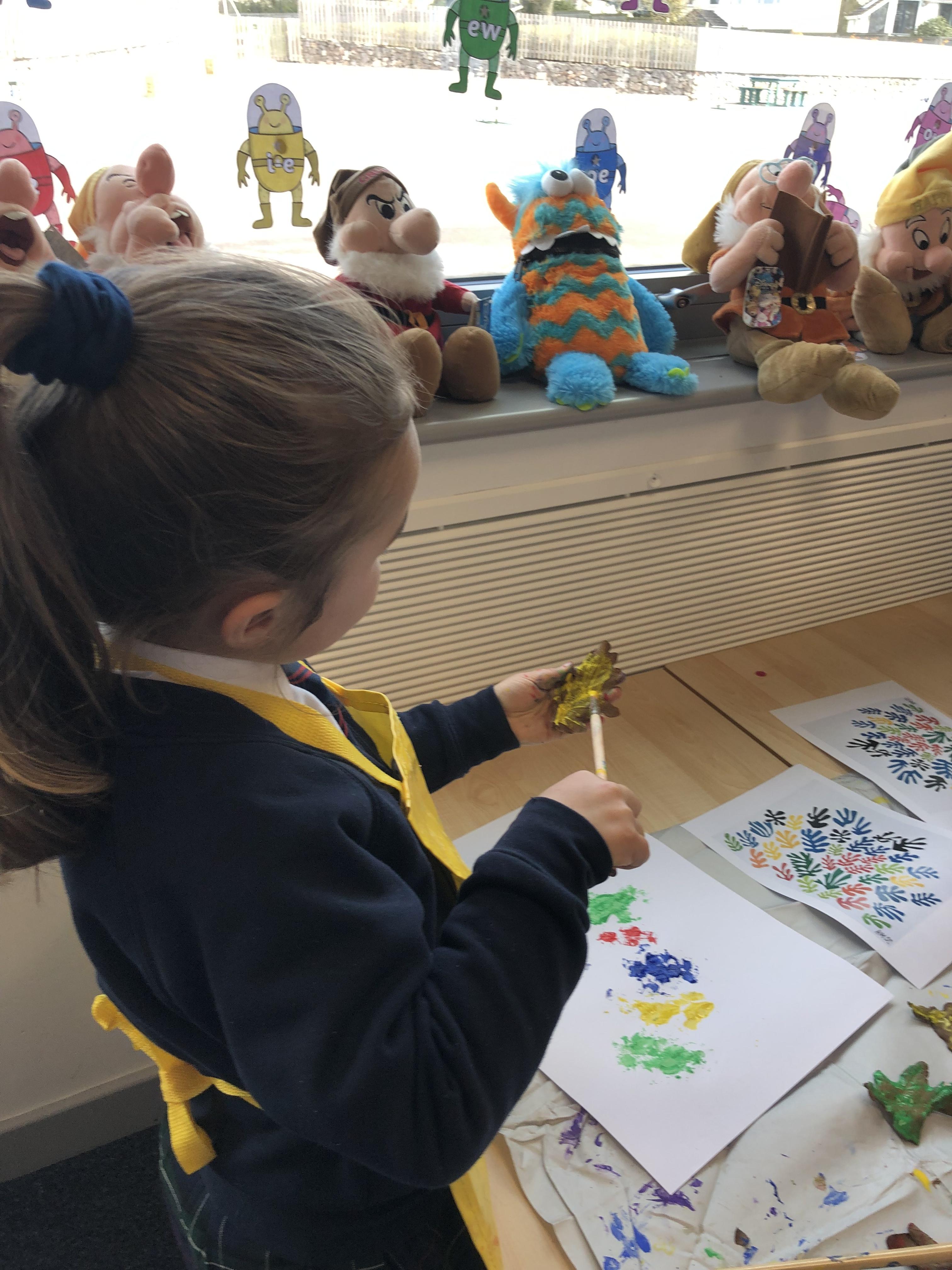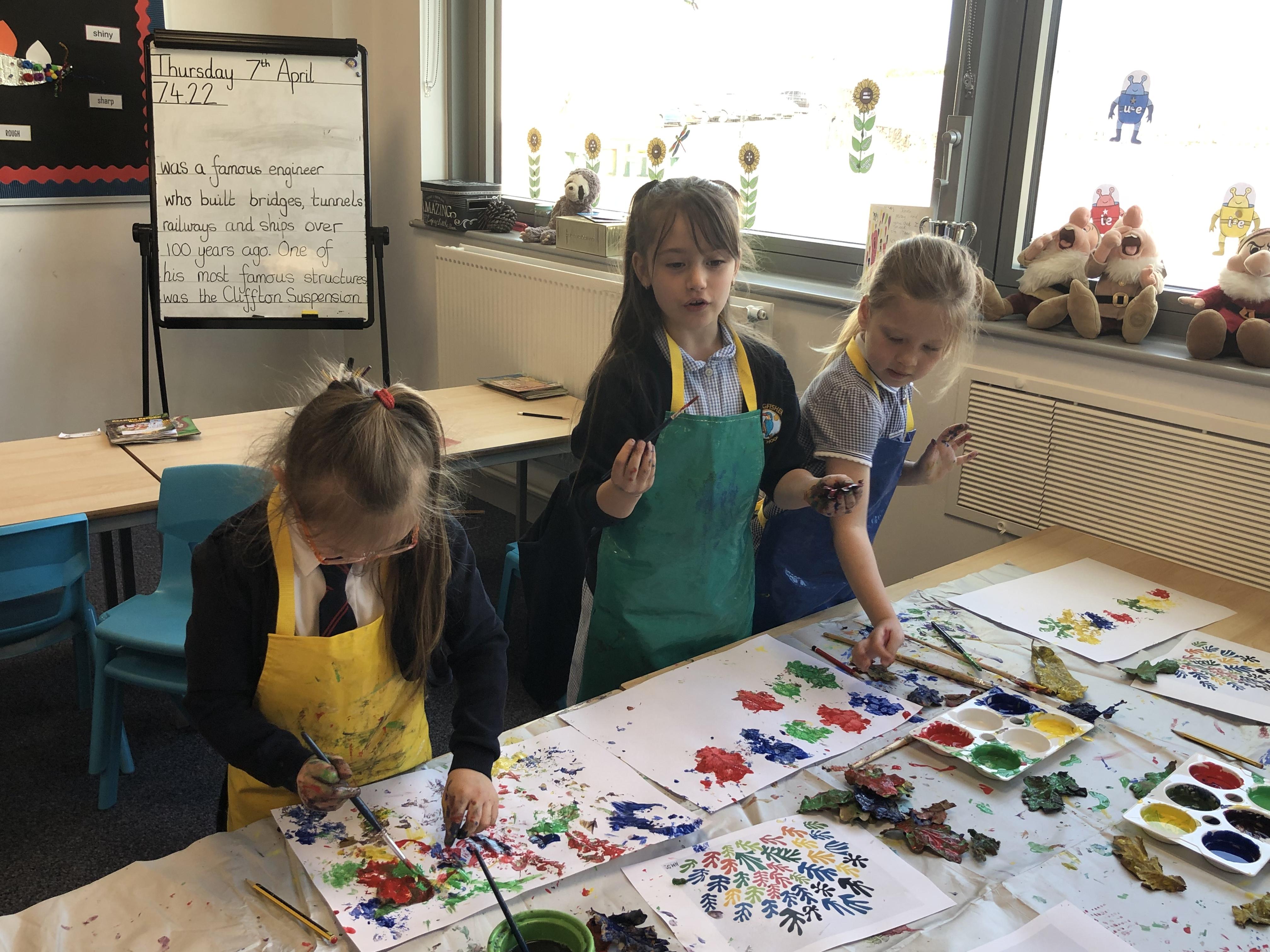 In Art this term we have been exploring printing and mark making. For our final piece, the children used Matisse’s ‘La Gerbe’ creation as inspiration to make their own picture. They applied their printing skills using leaves found on campus and various different colours of paint. It was great to see the children so focussed and enjoying being creative.