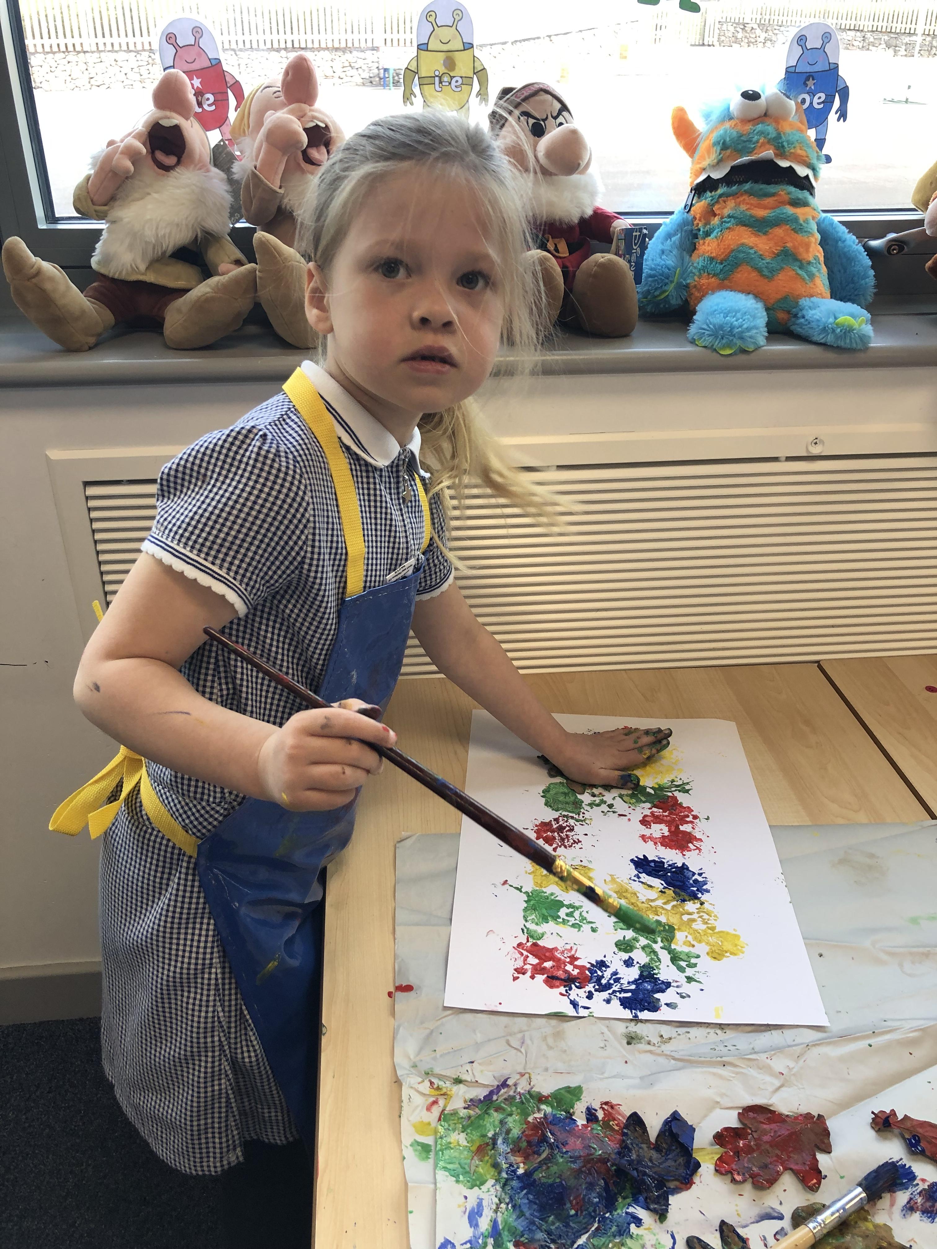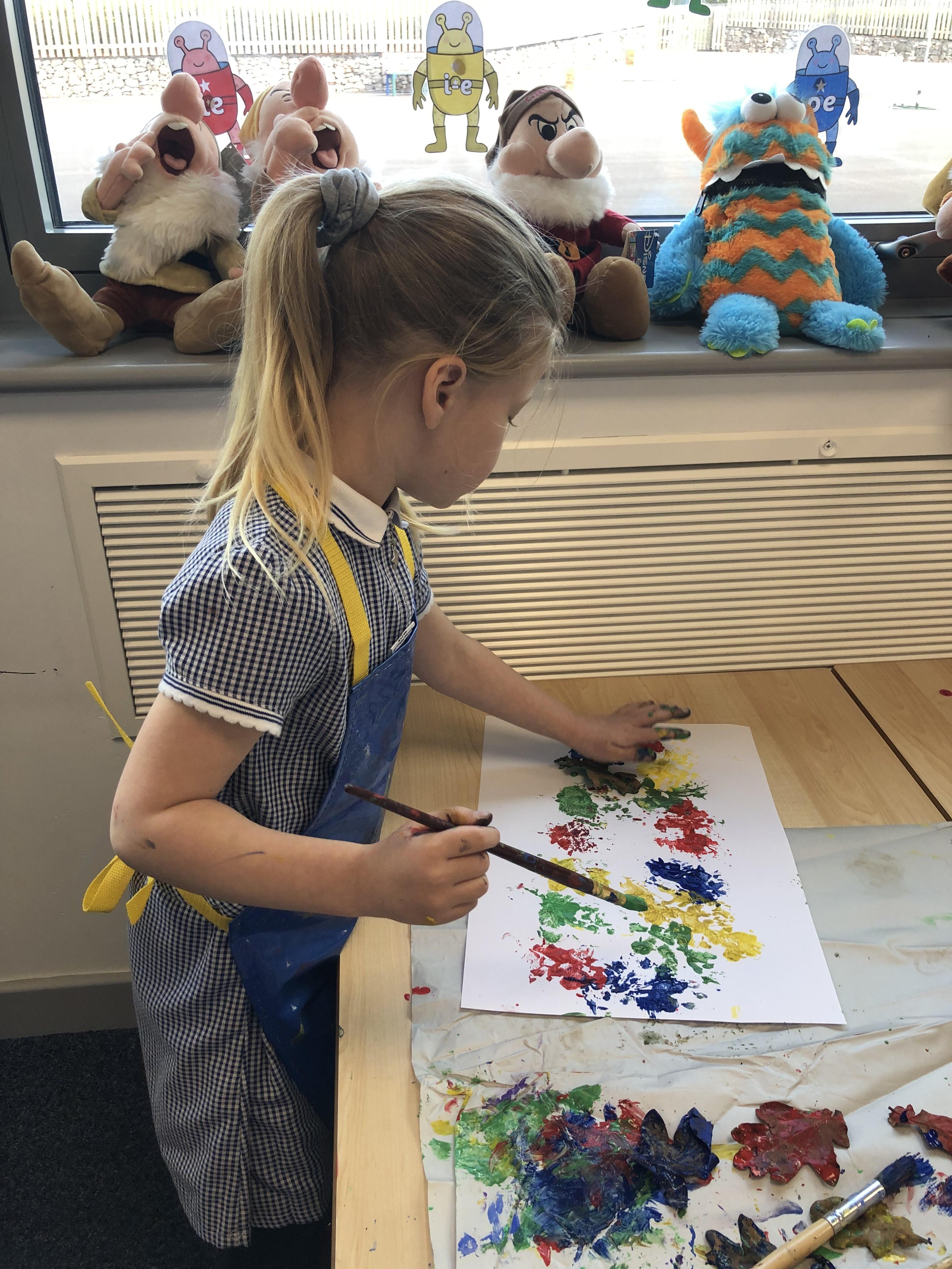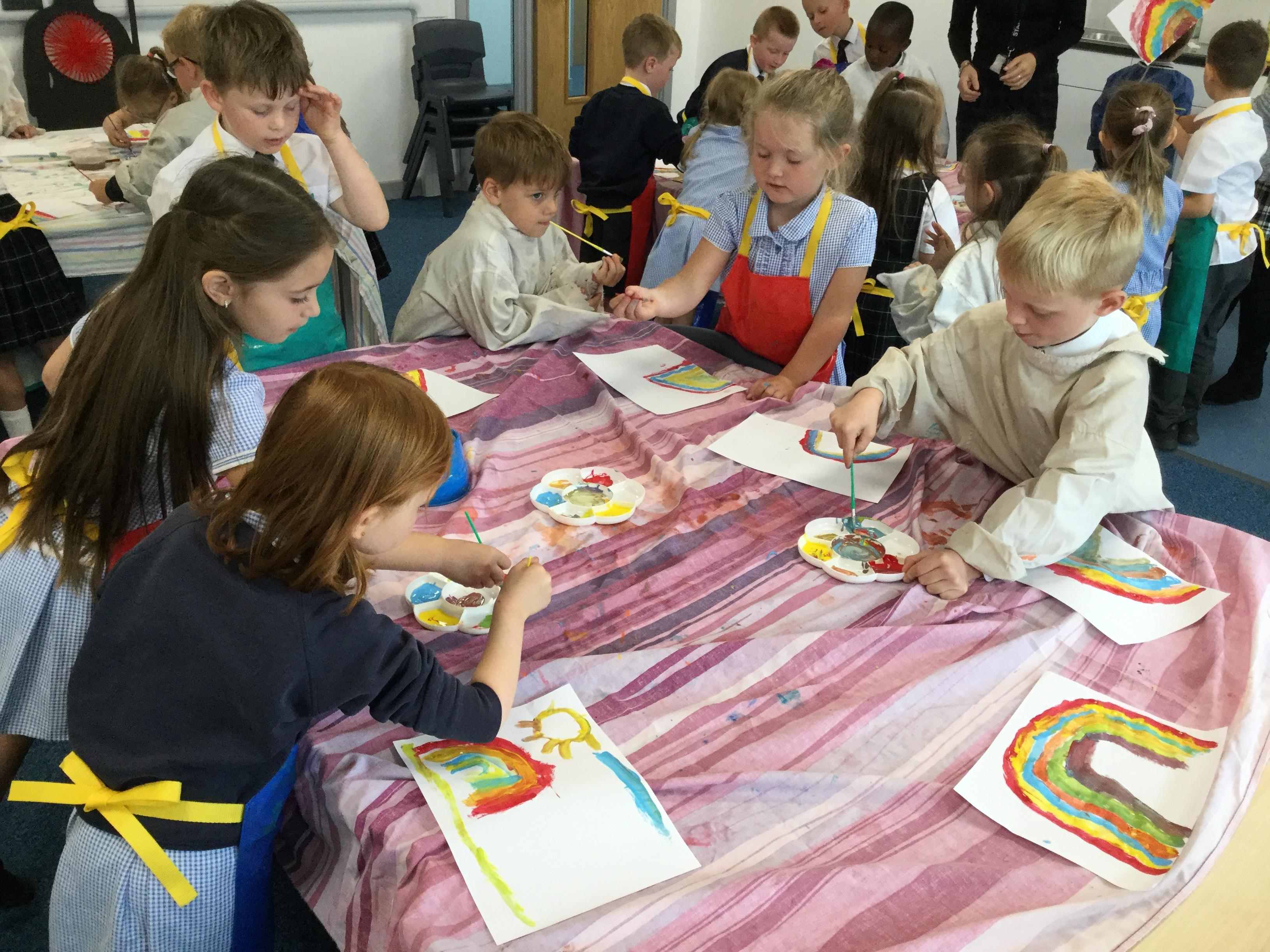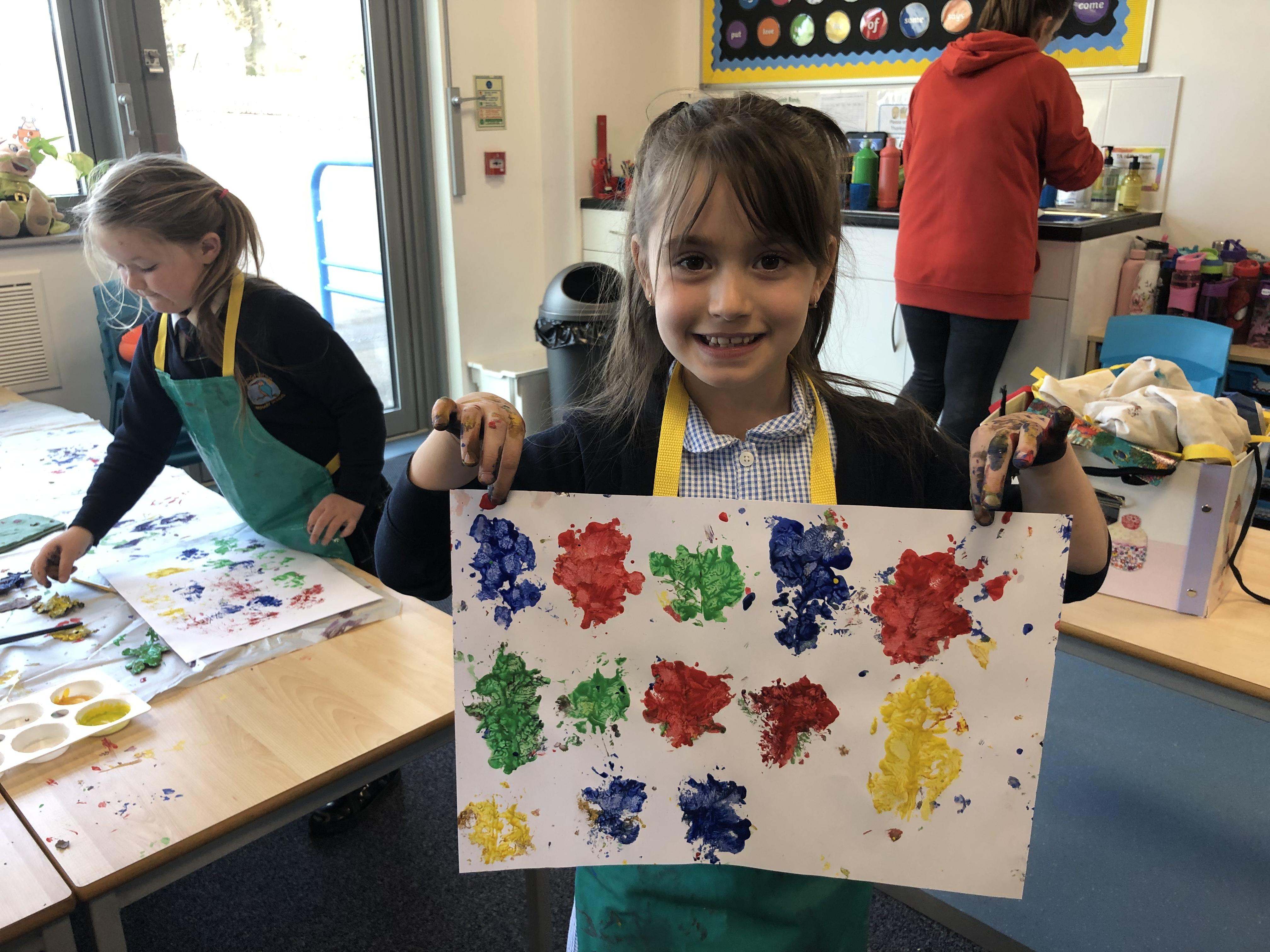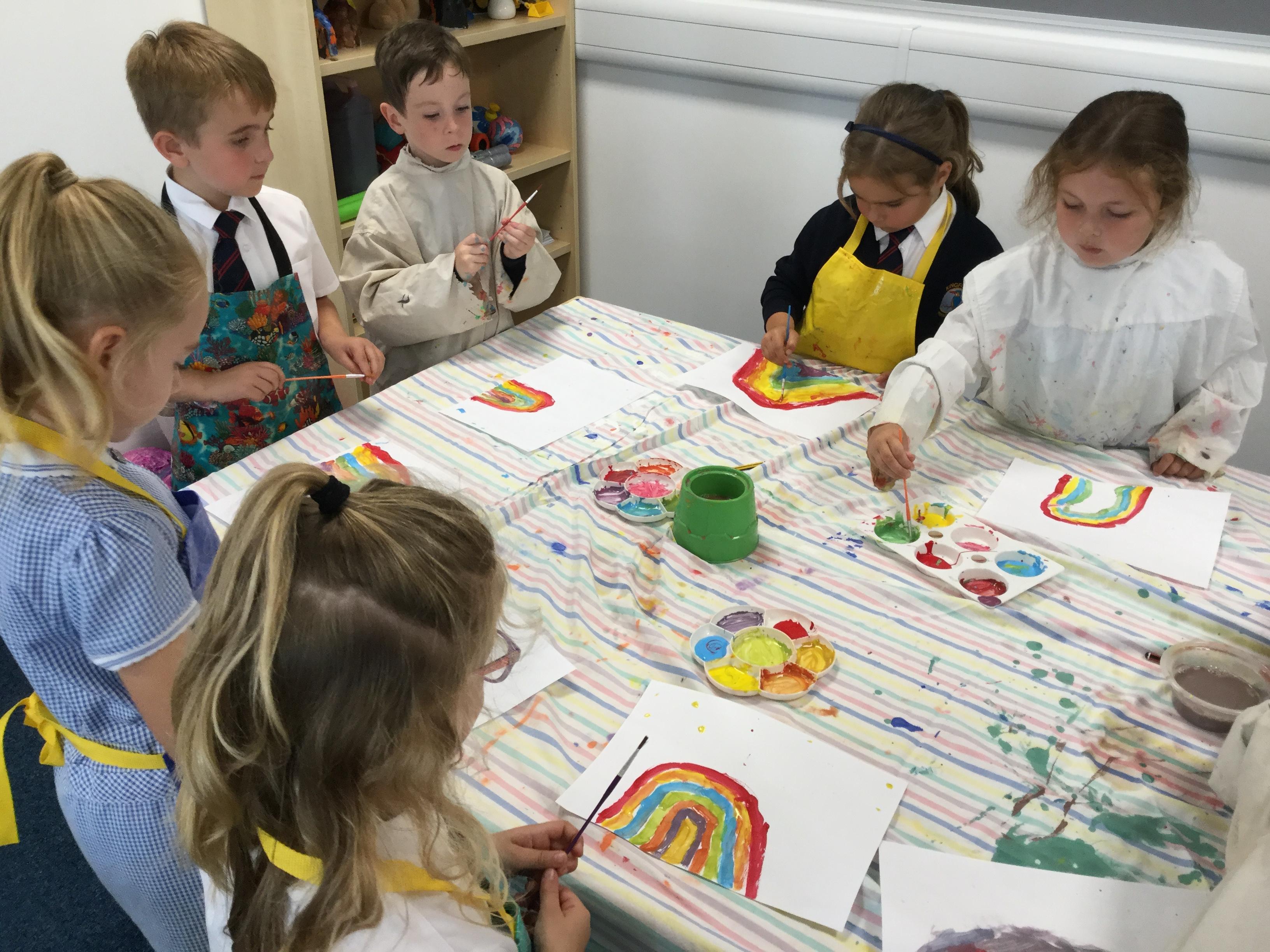 In Art today the children were exploring colour. They were all tasked with creating a rainbow with paint, only using the three primary colours. It is safe to say they all had a lot of fun mixing the different colours and I am sure you will agree, the end results were beautiful.