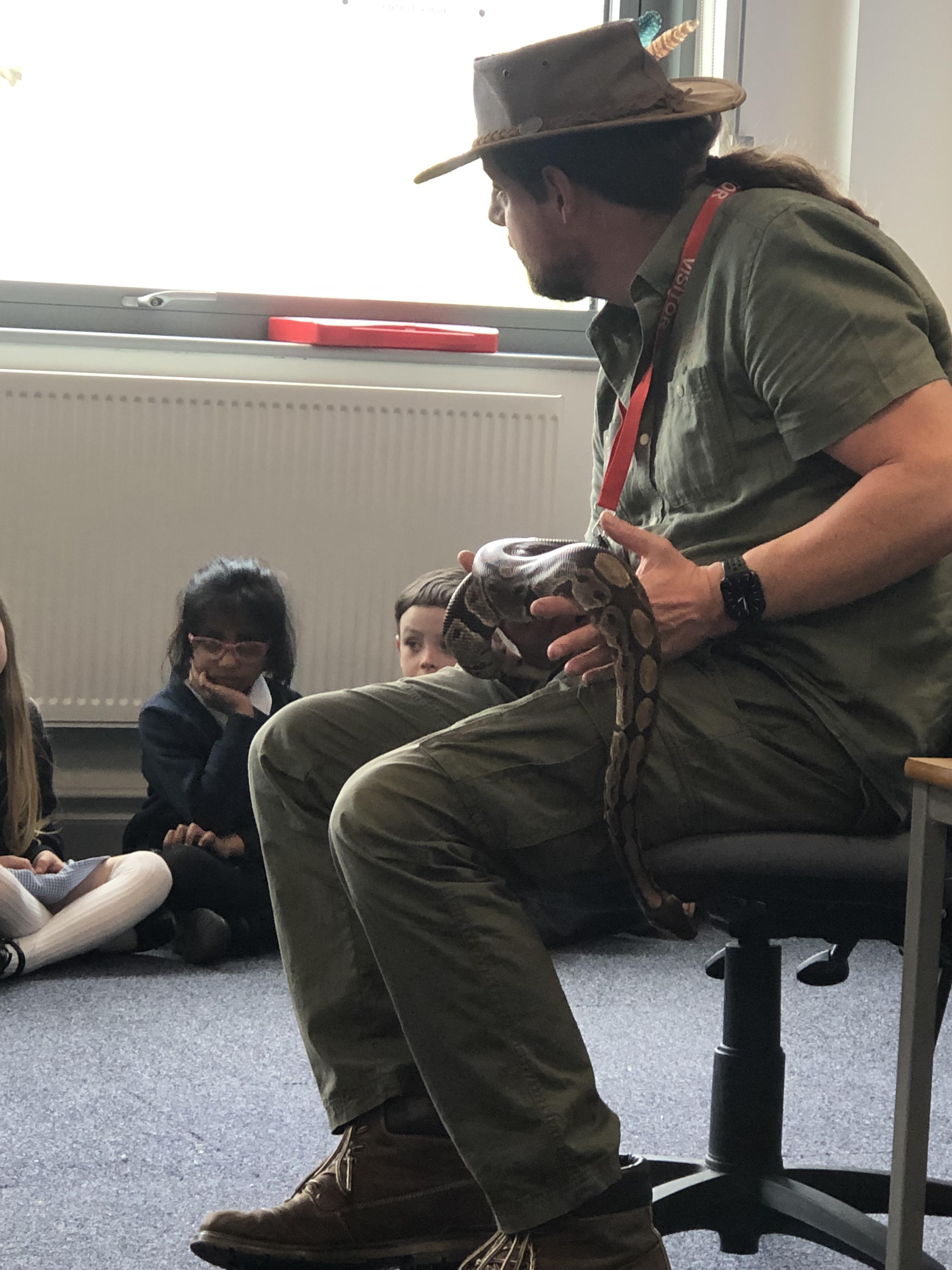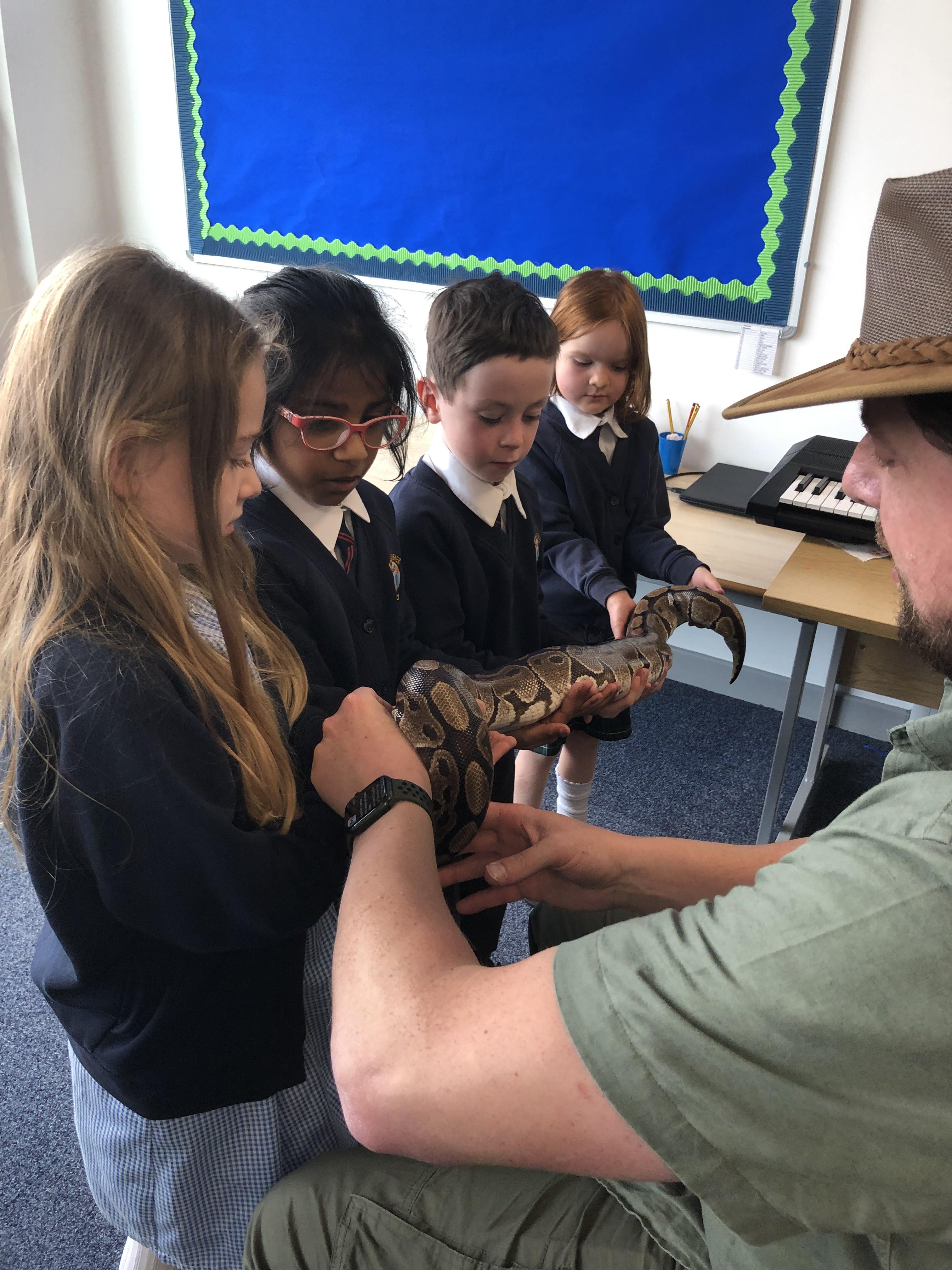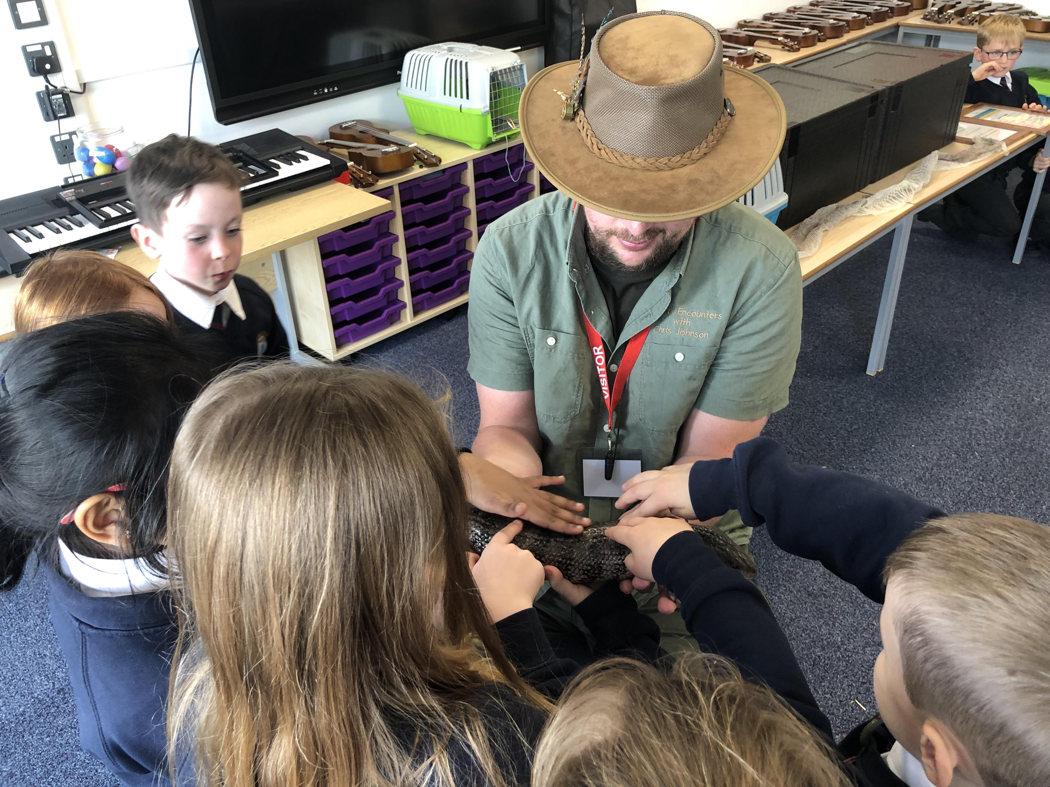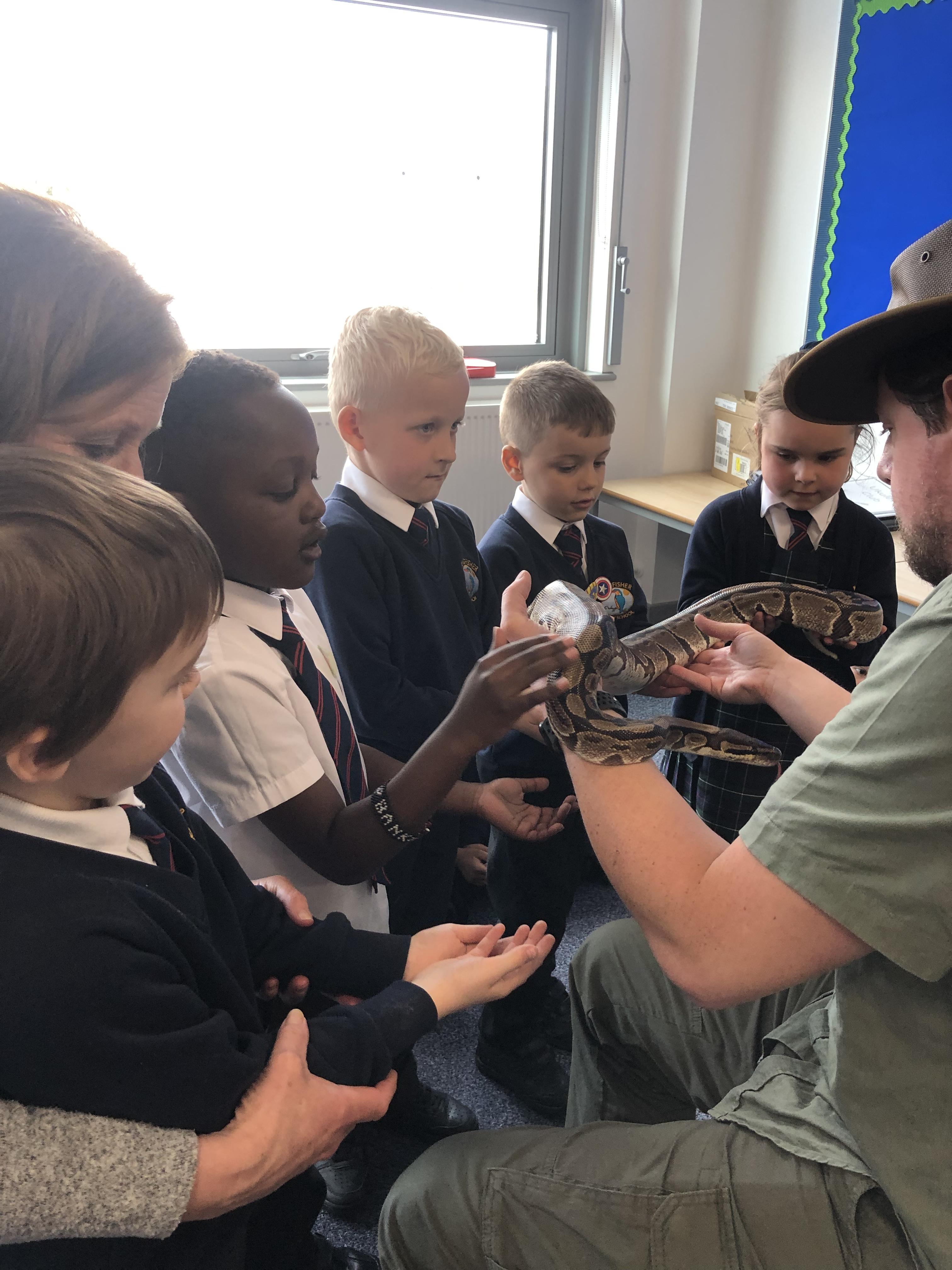 Today, we were super lucky to have a visit from the ‘Animal Man’ and his lovely animal friends. The children were so excited to be able to learn lots of interesting things about the animals and get up close and personal with them. I was amazed by how many children wanted to hold the snake and how brave they were when doing so!