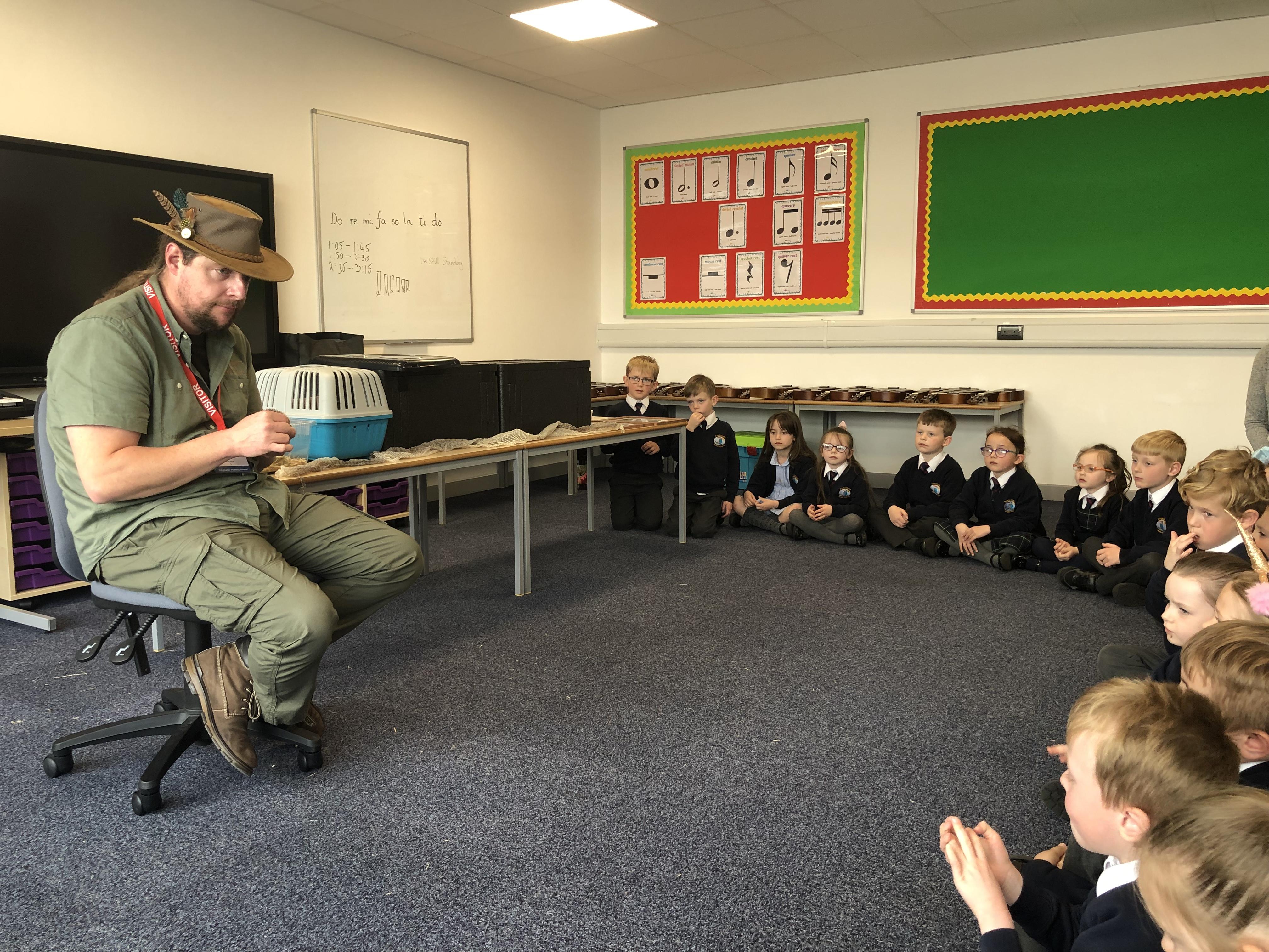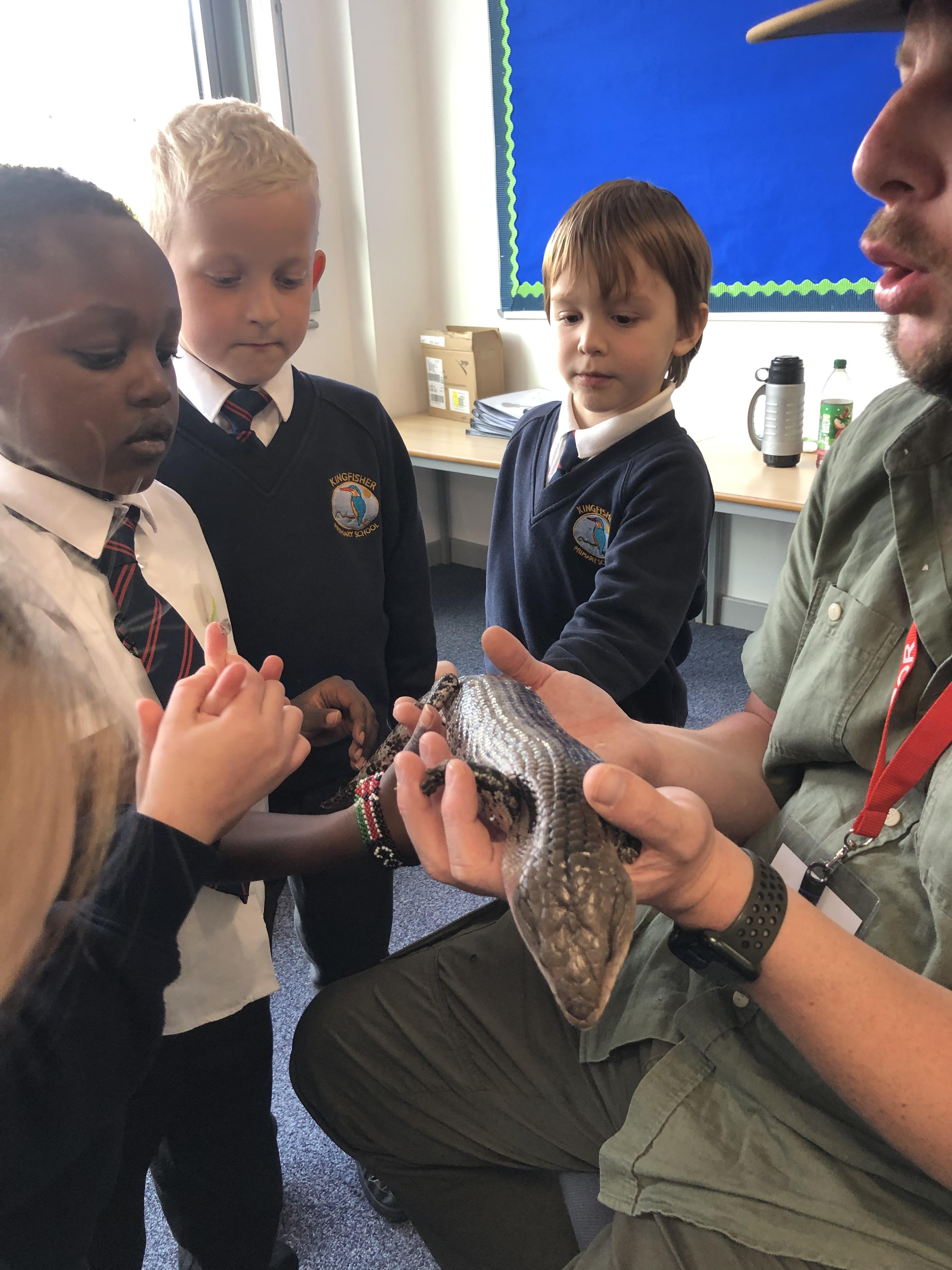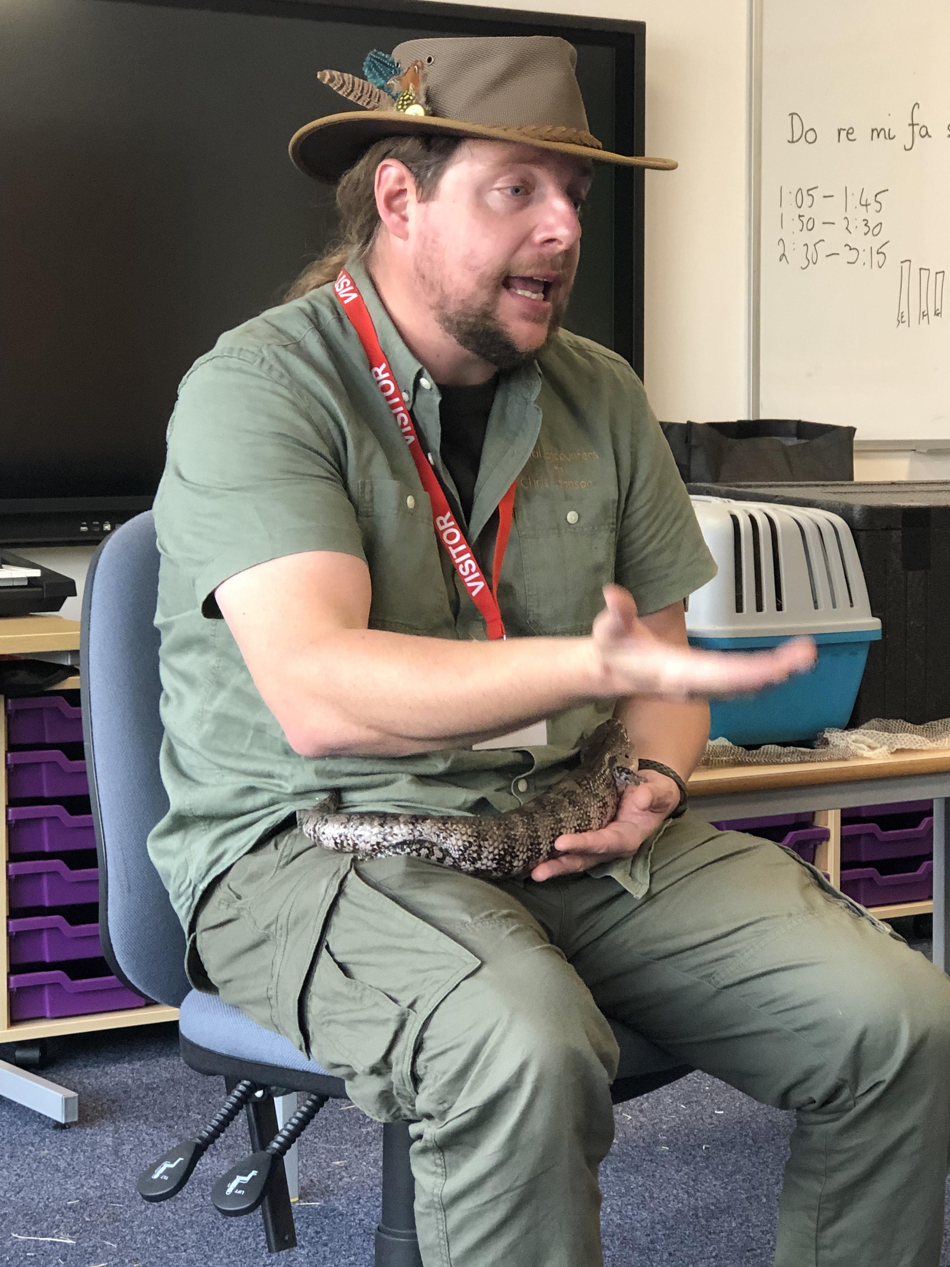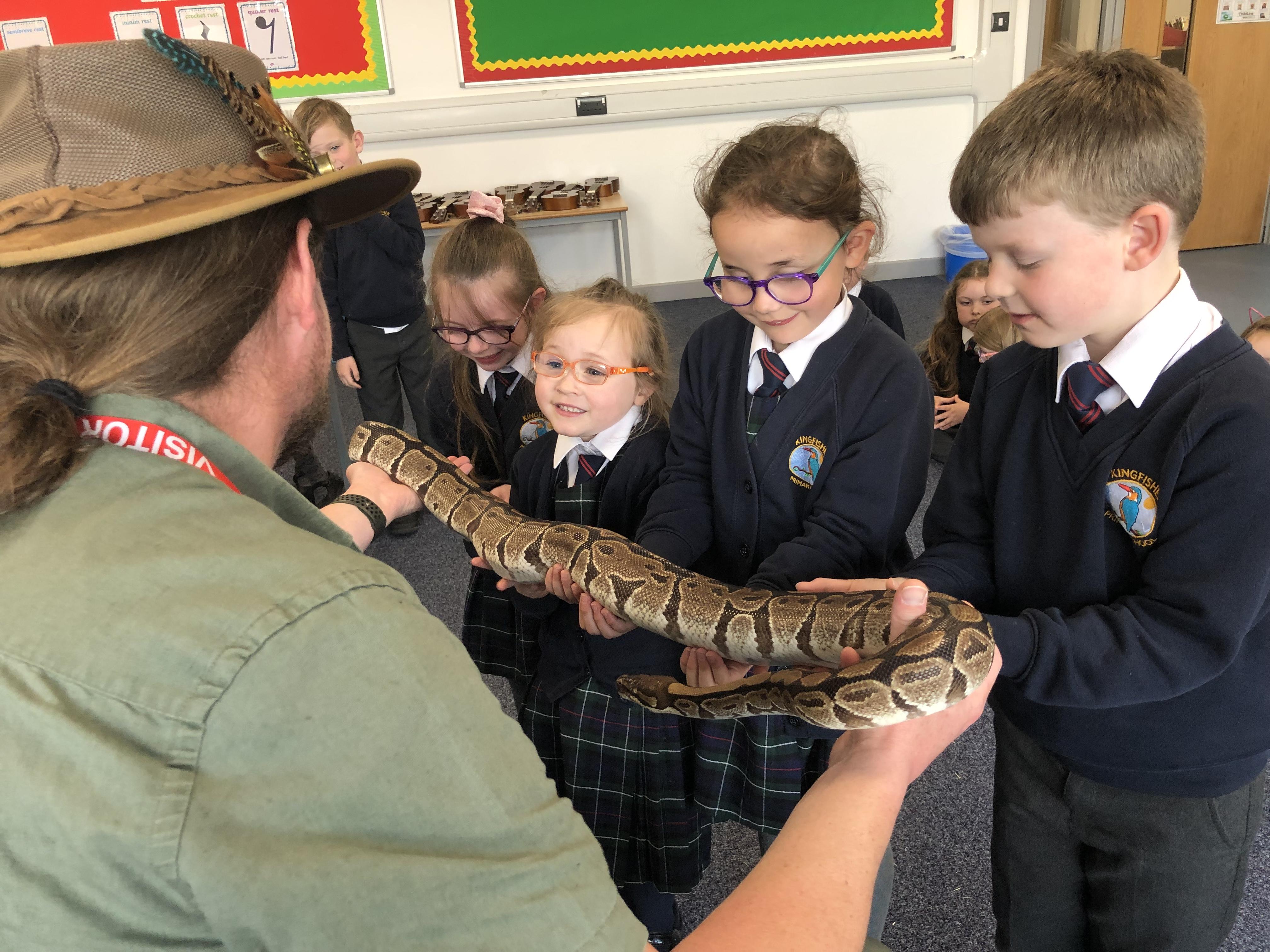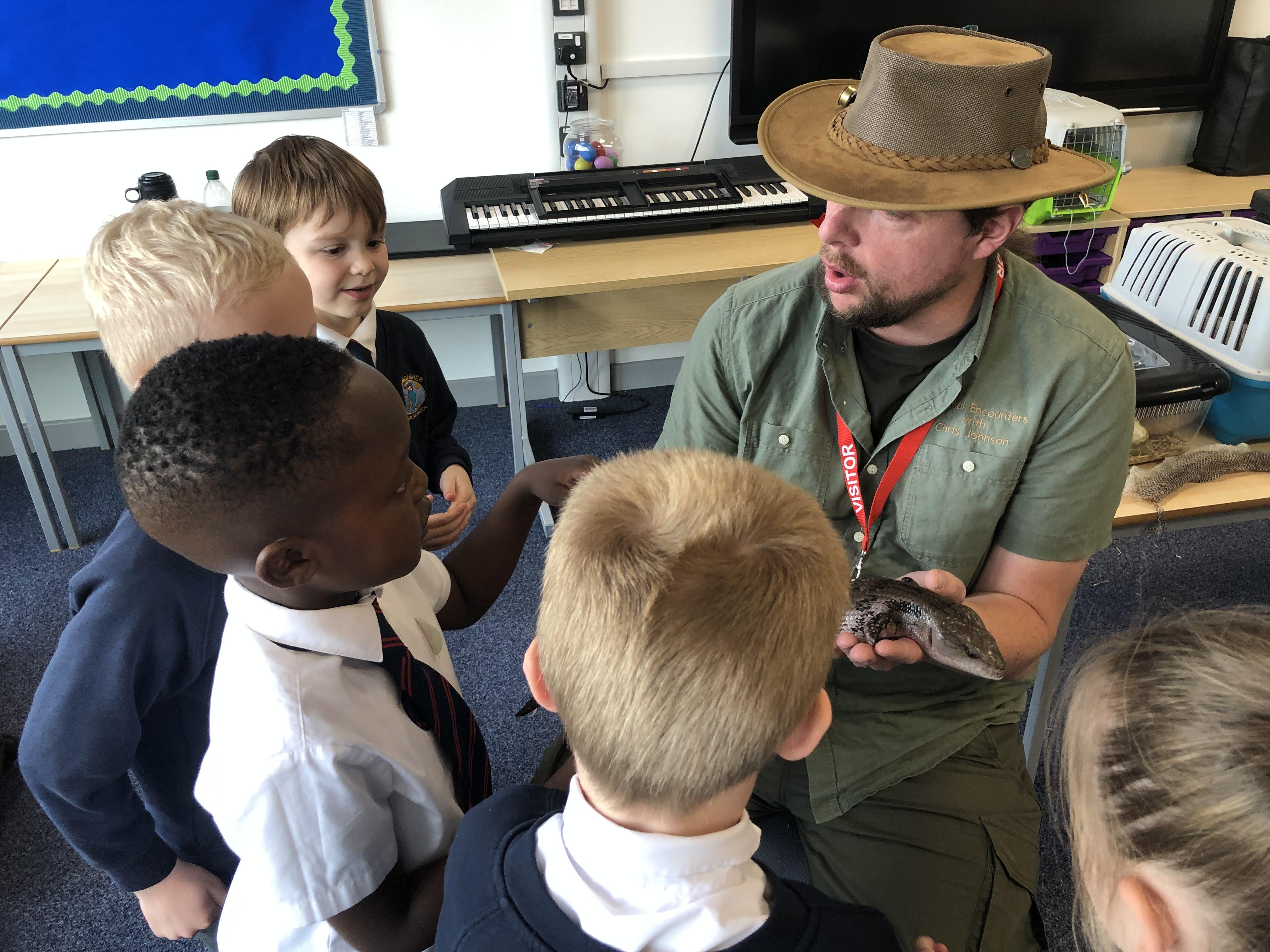 Today, we were super lucky to have a visit from the ‘Animal Man’ and his lovely animal friends. The children were so excited to be able to learn lots of interesting things about the animals and get up close and personal with them. I was amazed by how many children wanted to hold the snake and how brave they were when doing so!