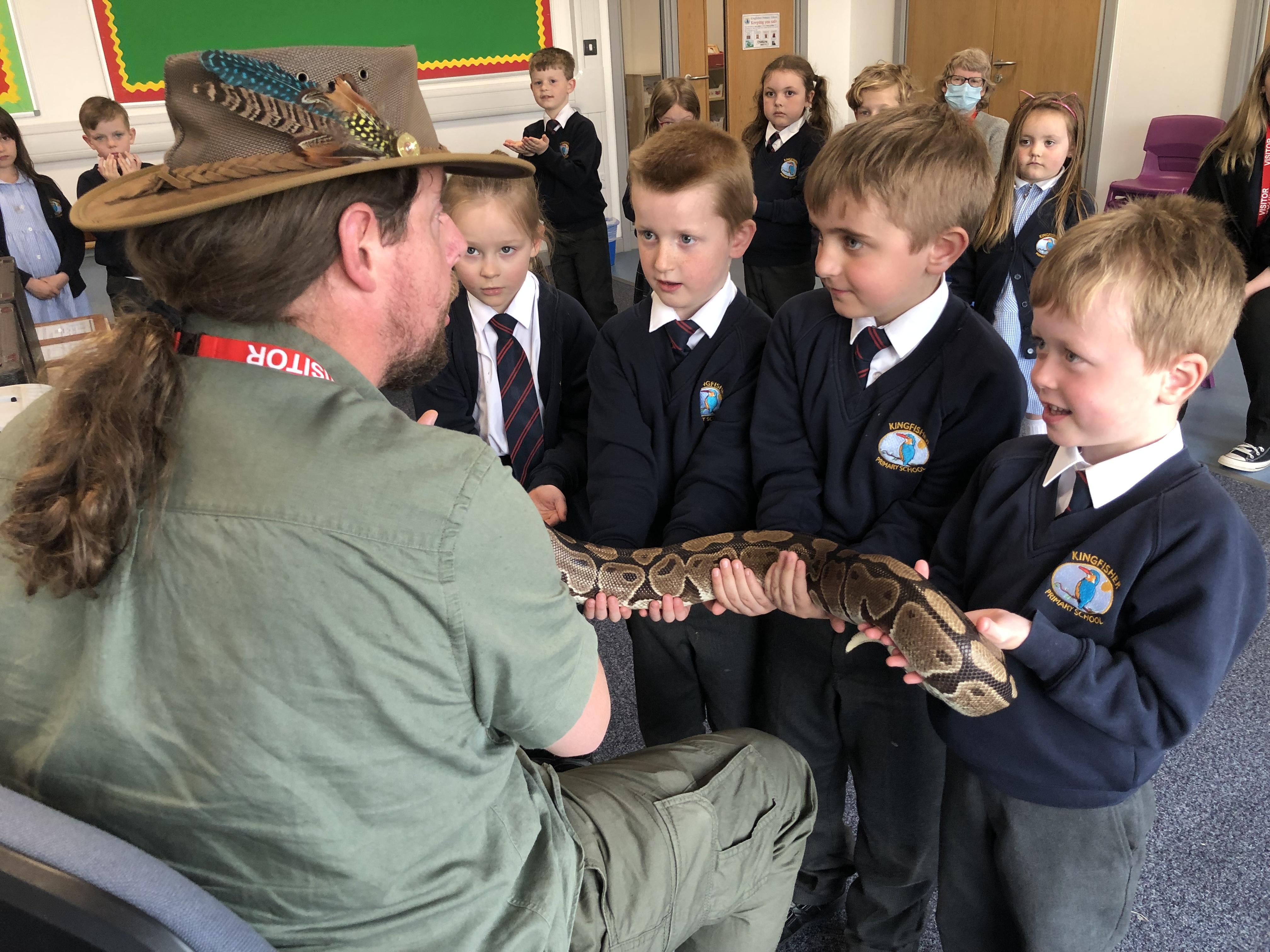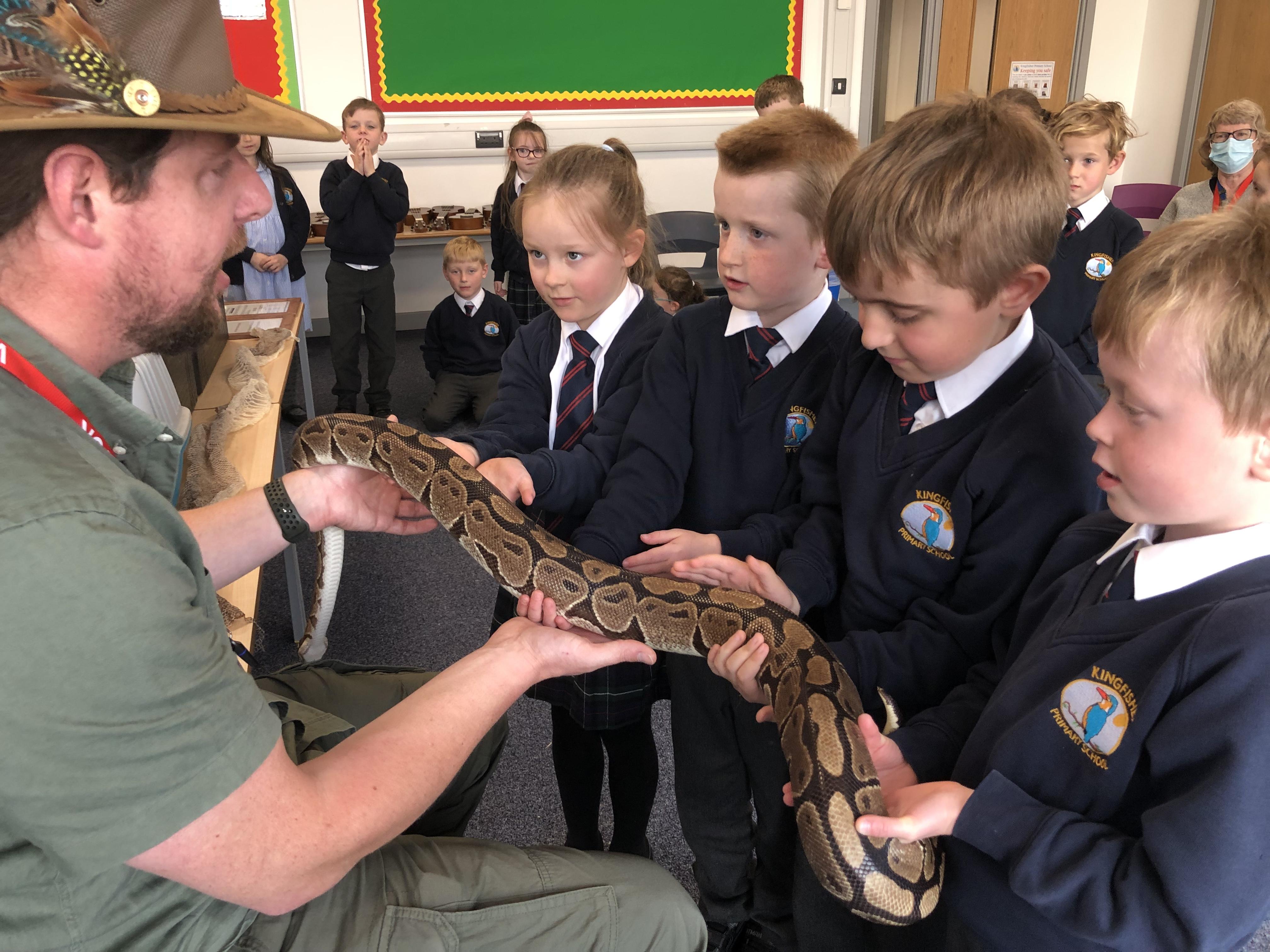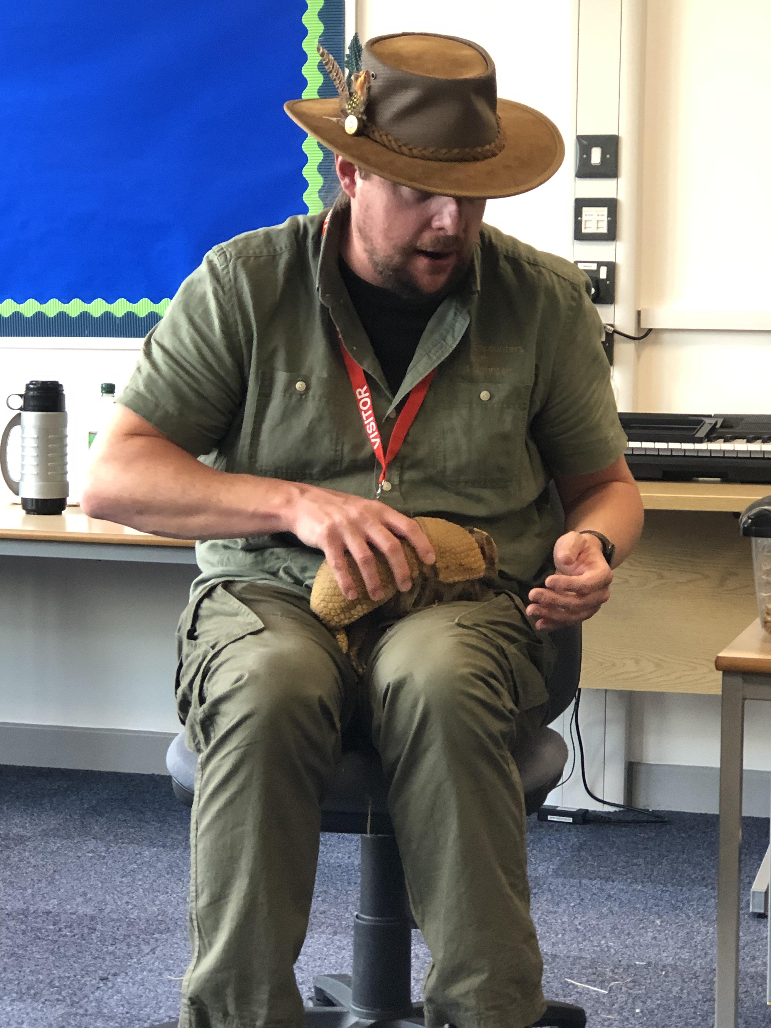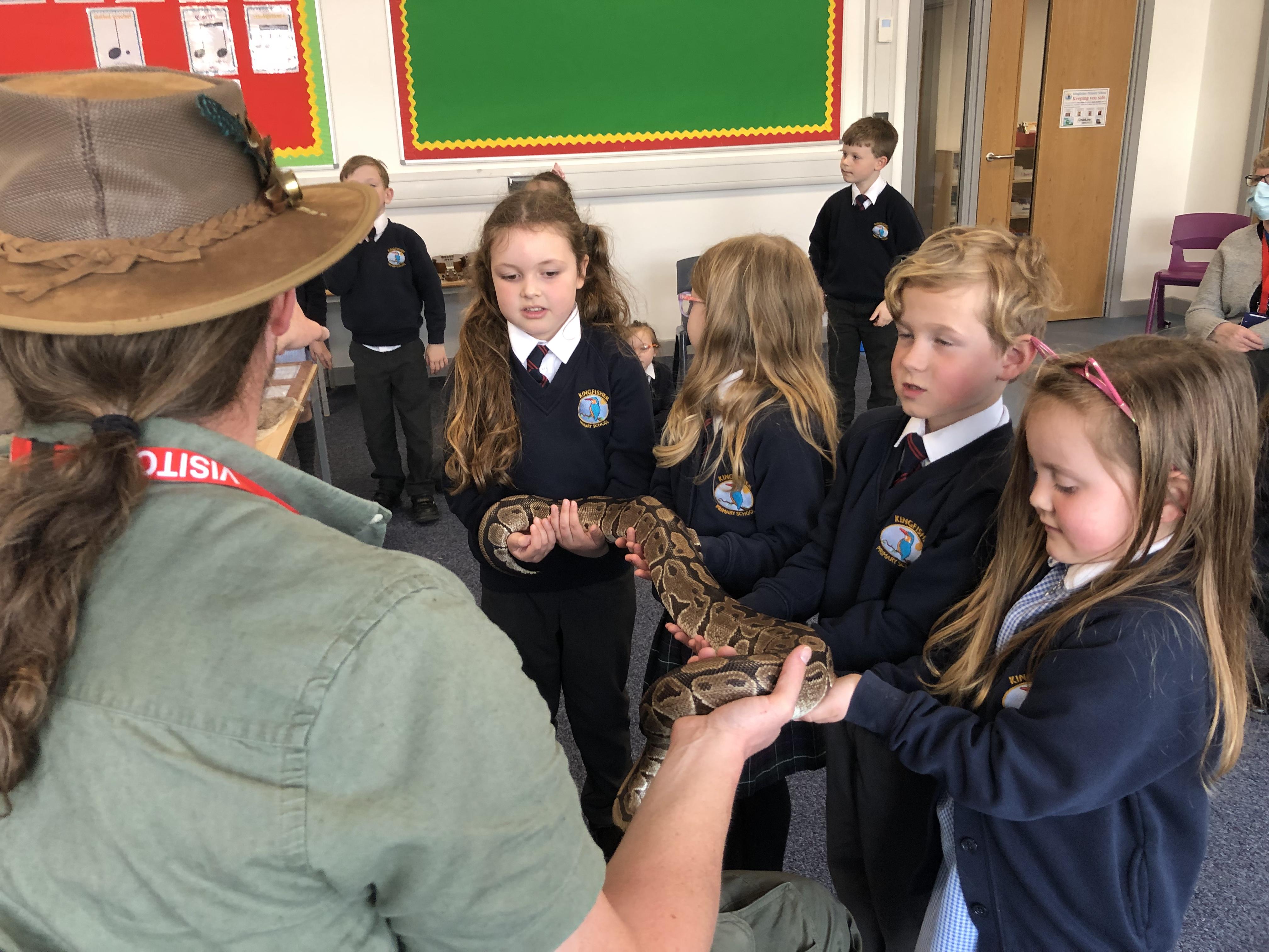 Today, we were super lucky to have a visit from the ‘Animal Man’ and his lovely animal friends. The children were so excited to be able to learn lots of interesting things about the animals and get up close and personal with them. I was amazed by how many children wanted to hold the snake and how brave they were when doing so!
