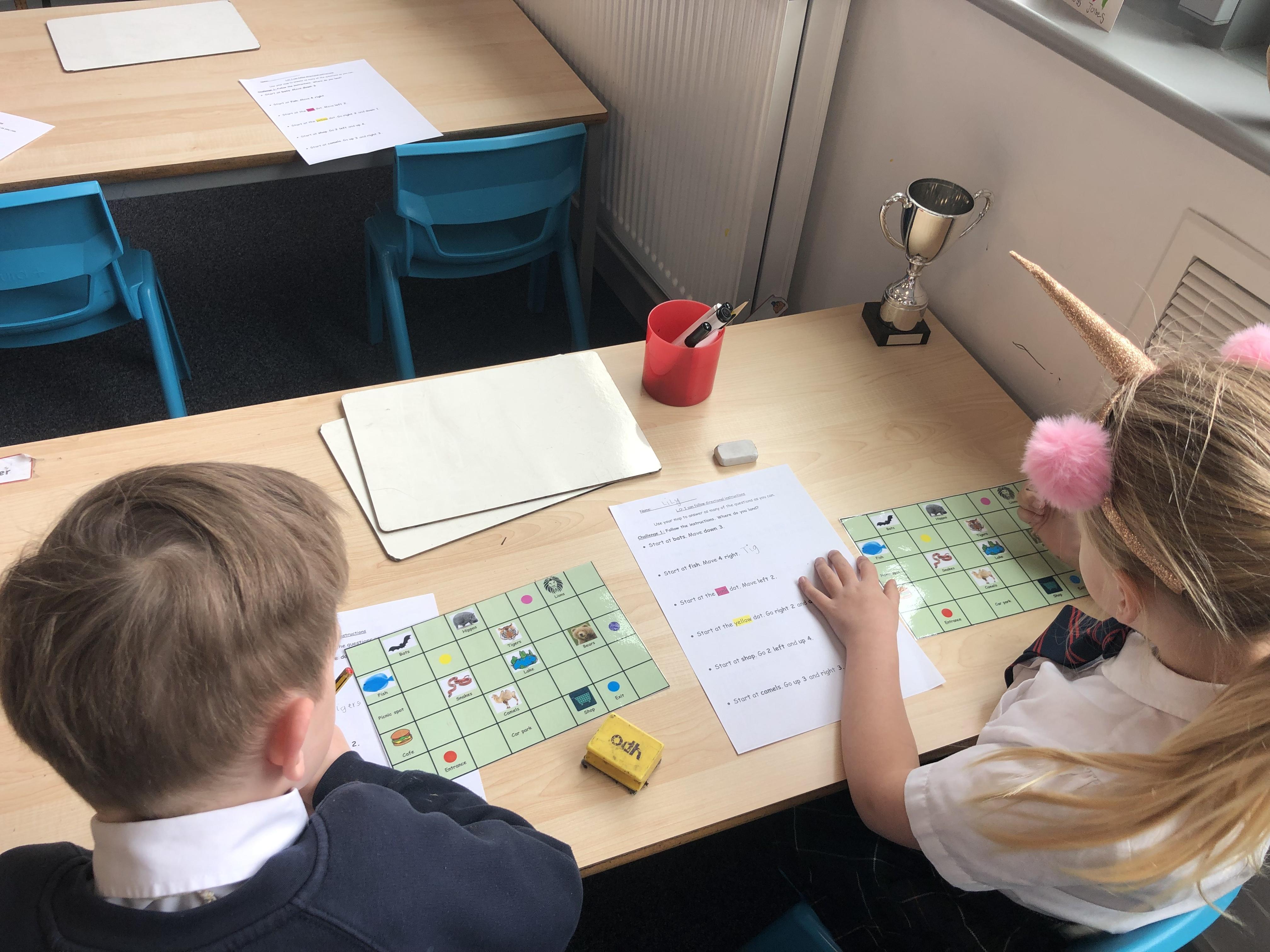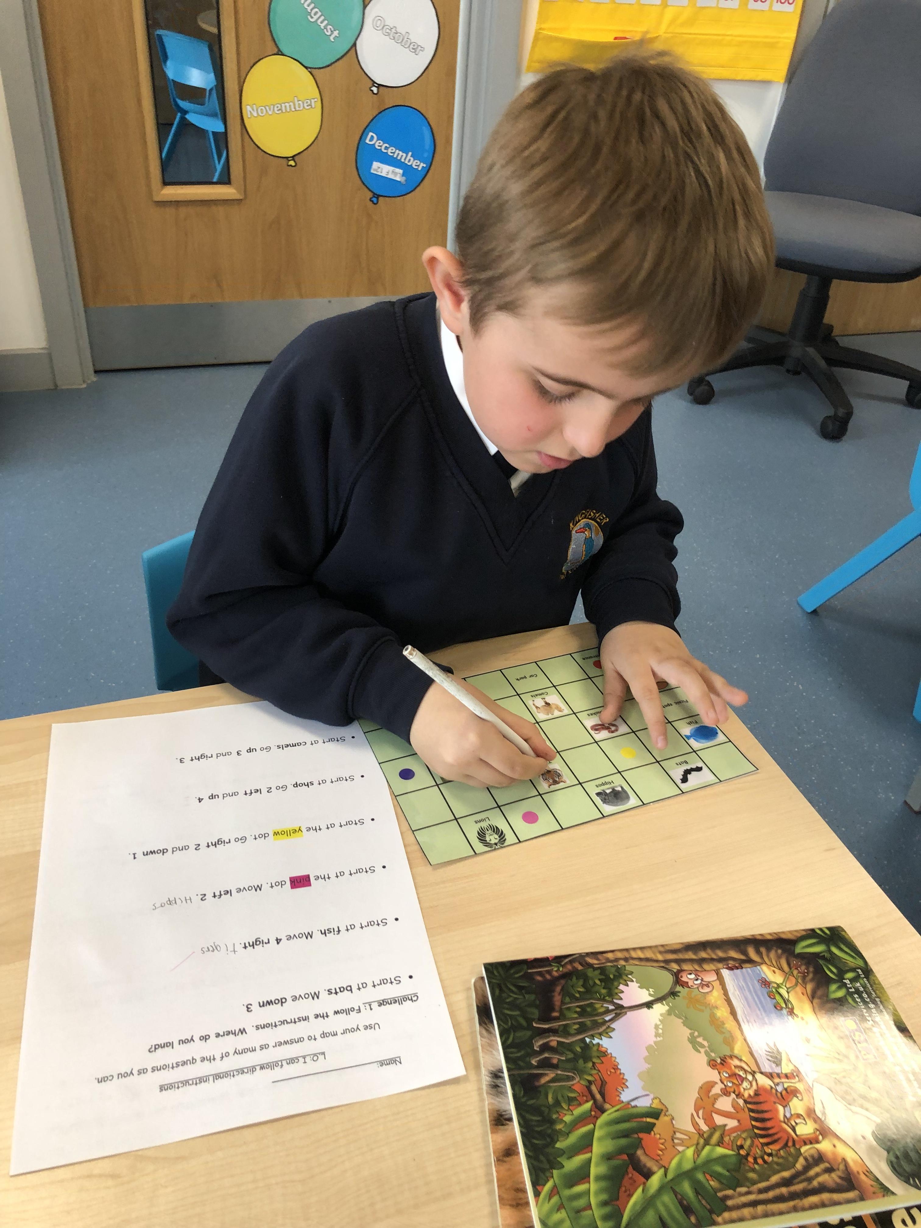 Today in Maths, the children were practising following directional instructions by navigating a map of a zoo. The children were given starting points and instructions and had to write down where the ended up after following the directions. The children managed to see lots of animals on their journeys around the zoo.