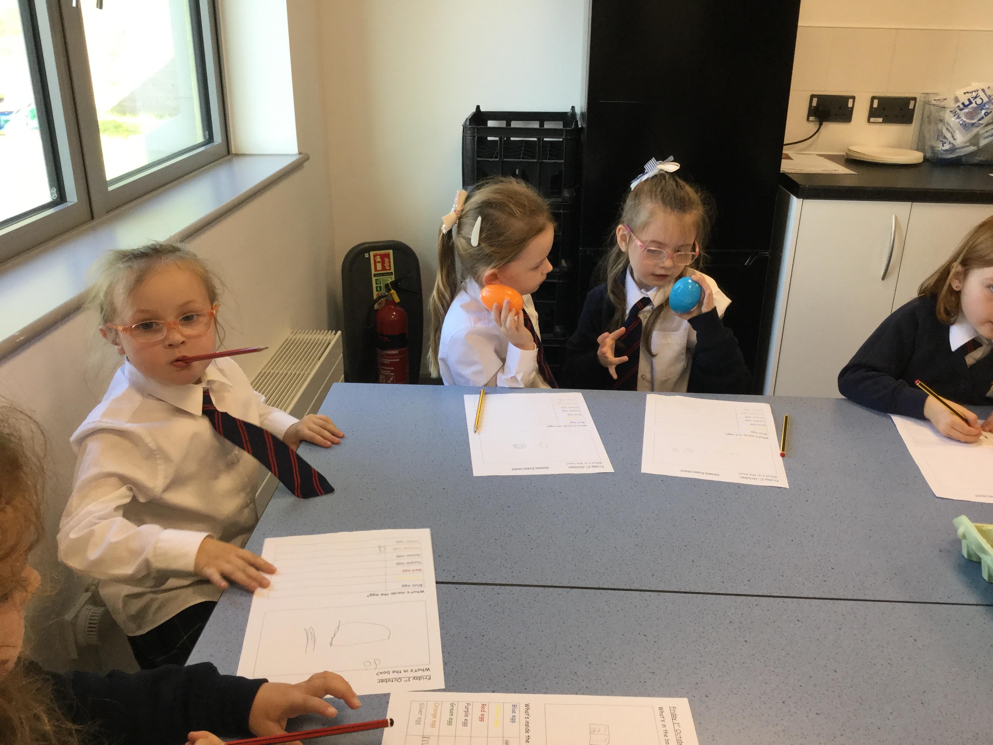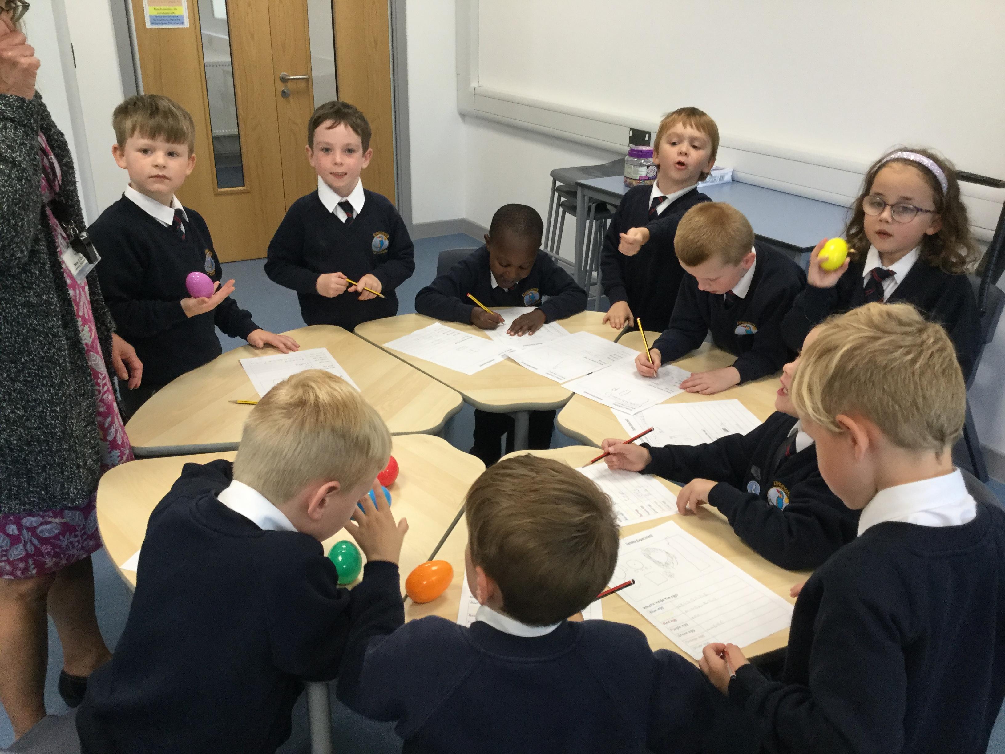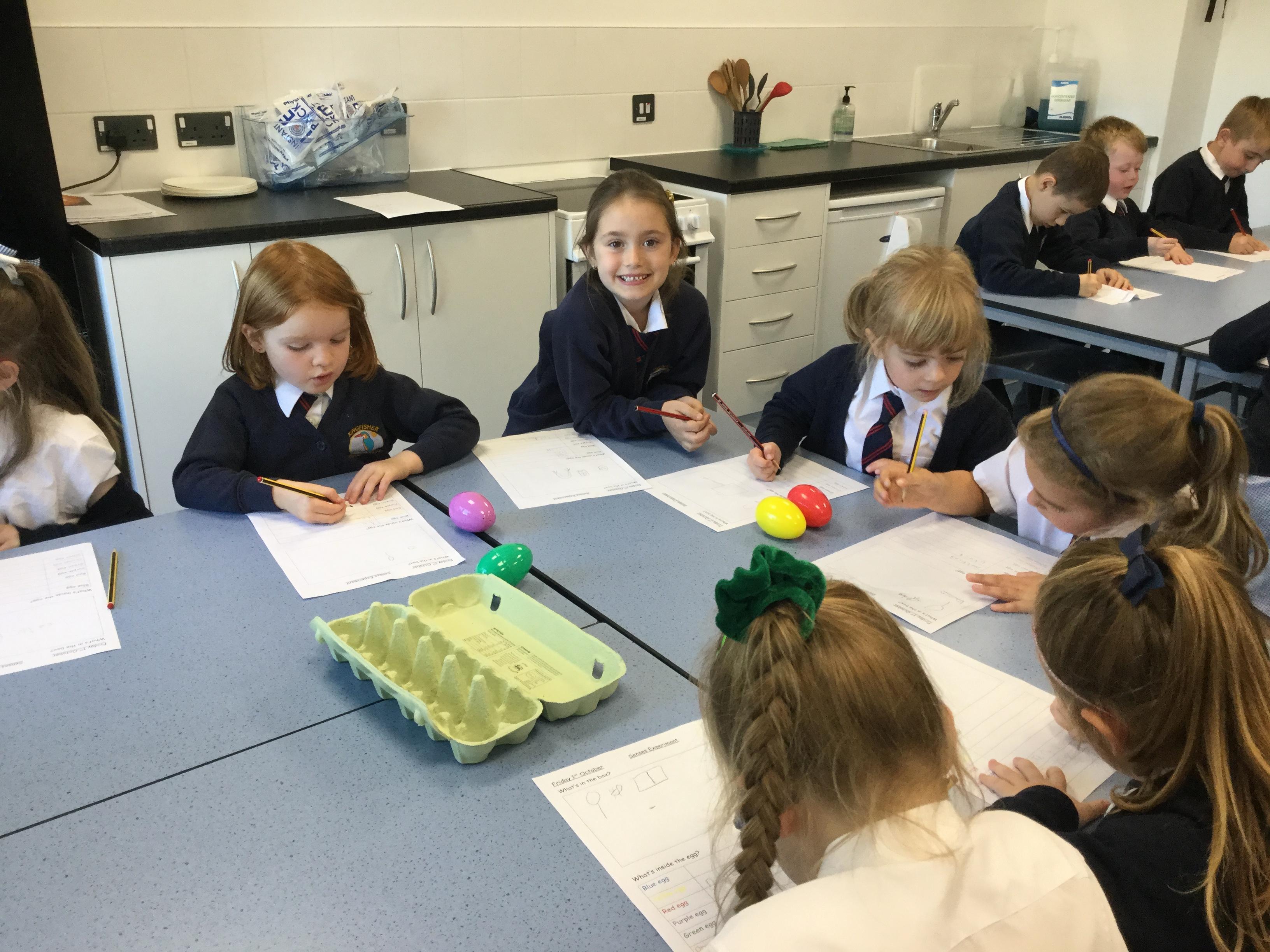 Today the children had an ‘egg’celent time conducting a test to find out which material would be best at protecting an egg from cracking when it is dropped from a height. The children had a range of materials that they could choose from and worked in pairs to blanket their eggs in their chosen material. Prior to the test, the children made their predictions. After carrying out the test, we found that cotton wool was the best material because it was the only material that stopped the egg from cracking.