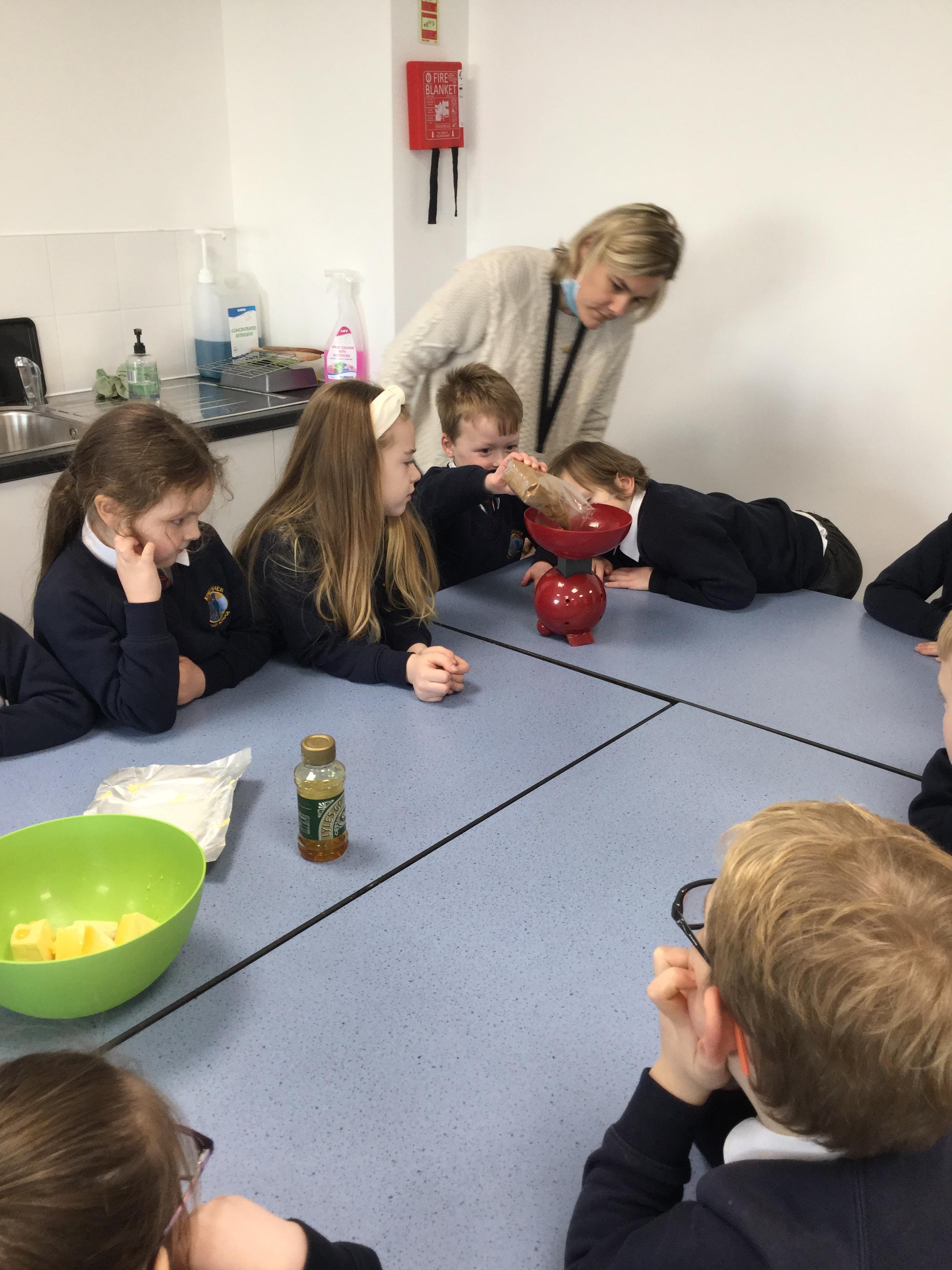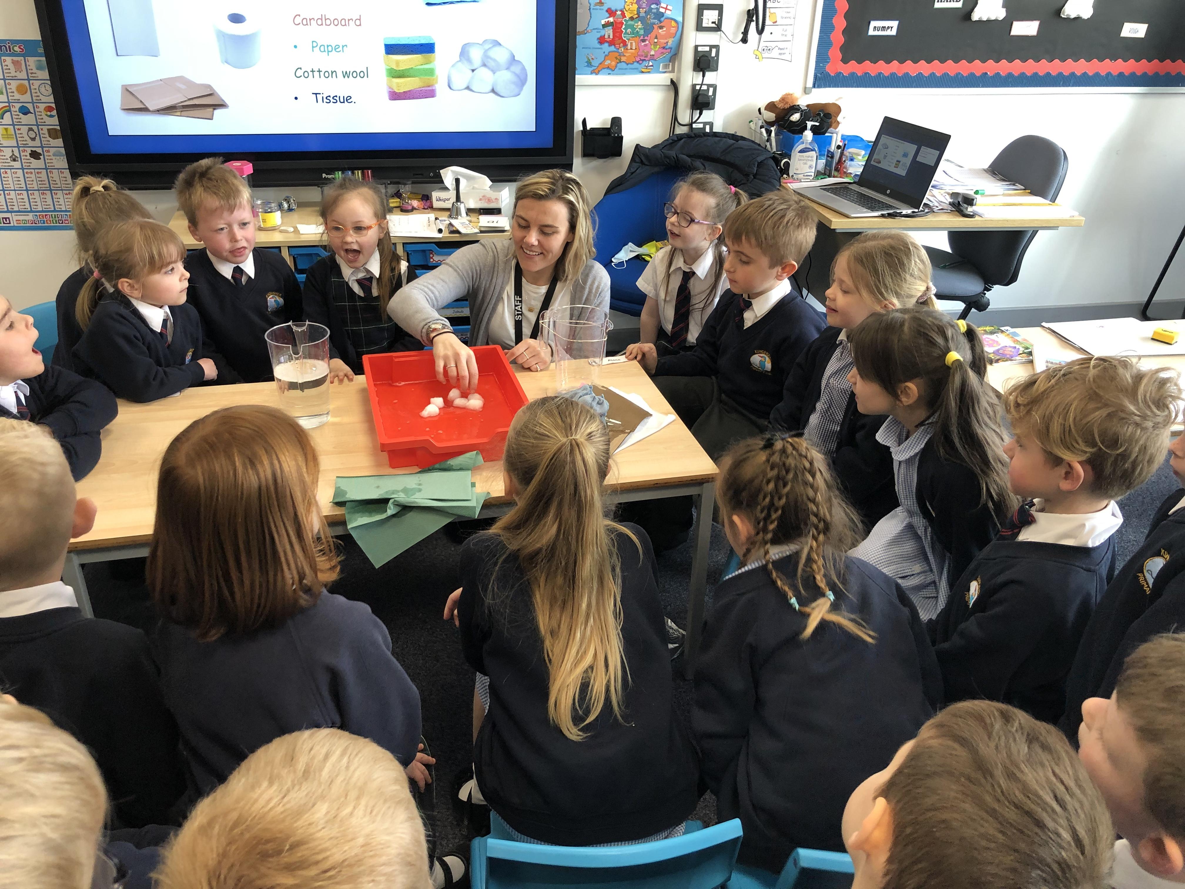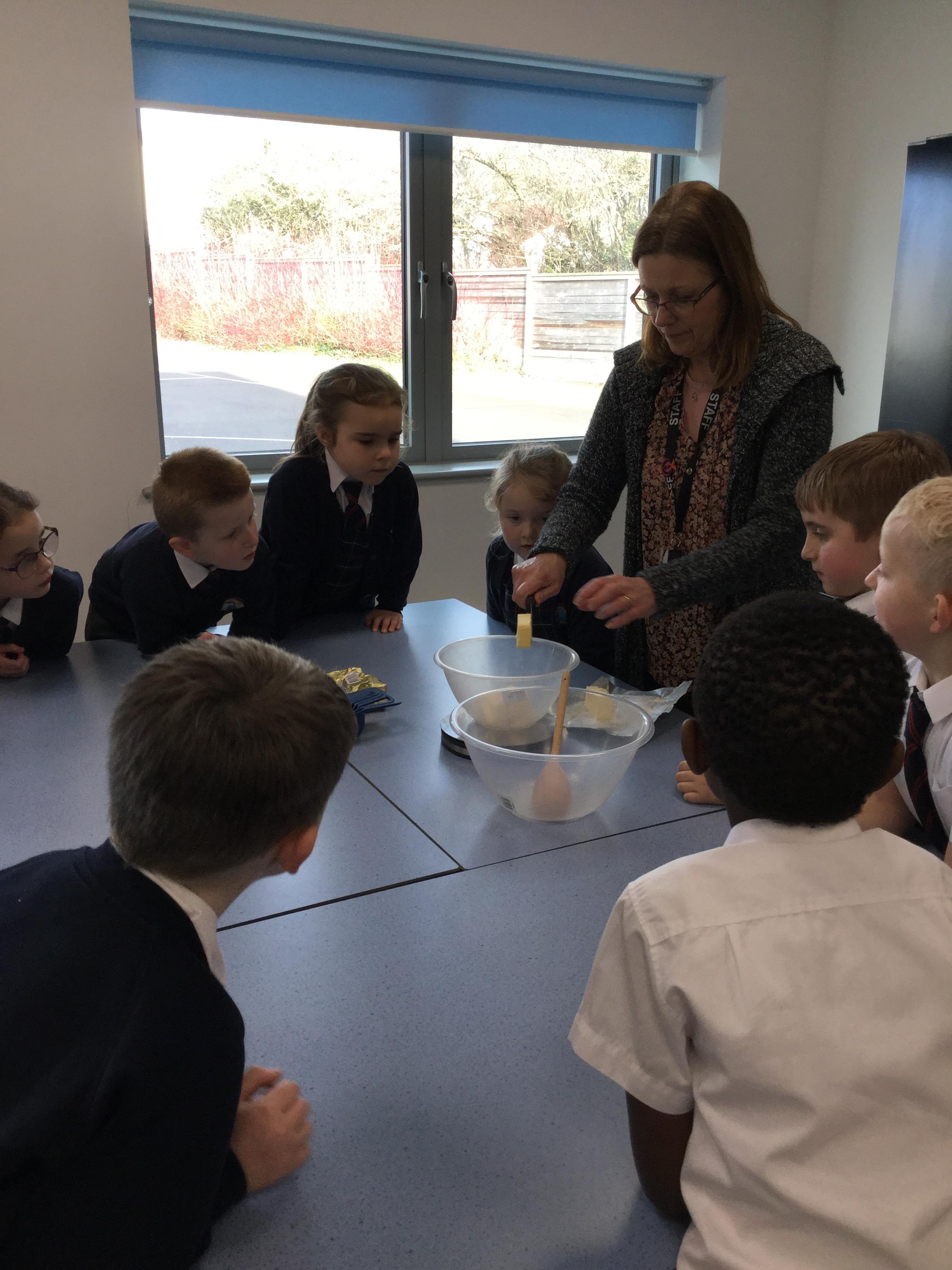 Today the children had an ‘egg’celent time conducting a test to find out which material would be best at protecting an egg from cracking when it is dropped from a height. The children had a range of materials that they could choose from and worked in pairs to blanket their eggs in their chosen material. Prior to the test, the children made their predictions. After carrying out the test, we found that cotton wool was the best material because it was the only material that stopped the egg from cracking.