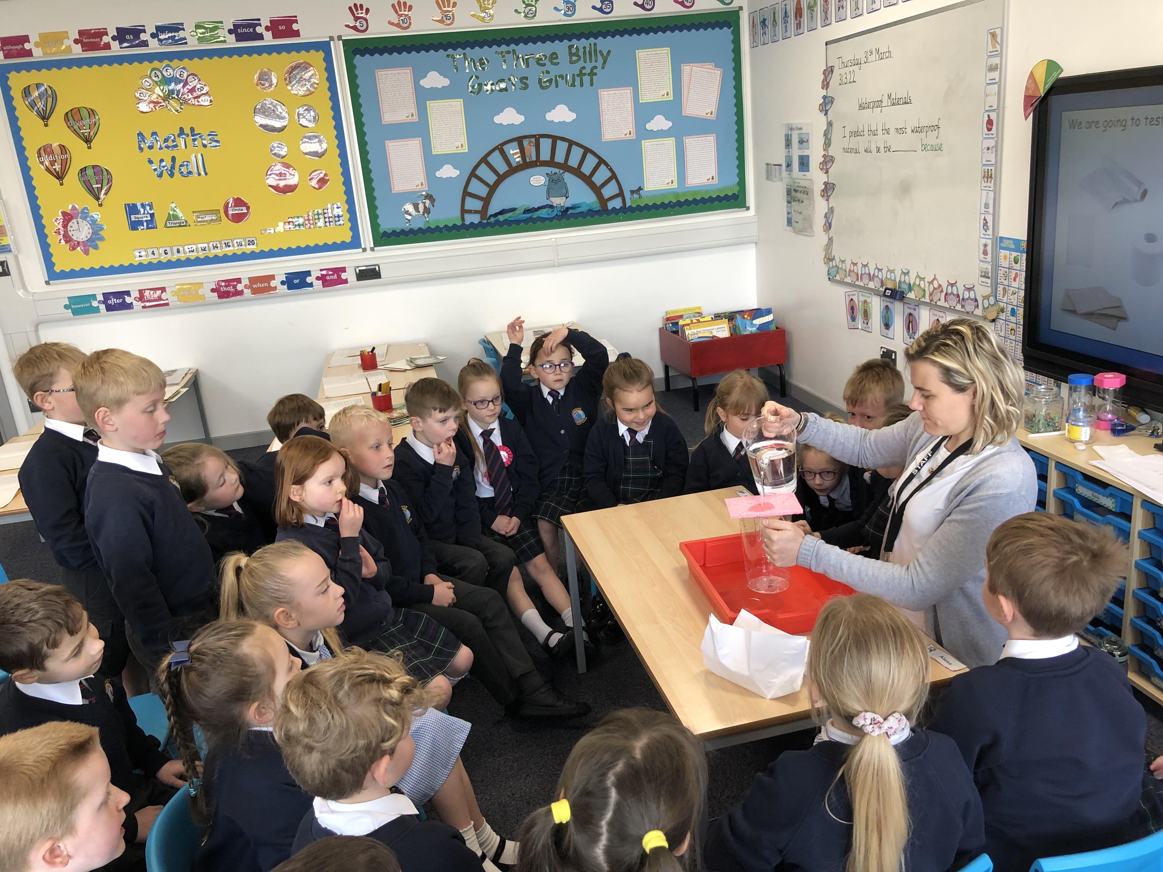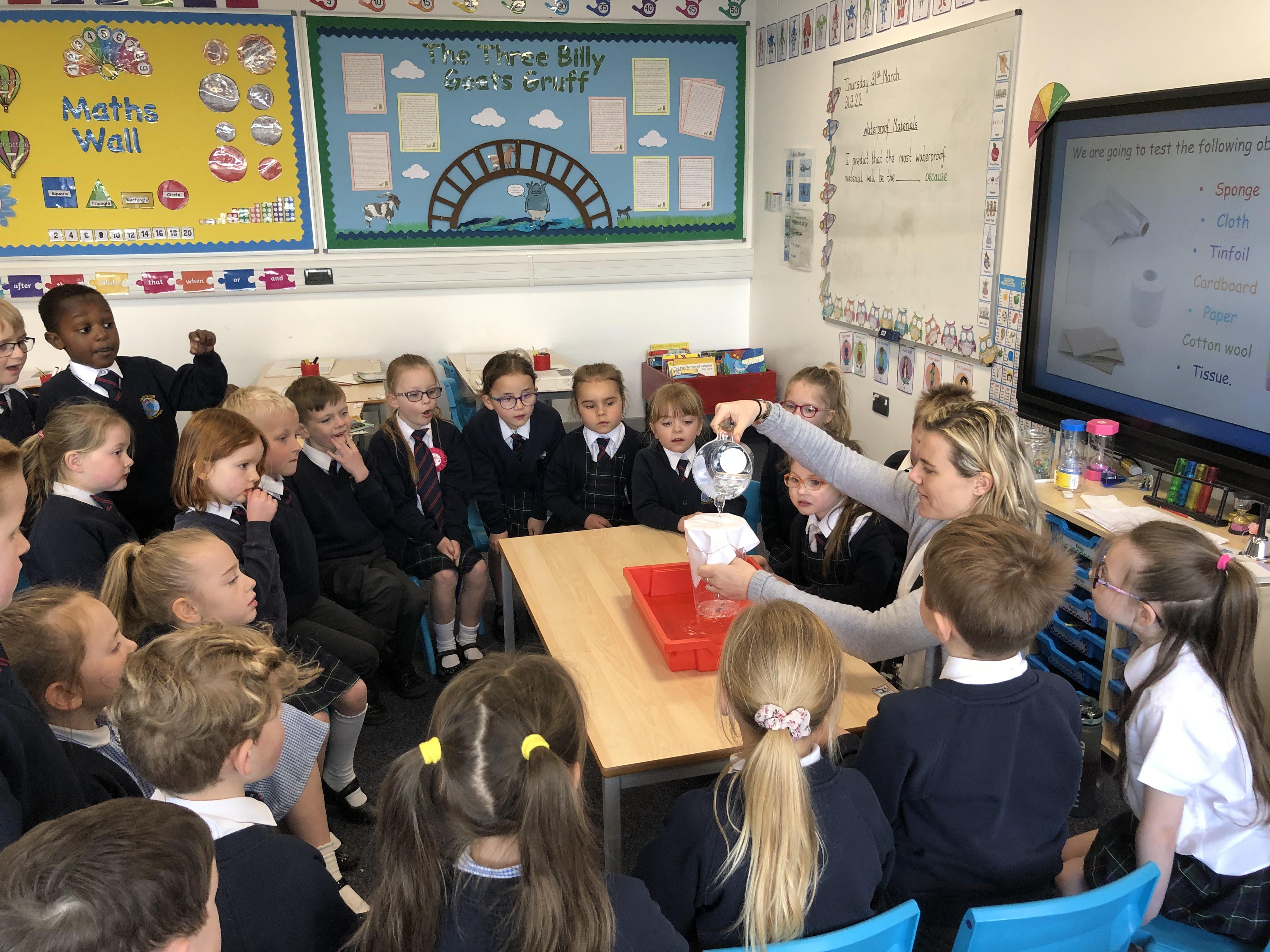 In science this term, we have been exploring materials and their properties. Today, we conducted a test to find out which material was the most waterproof and would be best to protect us from the rain. We concluded that the best material was the tinfoil because it didn’t let any water through and it did no break.