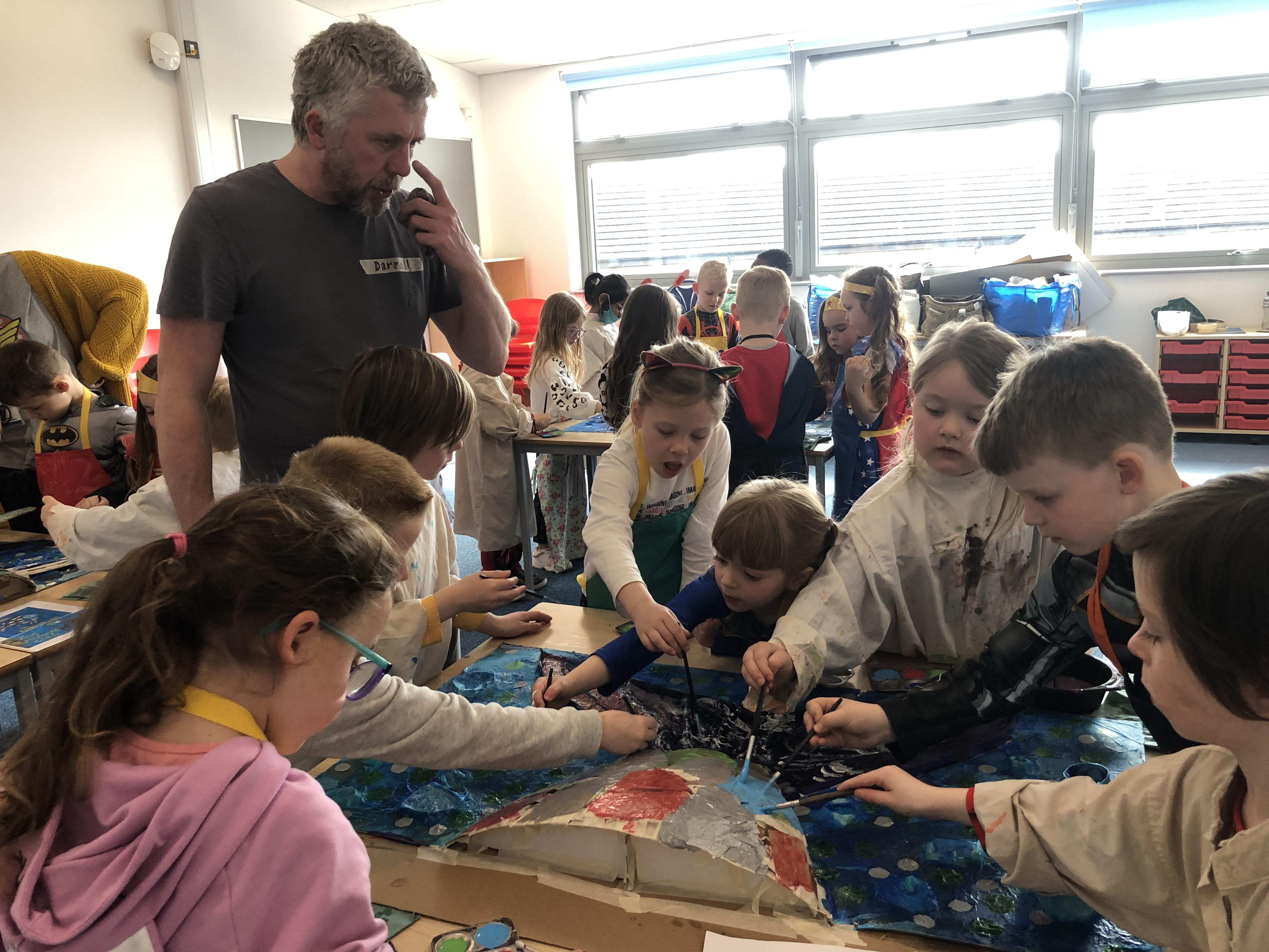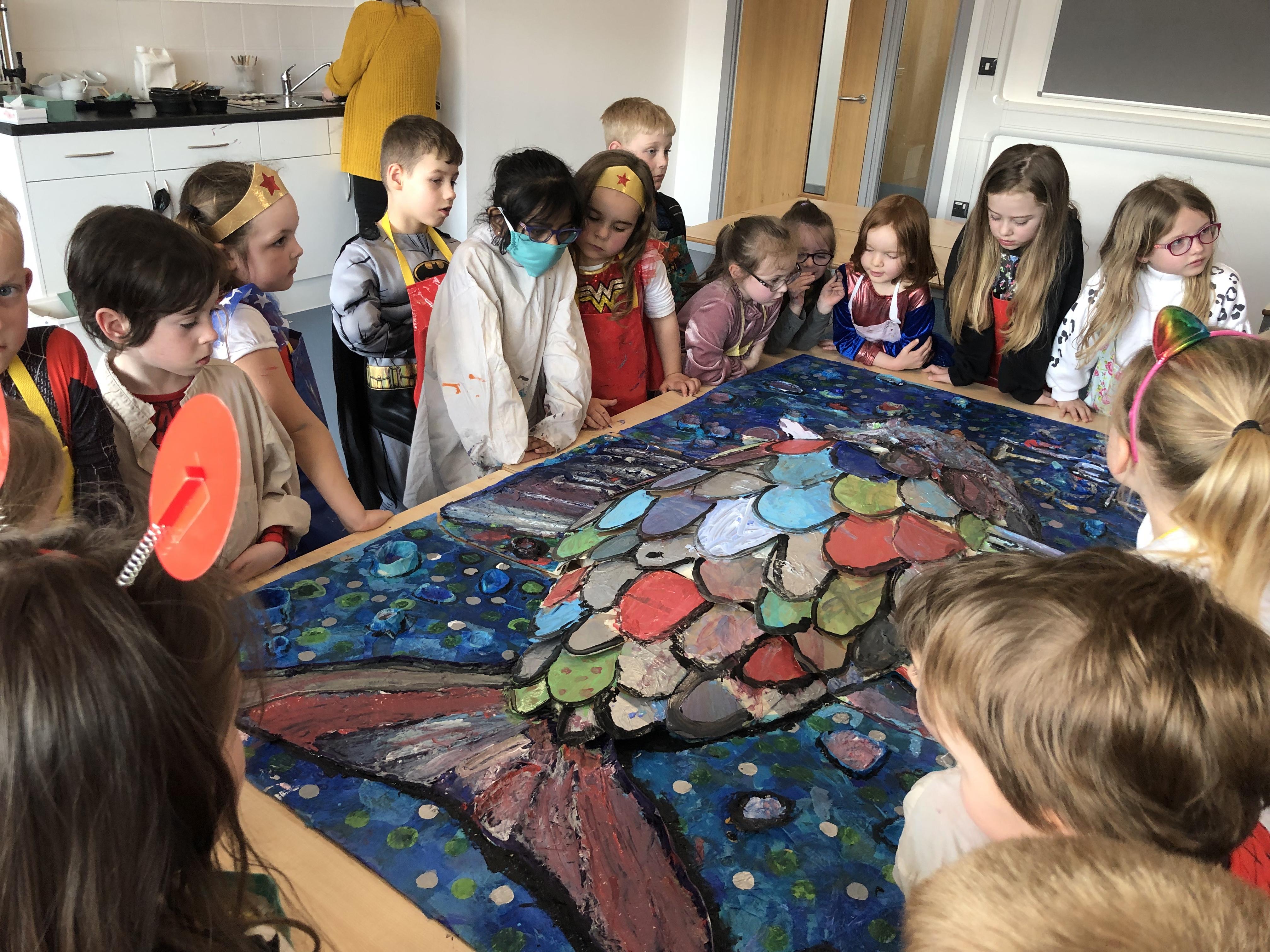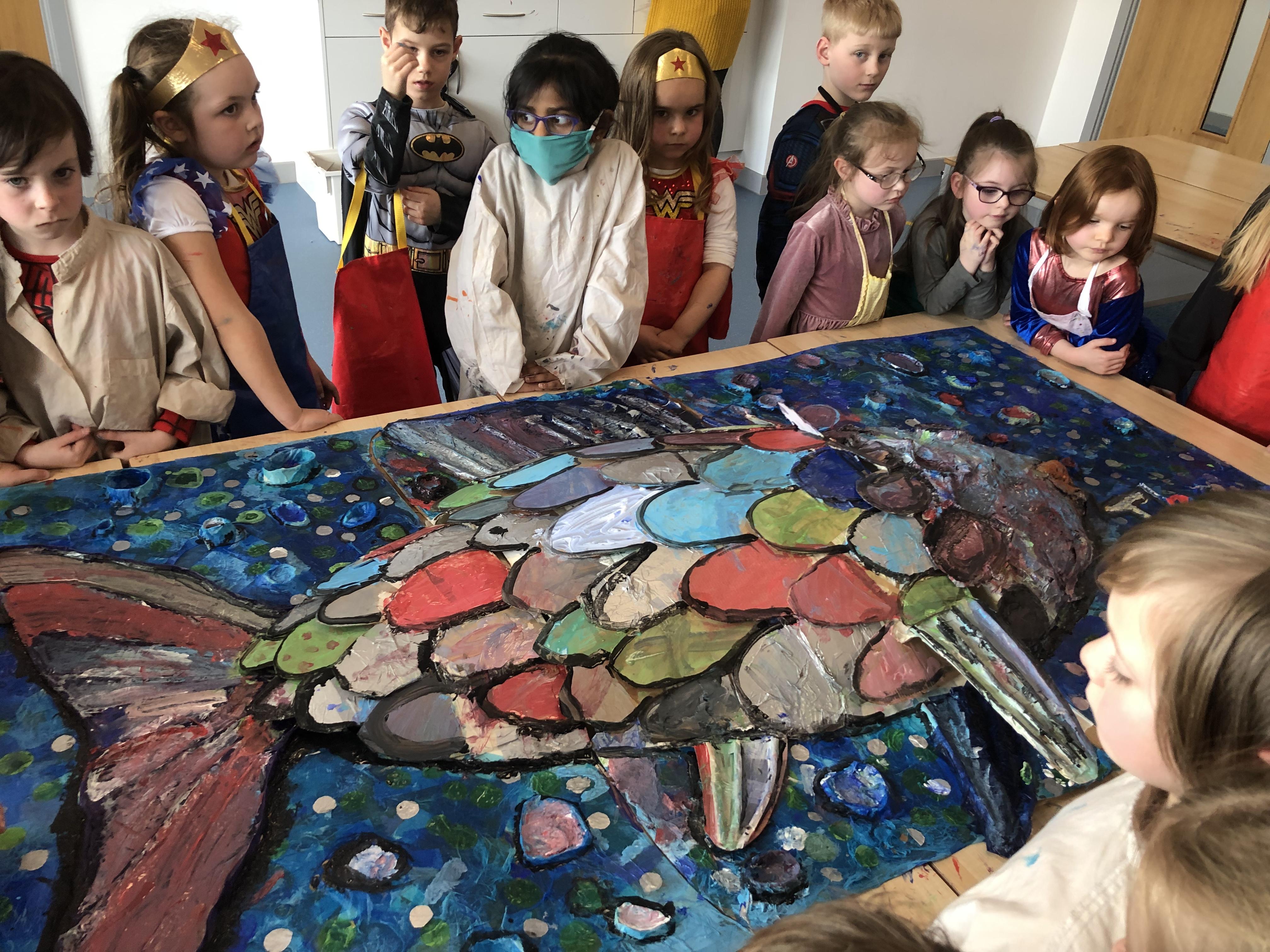 Today, the children were super lucky to be able to spend the entire day with Darrel making a 3D Rainbow Fish. They all absolutely loved it and it was great to see them working together so well as a team. All their hard work and patience certainly paid off as you can see with the end result.