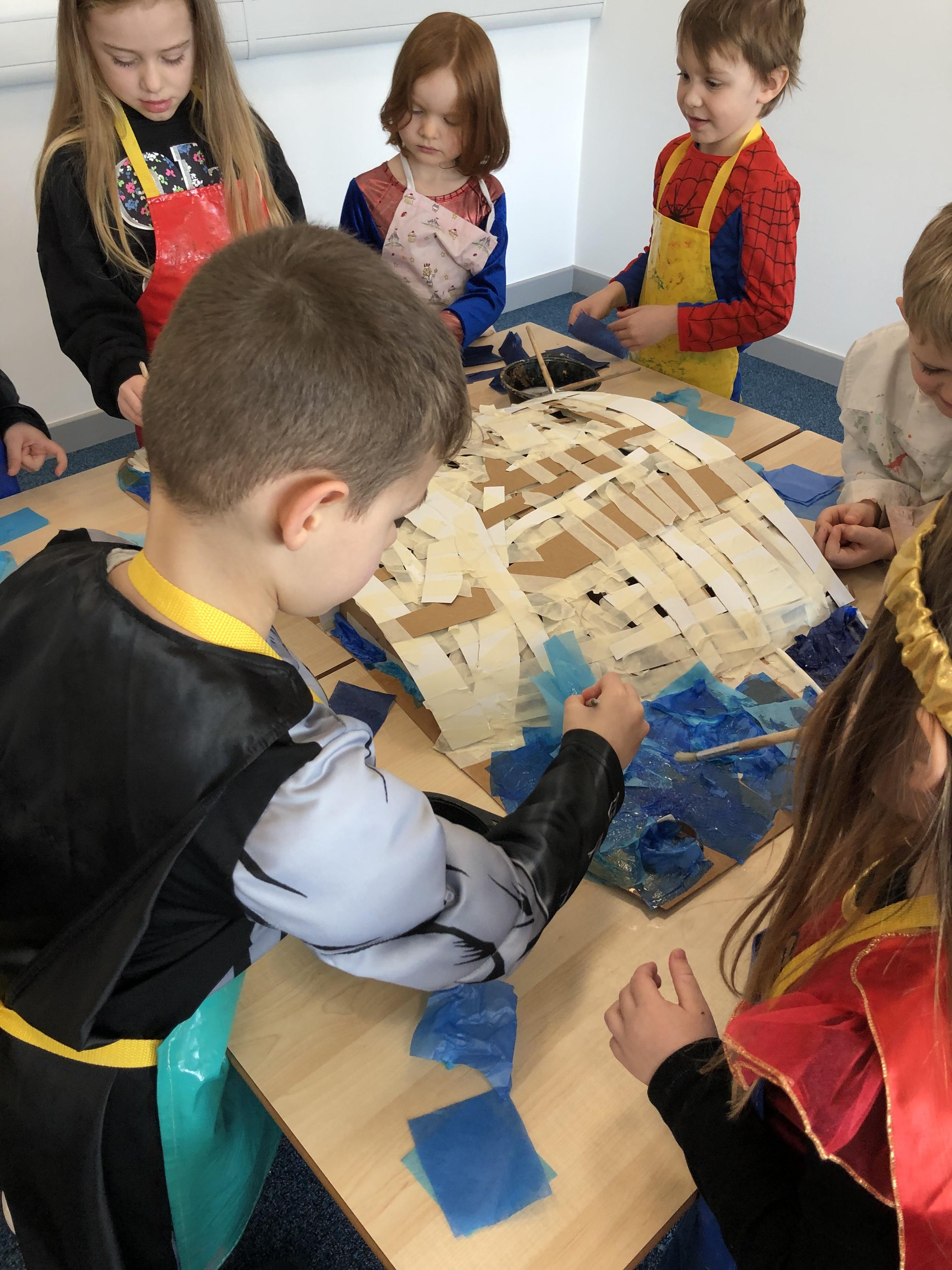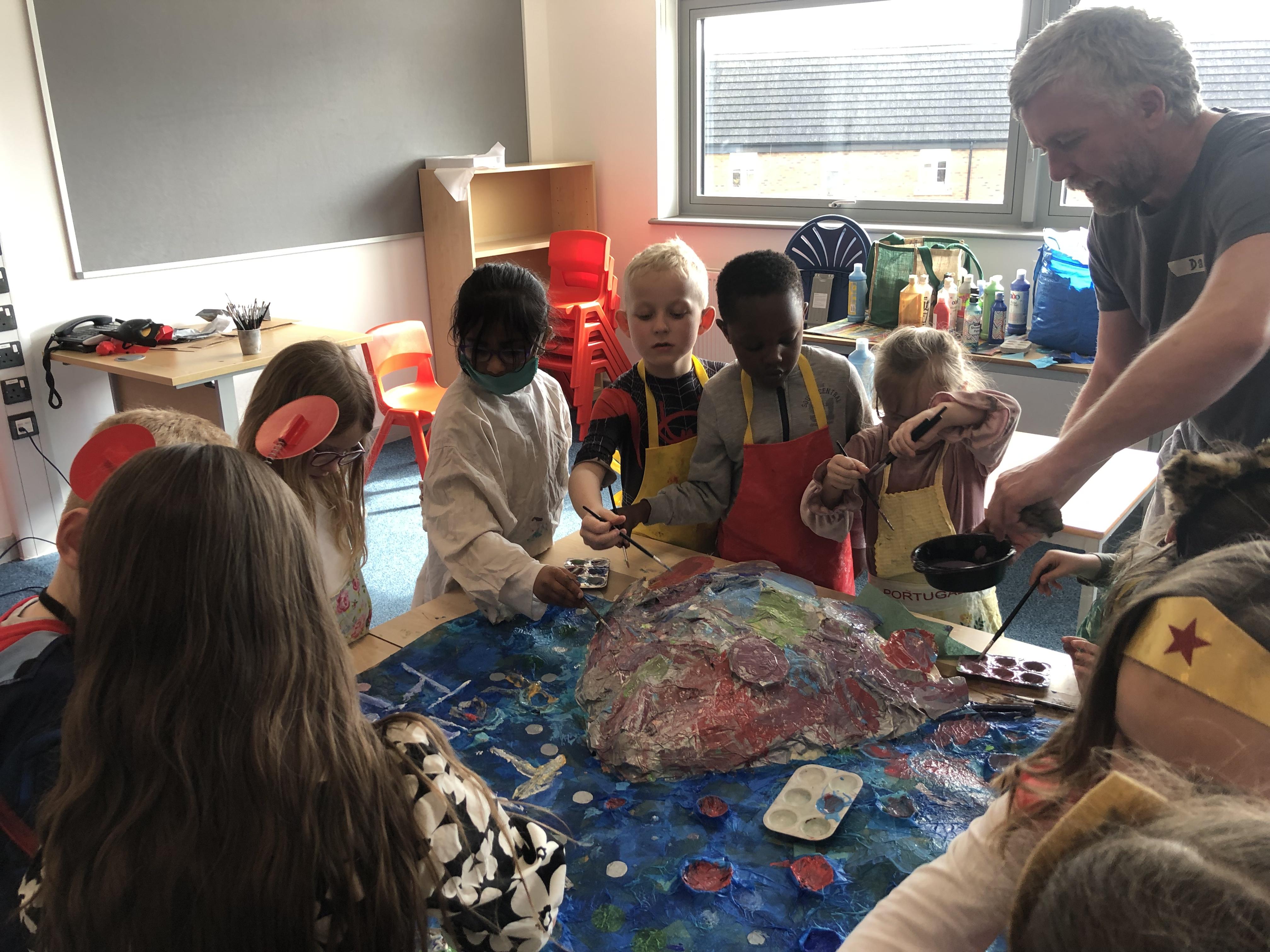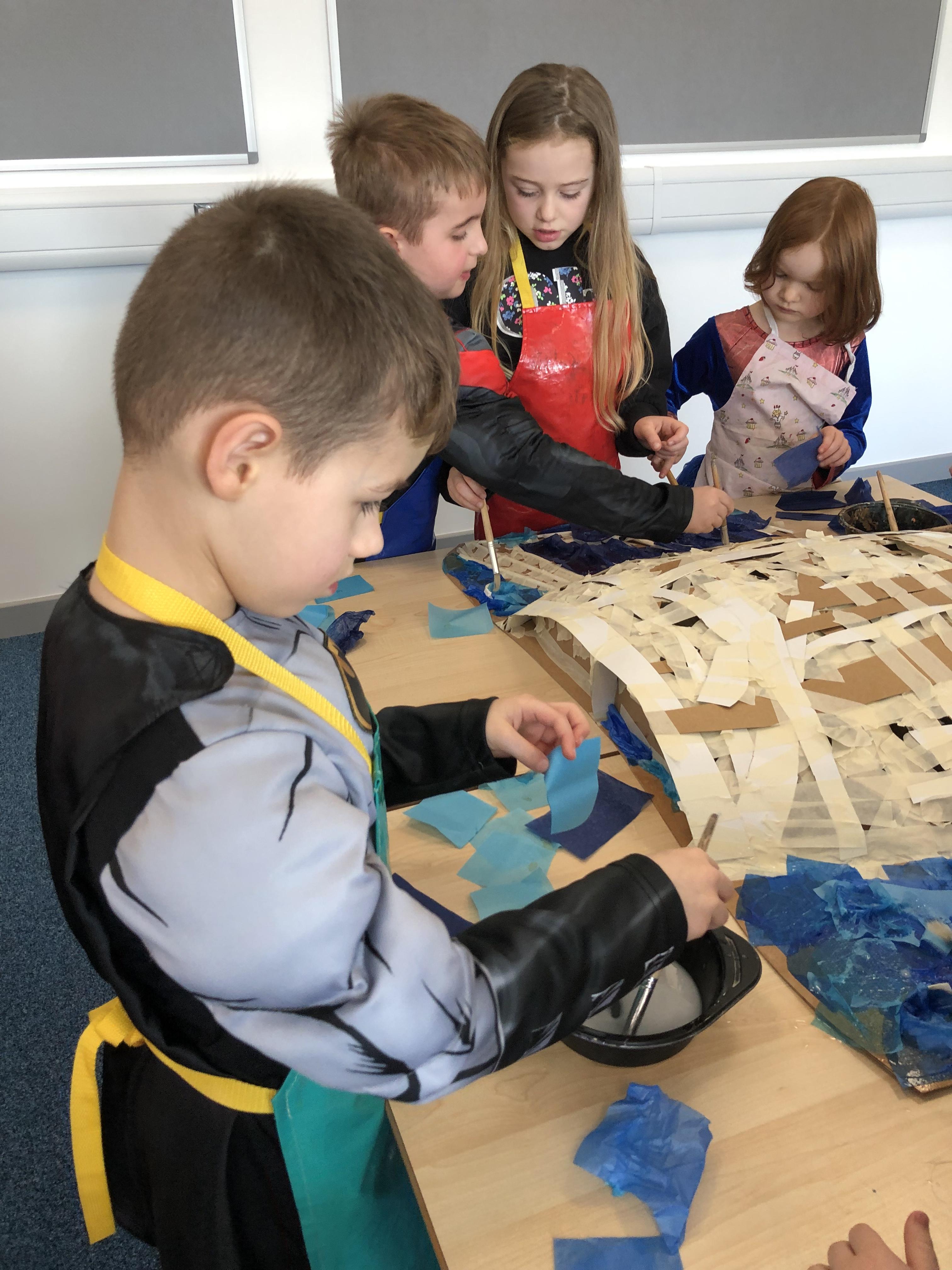 Today, the children were super lucky to be able to spend the entire day with Darrel making a 3D Rainbow Fish. They all absolutely loved it and it was great to see them working together so well as a team. All their hard work and patience certainly paid off as you can see with the end result.