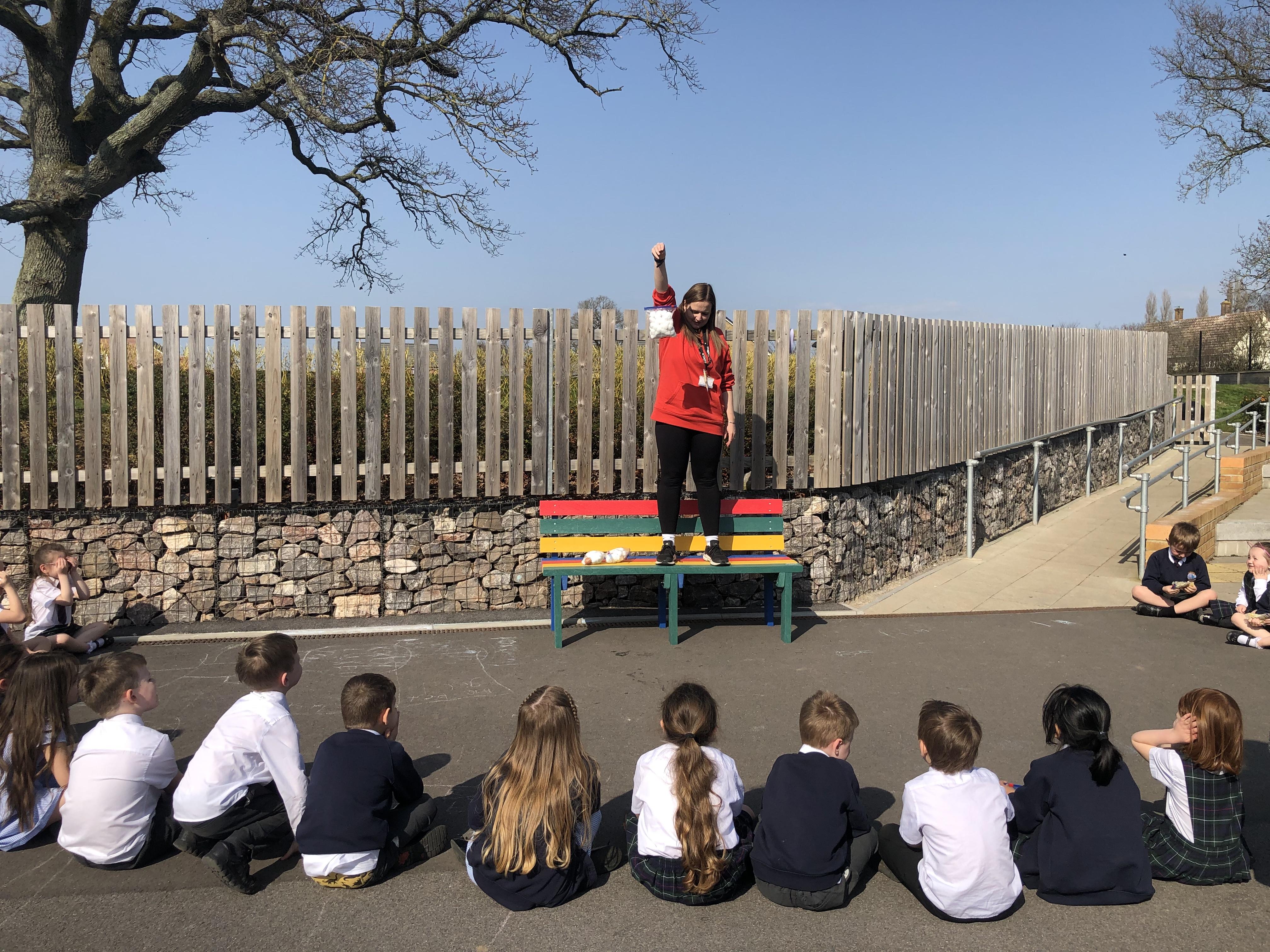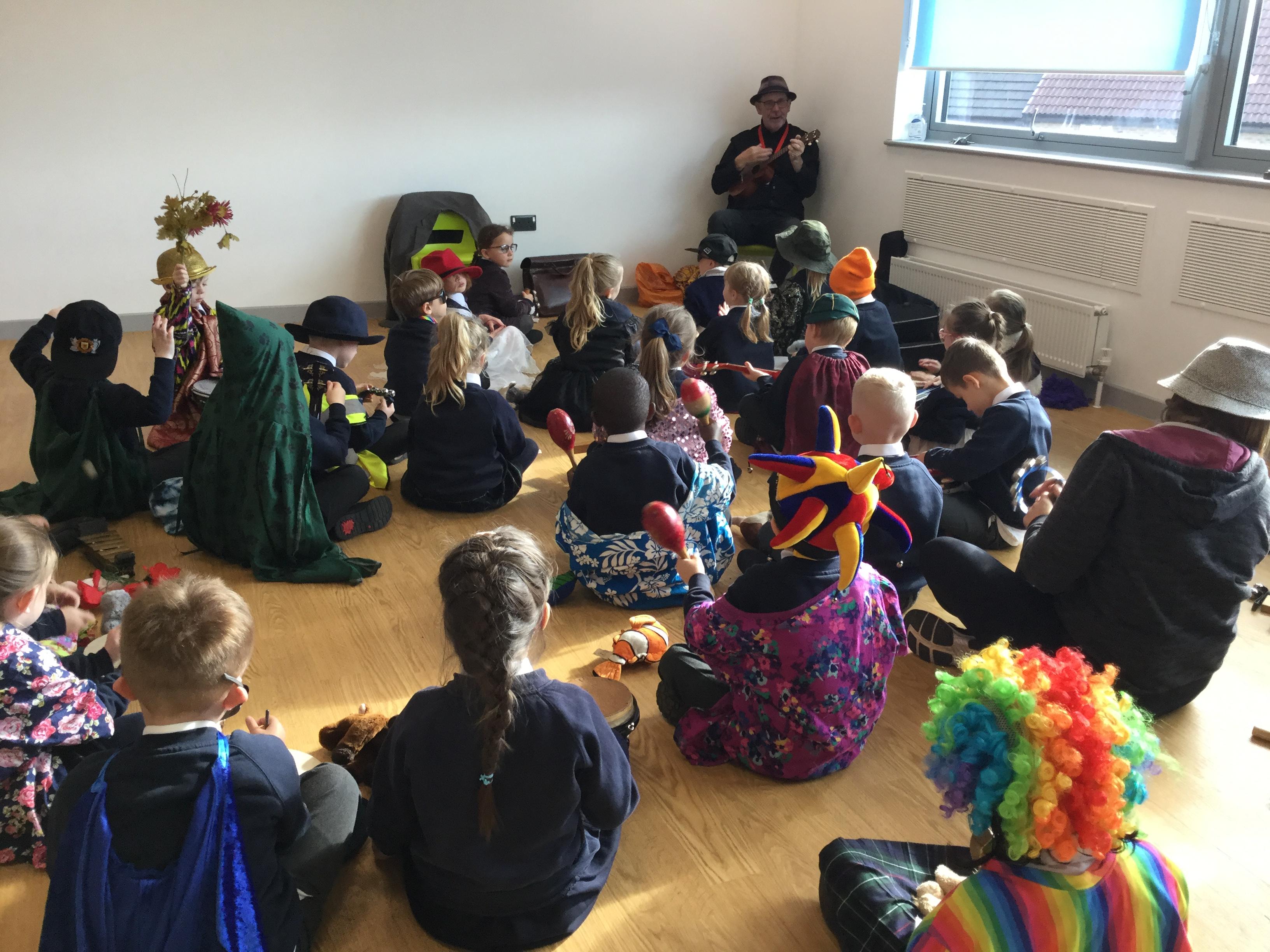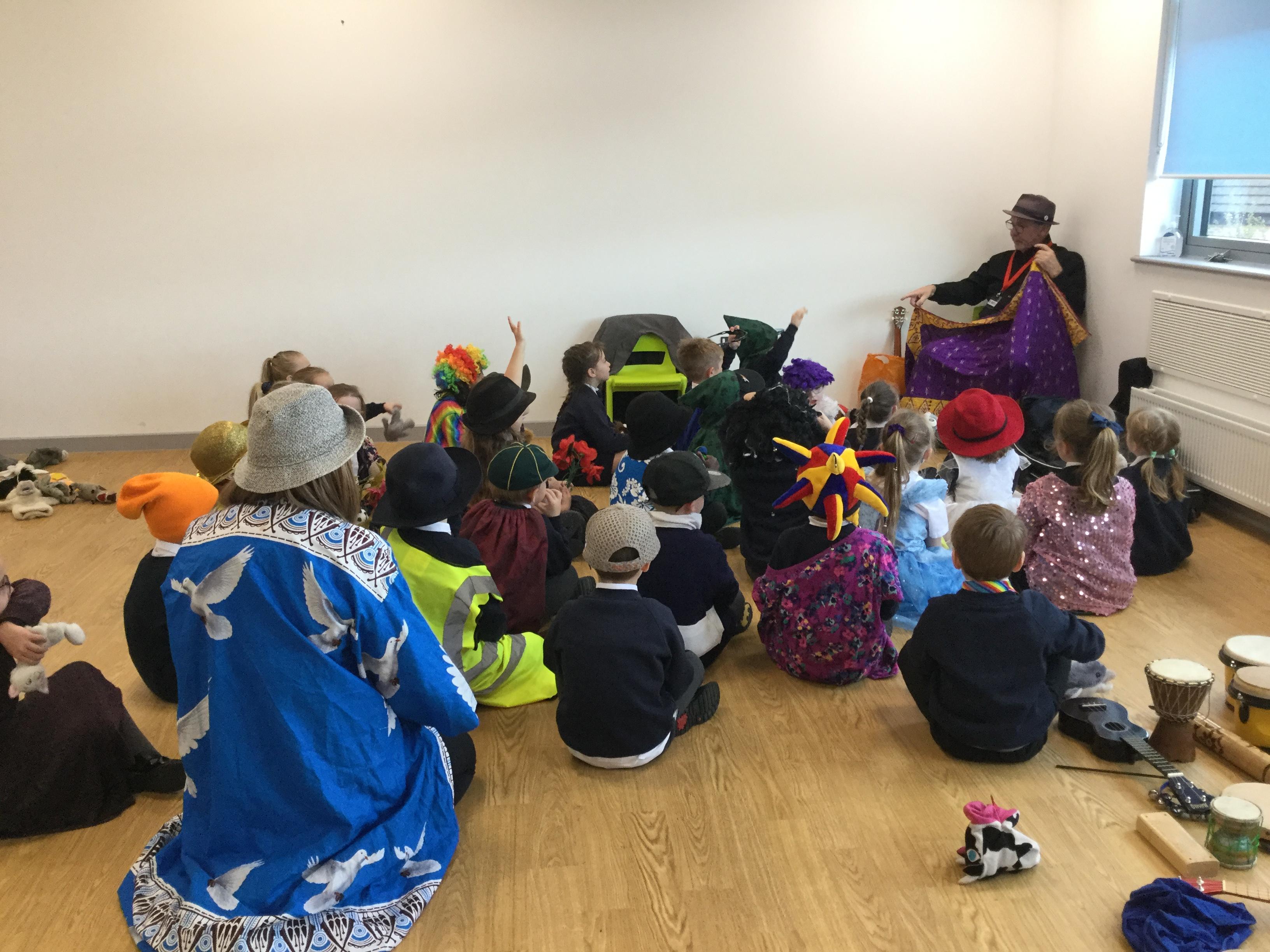 We were very lucky to have a visit from Pete the Poet today. The children thoroughly enjoyed getting creative and exploring poetry through music, costumes and props (even the staff dressed up!)