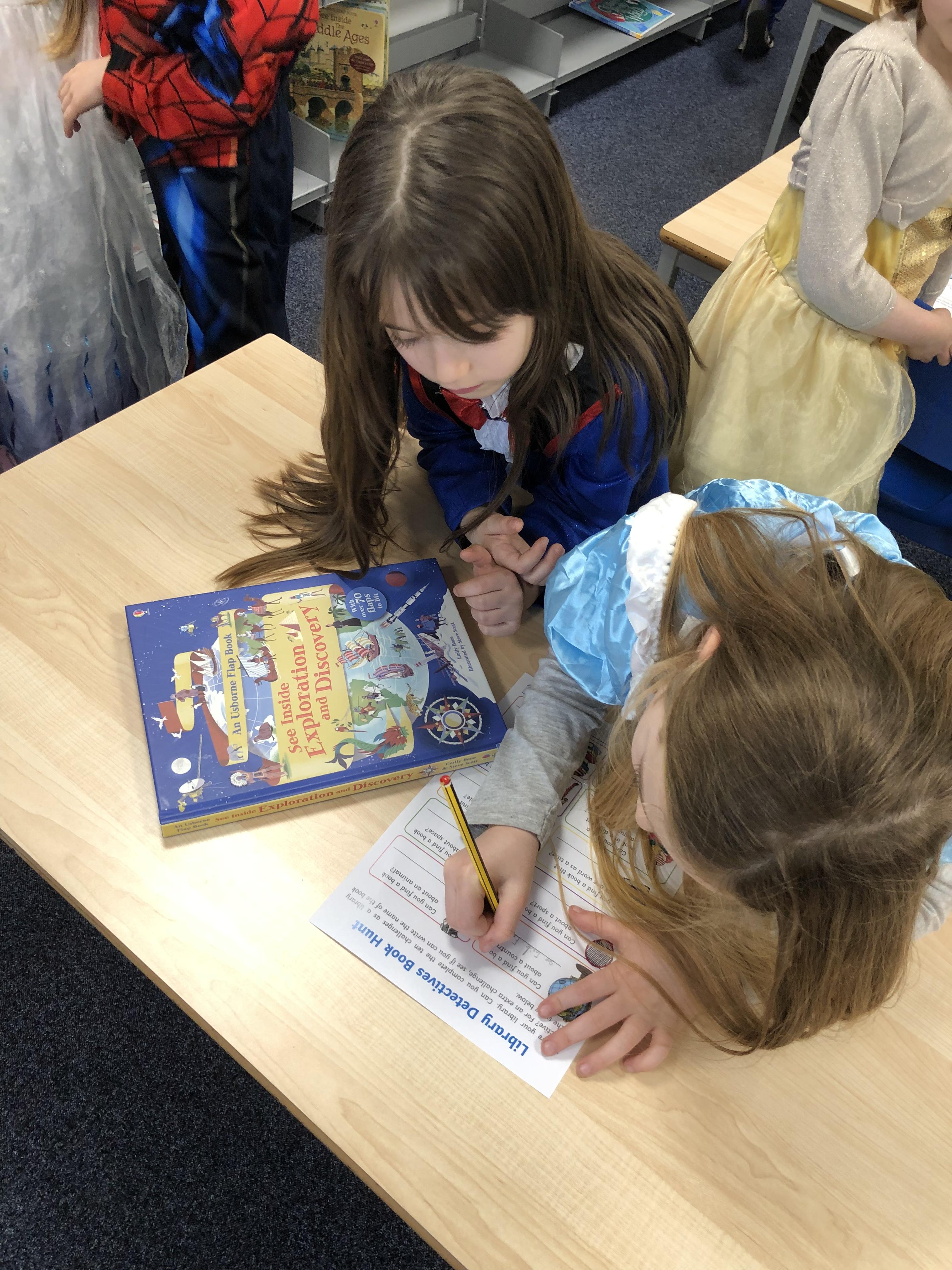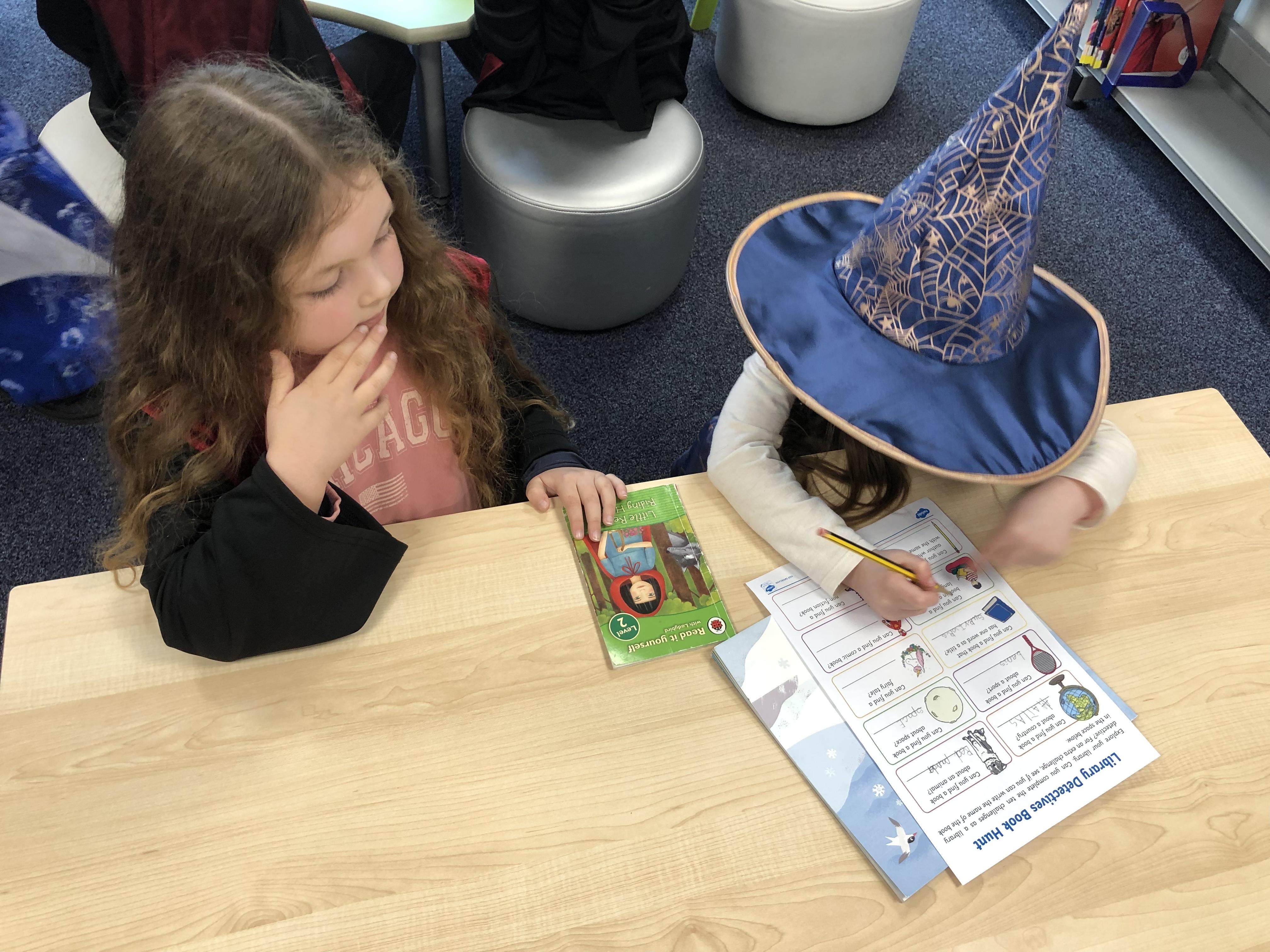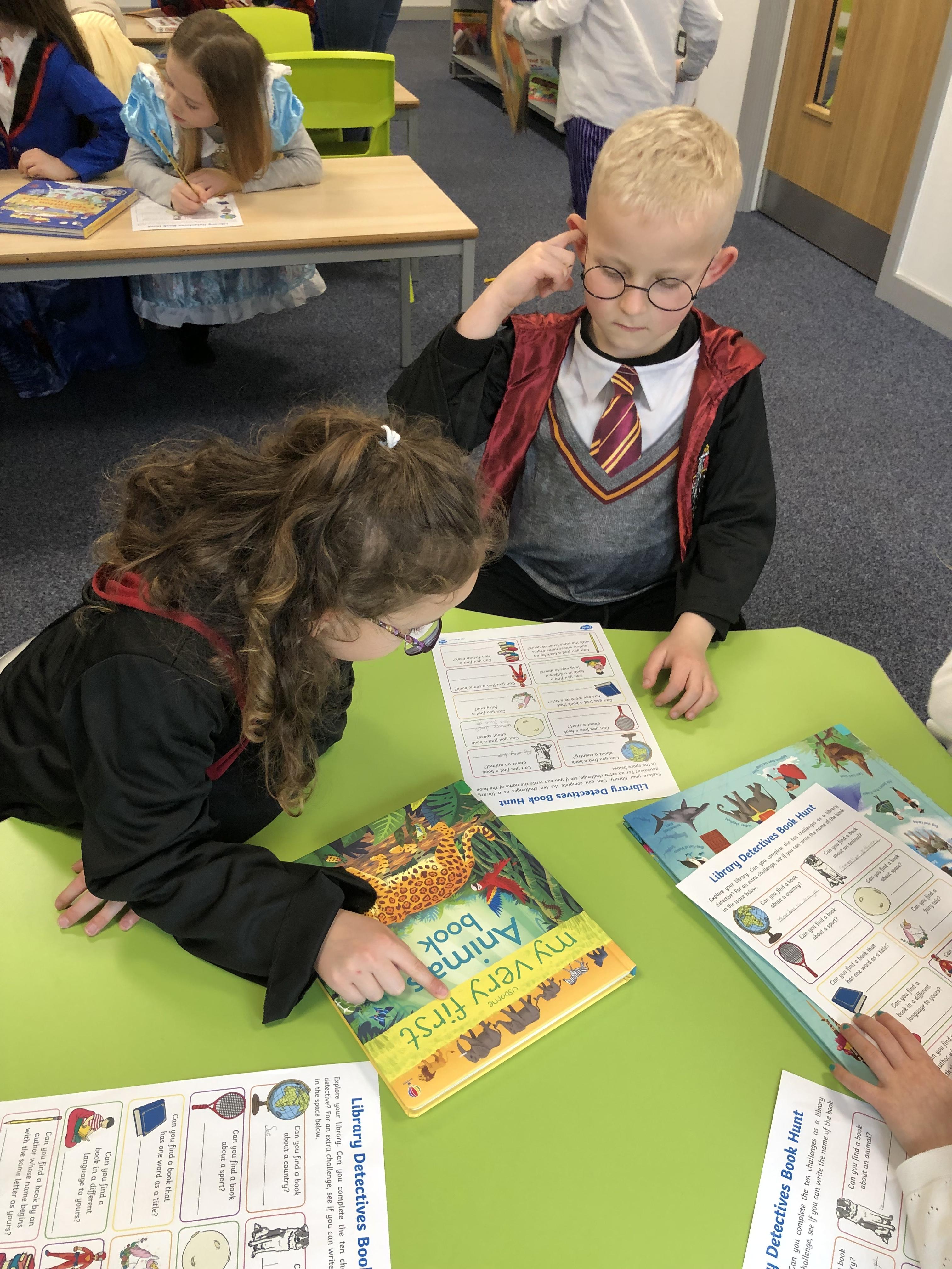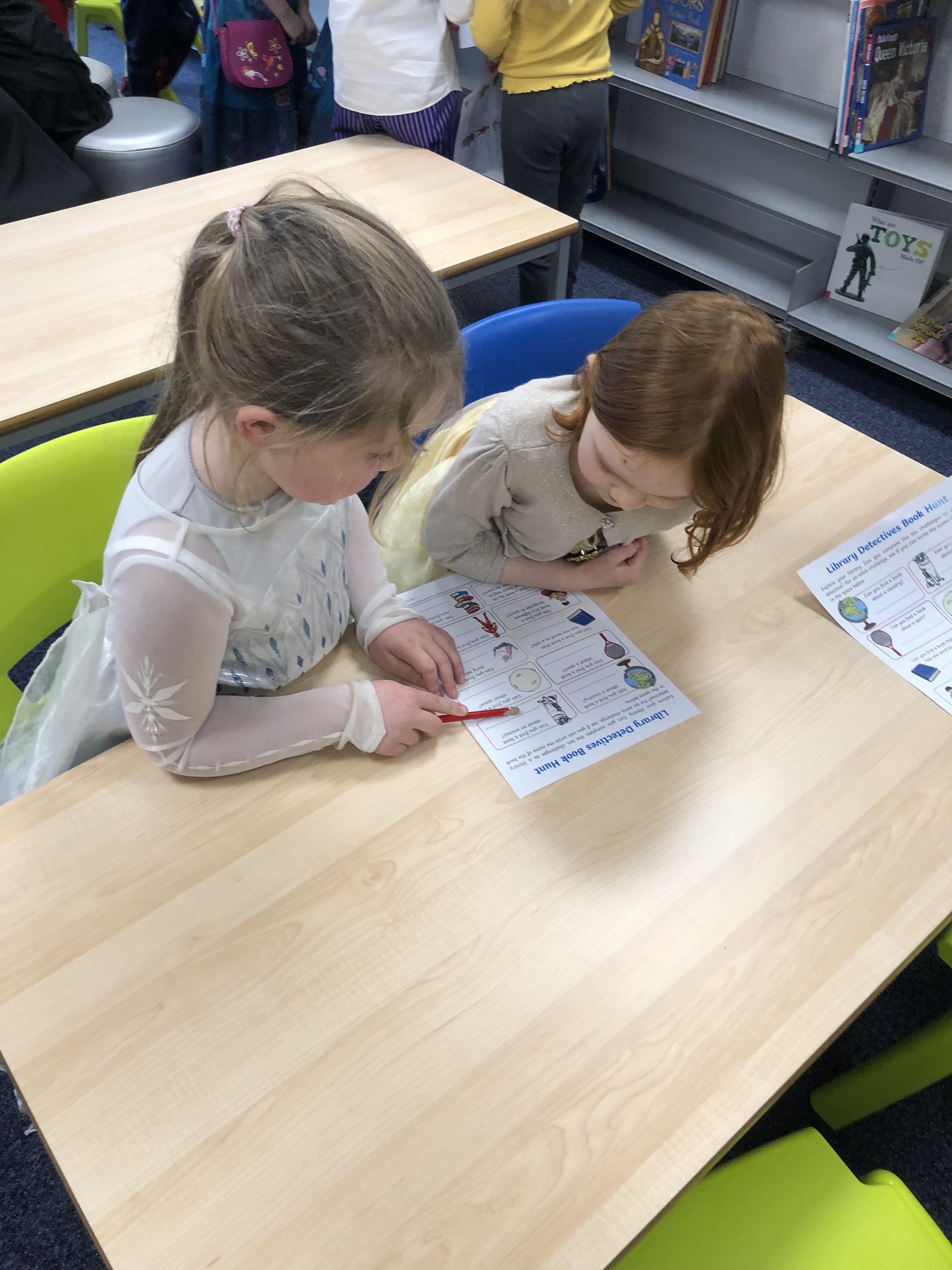 As part of World Book Day, the children embarked on a book scavenger hunt. We went to the school library where the children worked in pairs to find the various books on their lists.