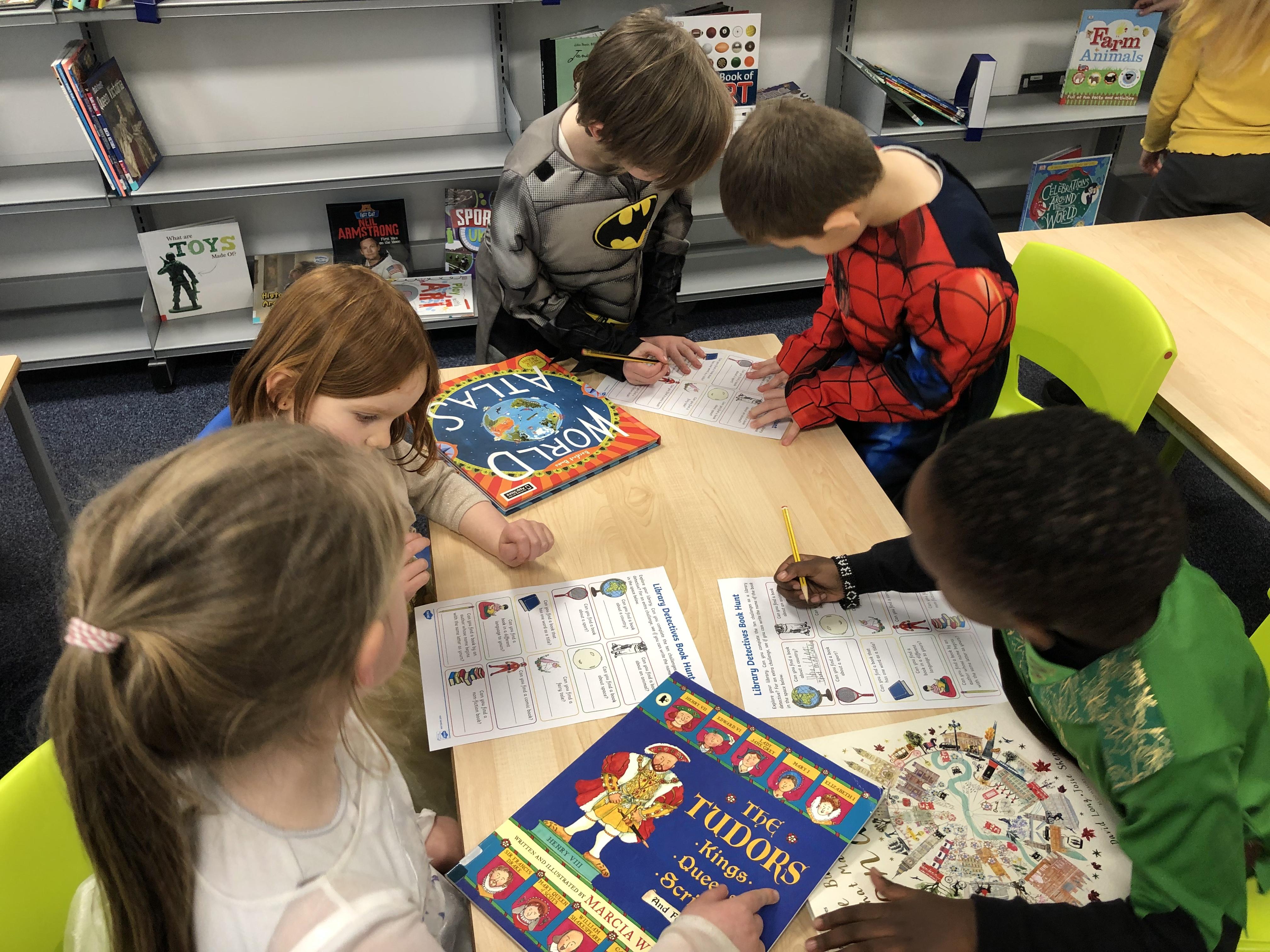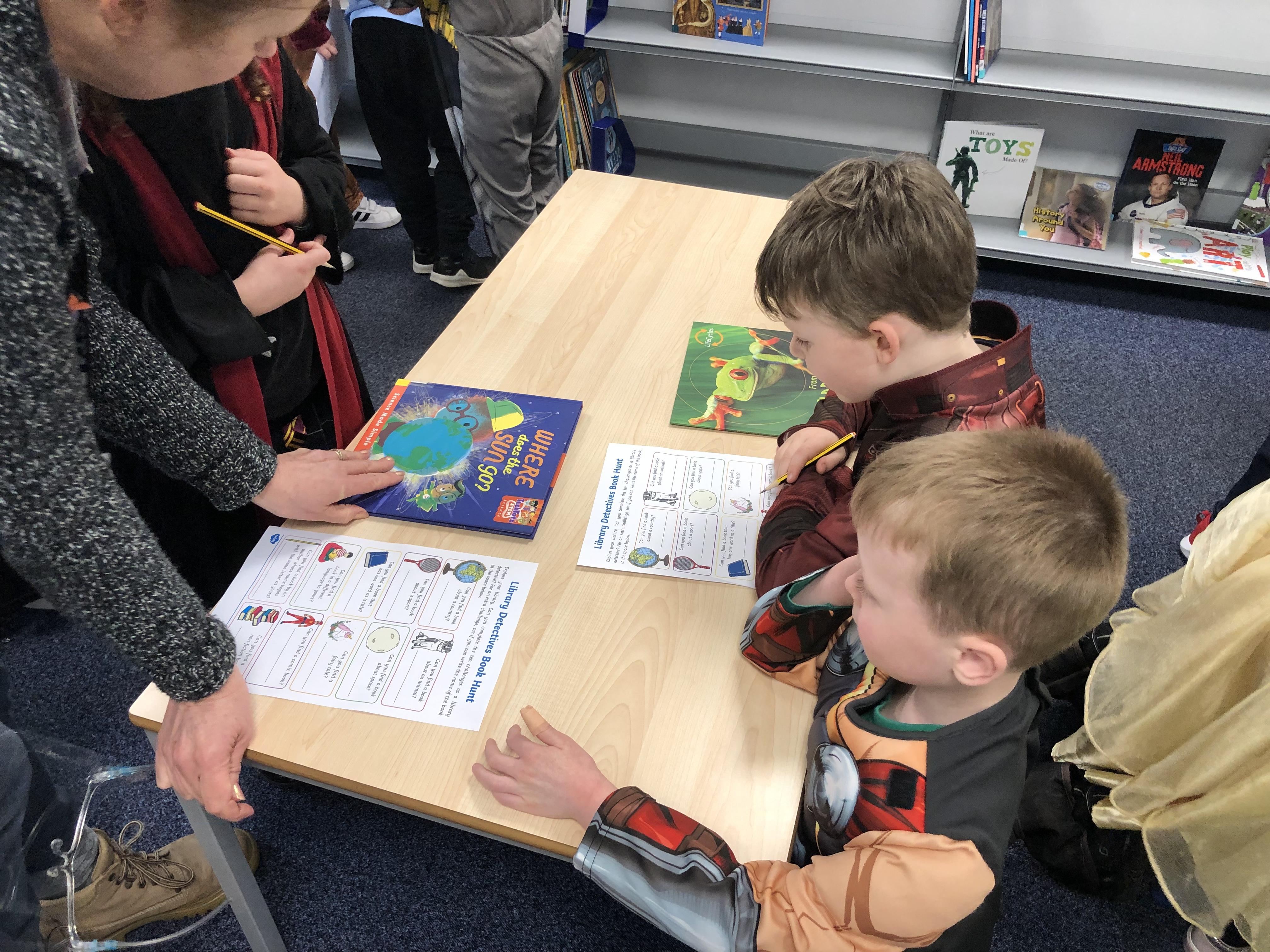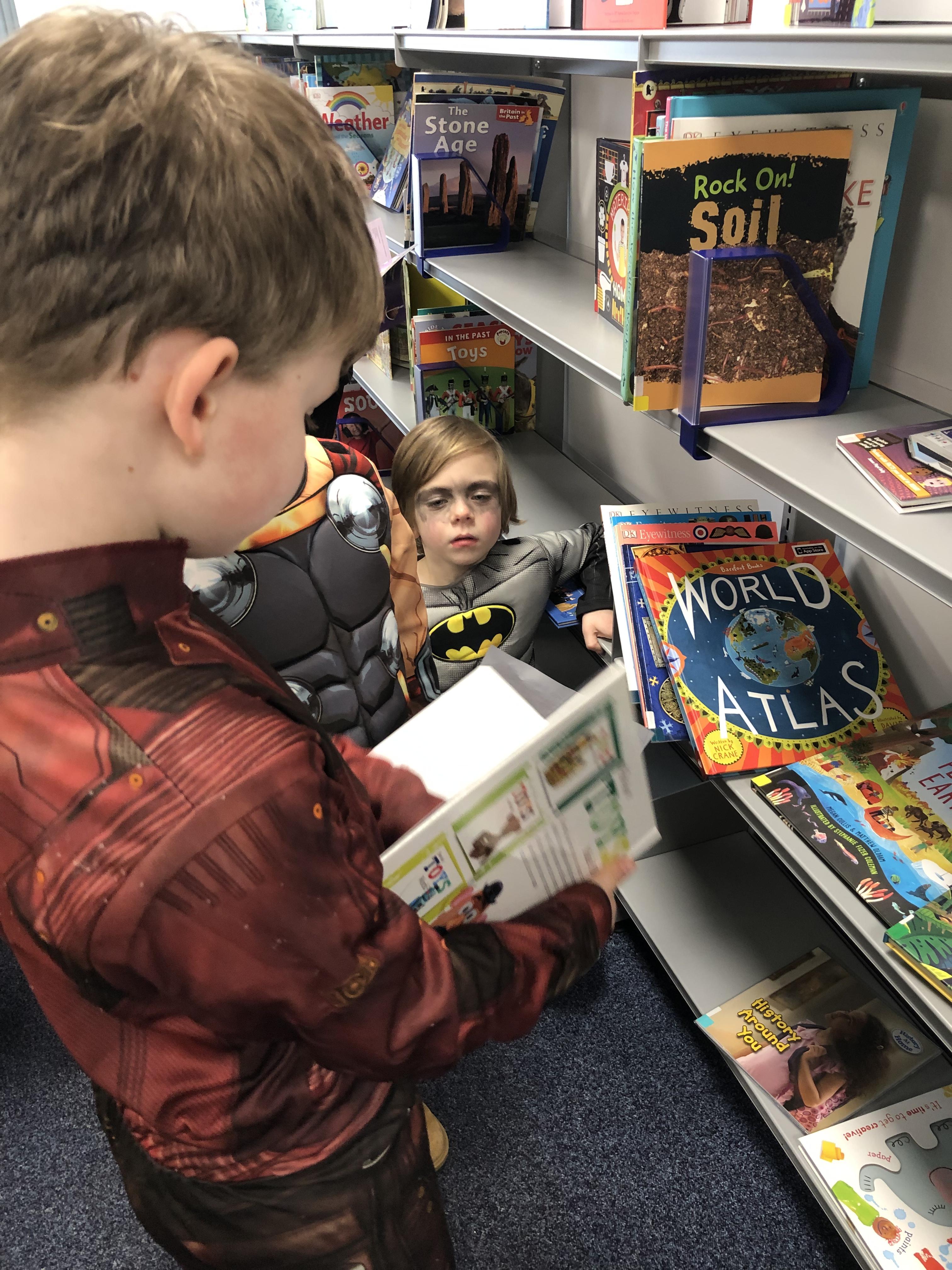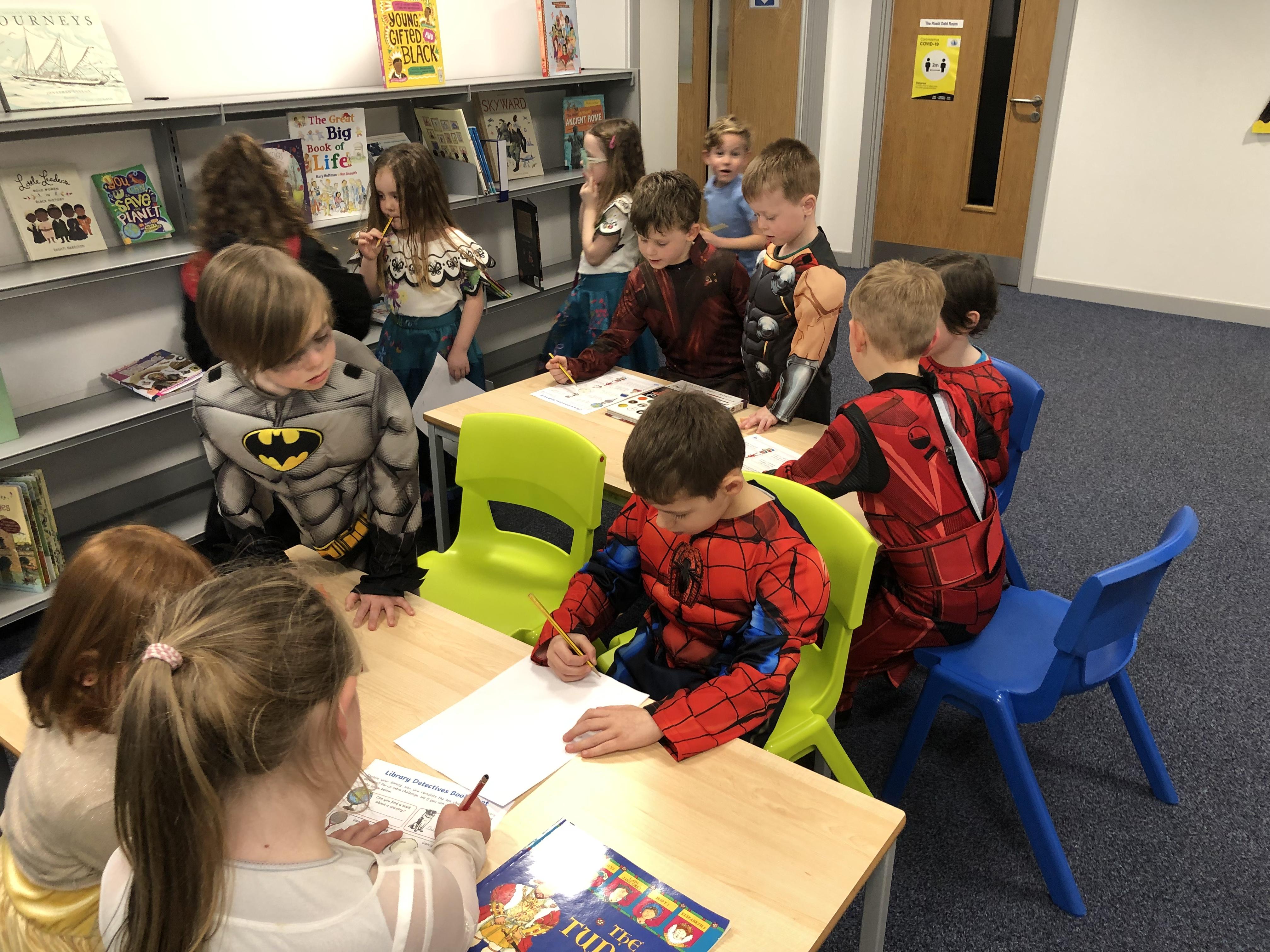 As part of World Book Day, the children embarked on a book scavenger hunt. We went to the school library where the children worked in pairs to find the various books on their lists.