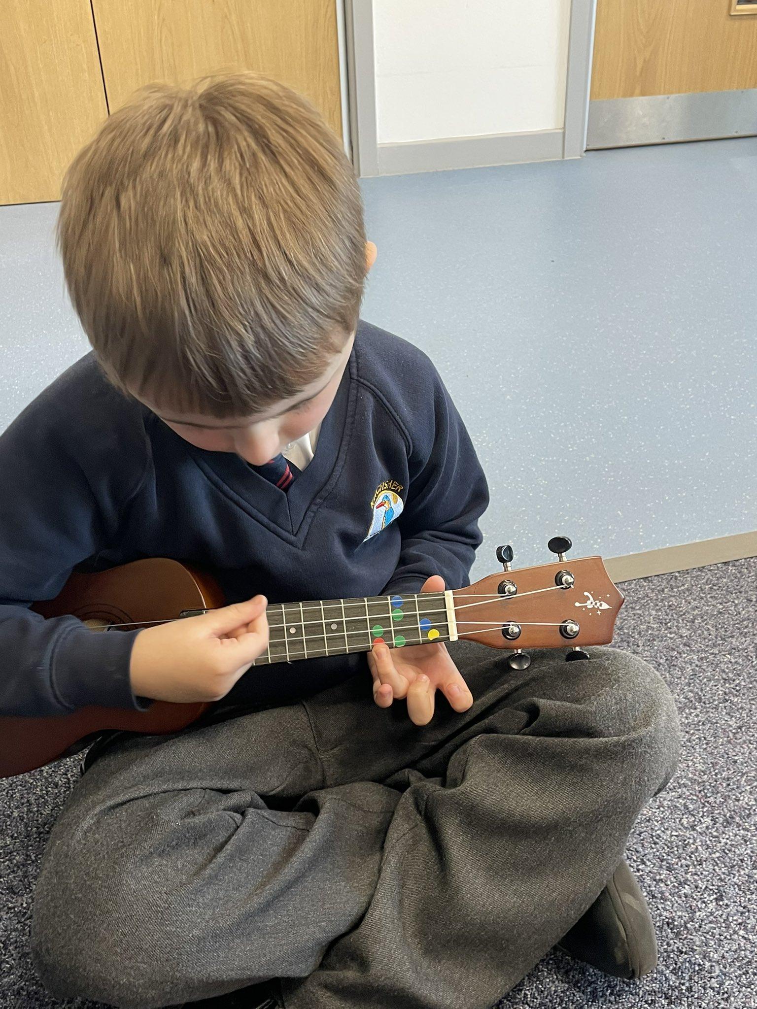 Today, the children were busy practising their ukulele skills with Mr Frisby.