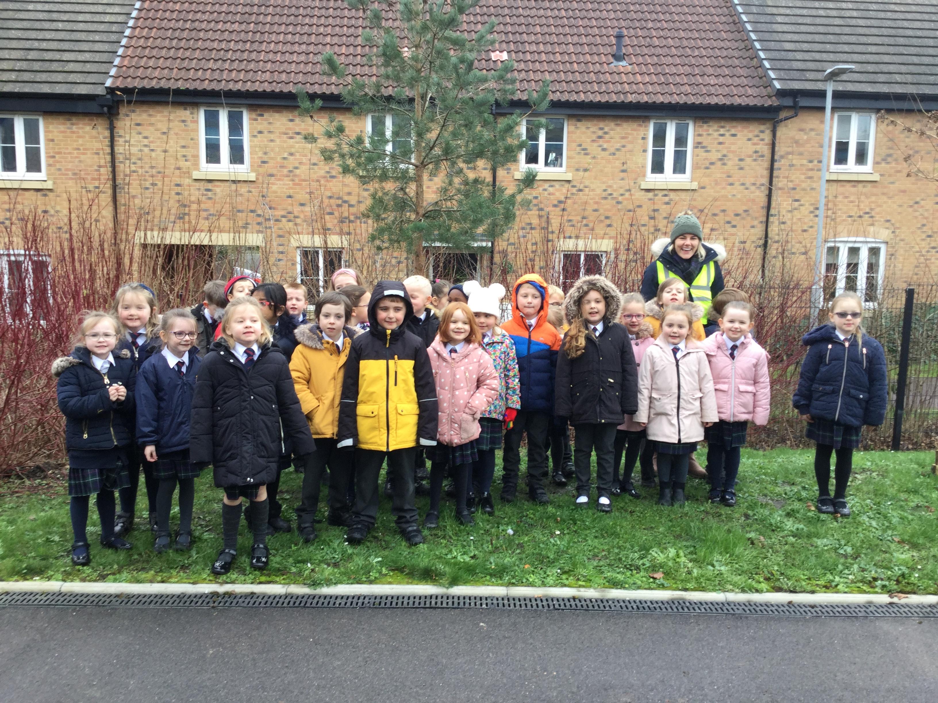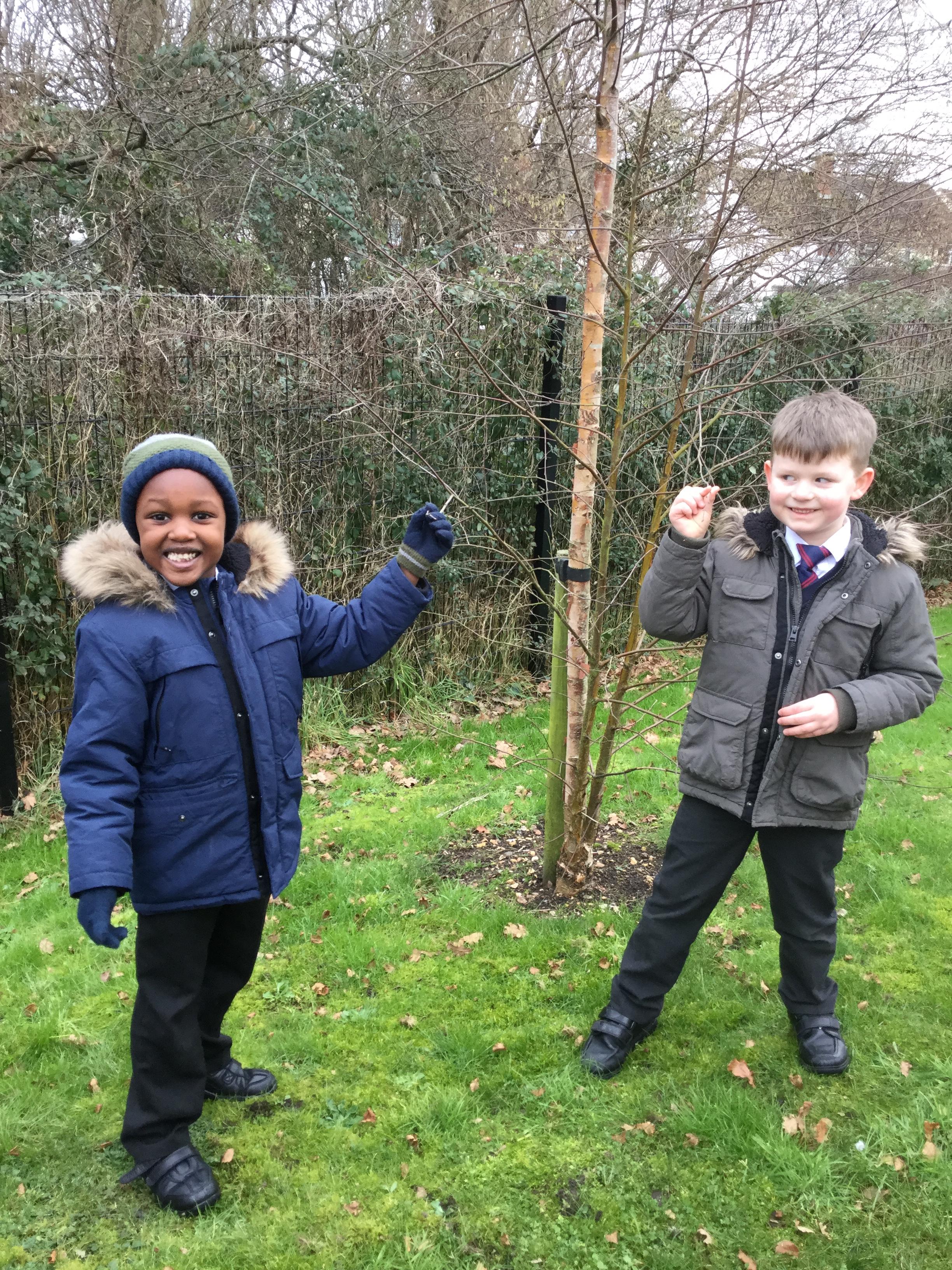 Today in Science, the children were learning about deciduous and evergreen trees. We found out that evergreen trees keep their leaves all year round and deciduous trees lose their leaves in the Winter. After, we went on a hunt around school to see if we could identify a deciduous tree and an evergreen tree on campus.