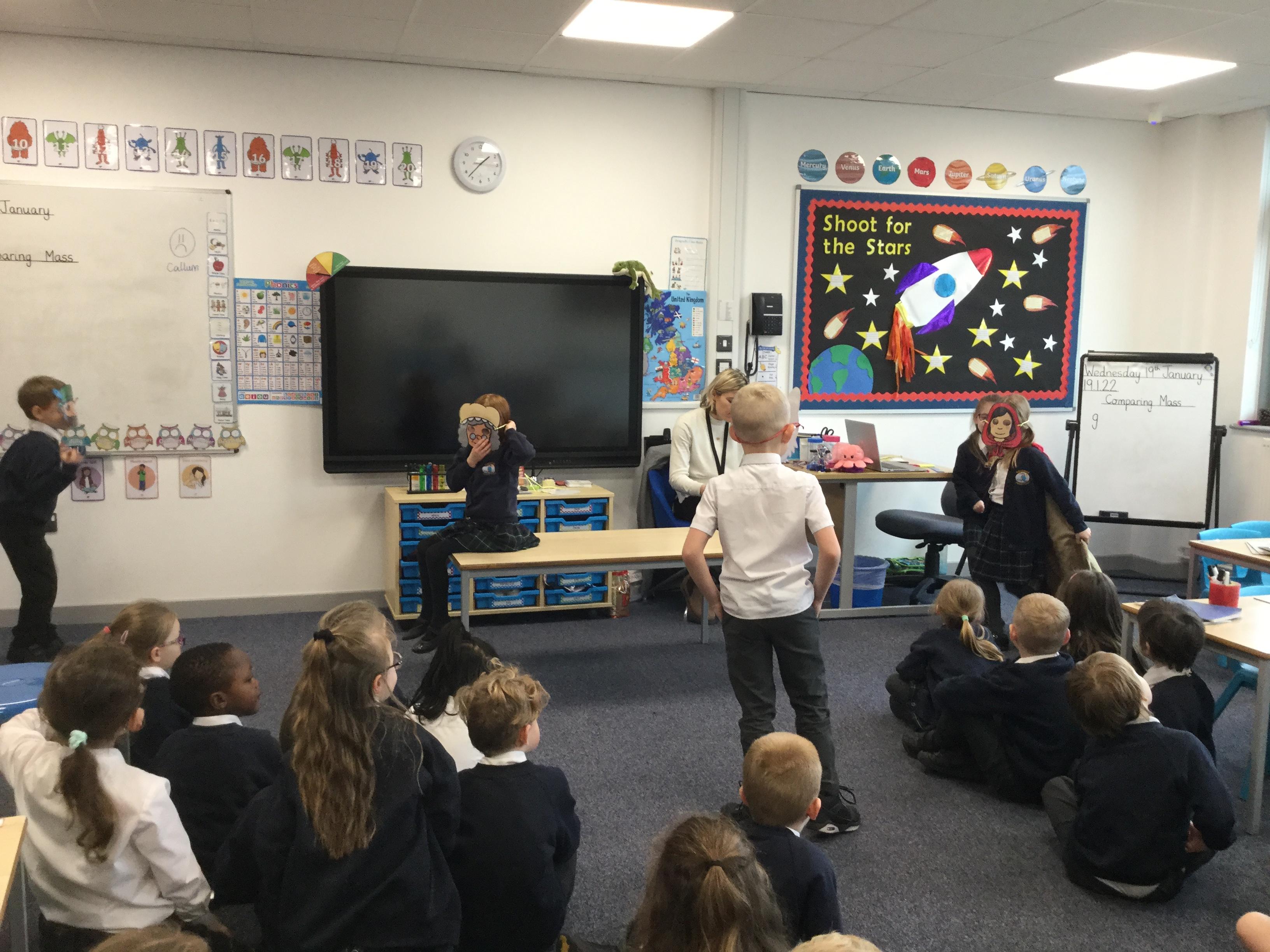 This week in English, we have been exploring the fairytale Little Red Riding Hood. Today, the children retold the story through role play. The class was divided up into 6 groups and each child was able to choose the character they wanted to play. After some time practising in their groups, the children performed their role play in front of the class. They were all very engaged in the activity and it was great to them all step into their roles so brilliantly with some fantastic characterisations!