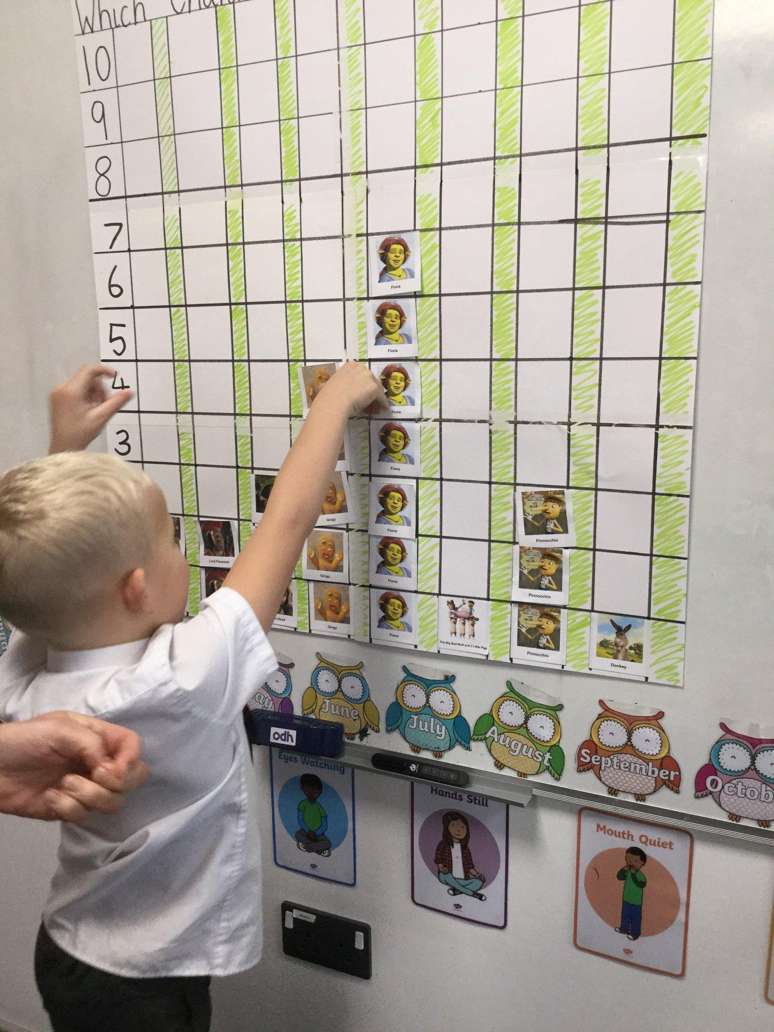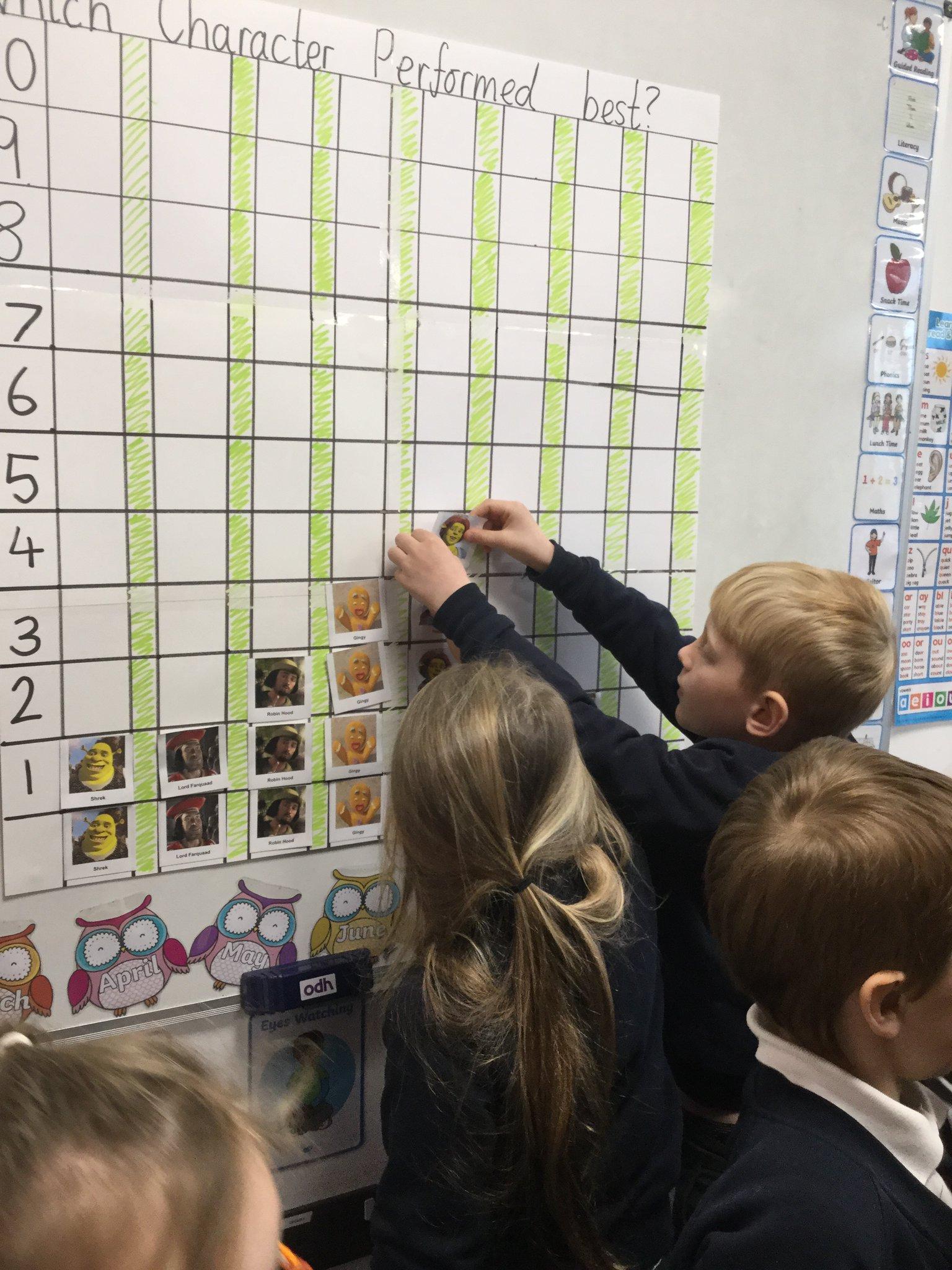 Today, it was no pens day and the children thoroughly enjoyed not having to do any writing! This morning, the class had so much fun practising their letter formation using magic finger lights. The children also got hands on in English, making jam sandwiches as part of their work on instruction texts. In Maths, the children were learning about pictograms. After watching Shrek Karaoke, they all voted for their favourite performance and we made a class pictogram to collect and represent the data.