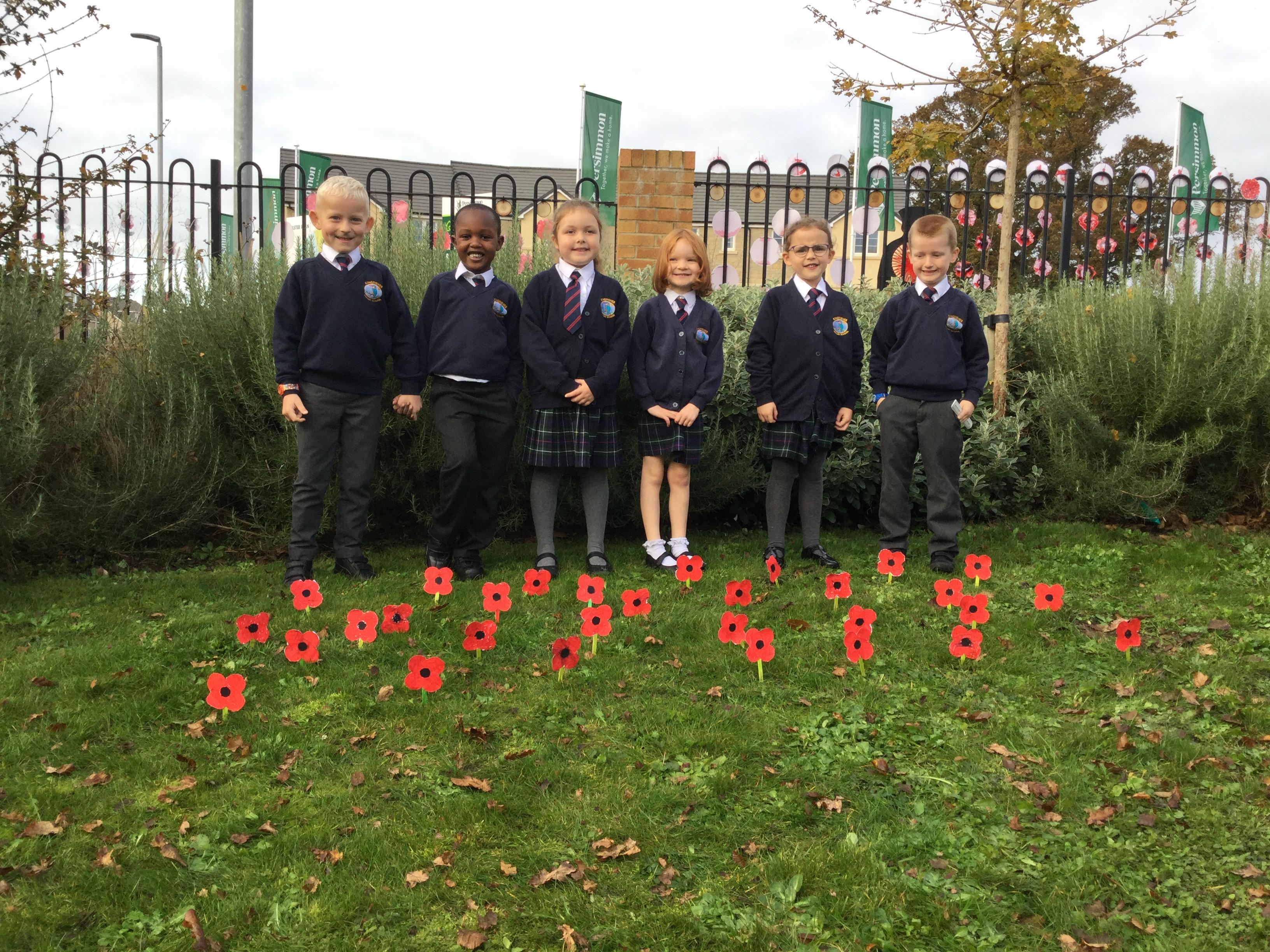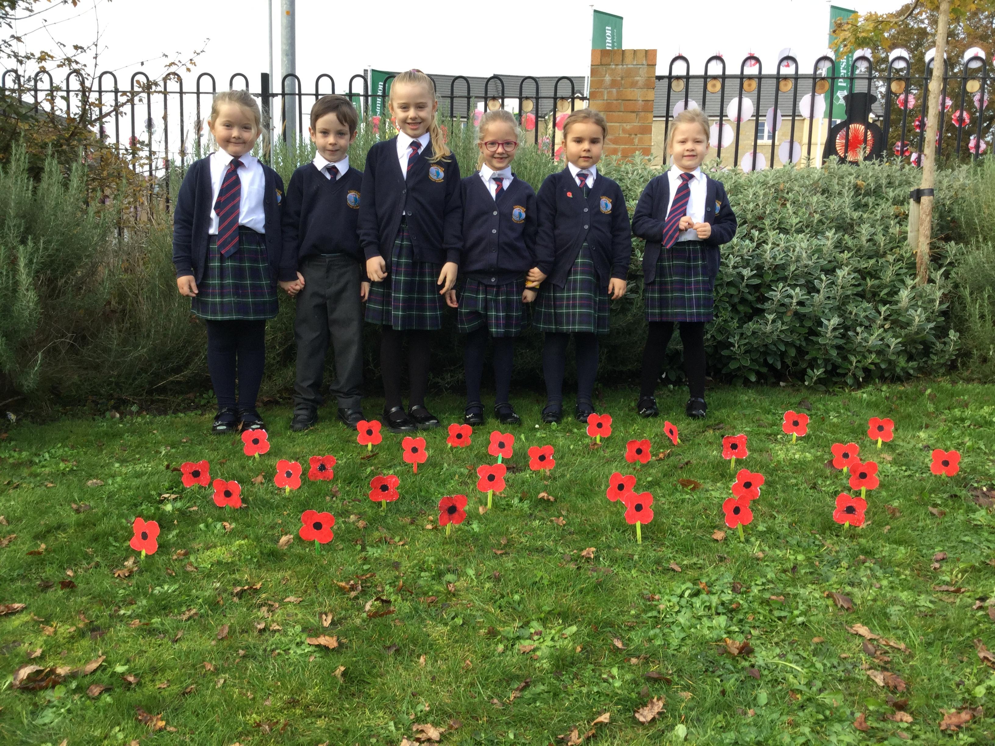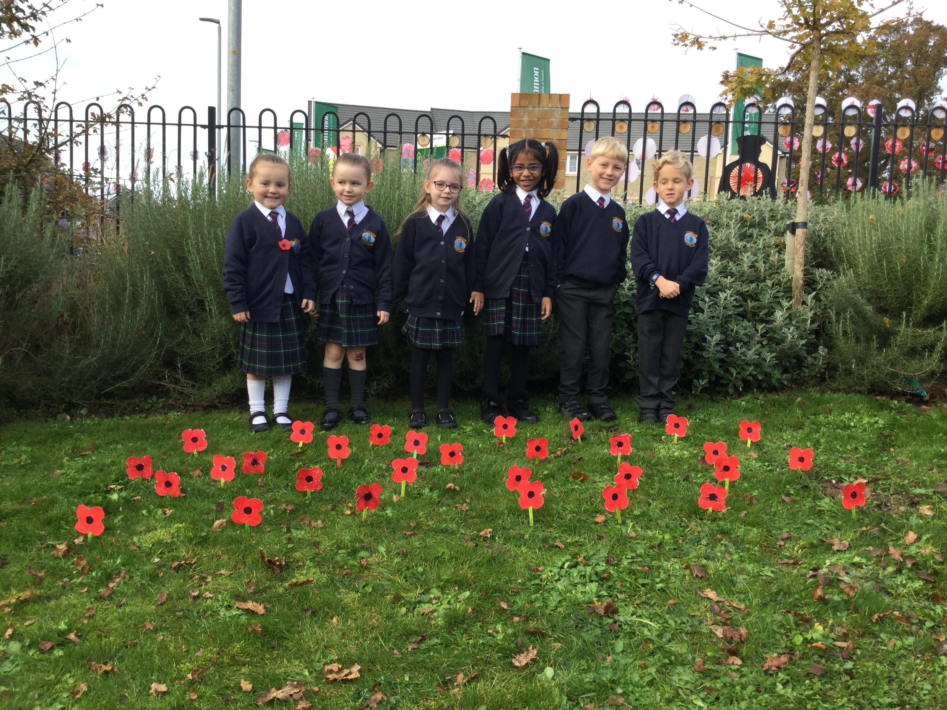 Today the children learnt about Armistice Day and took part in 2 minutes silence with the whole school to commemorate all the men and women who have served or who continue to serve in the military. The children also made their own poppies and displayed them on the front lawn.