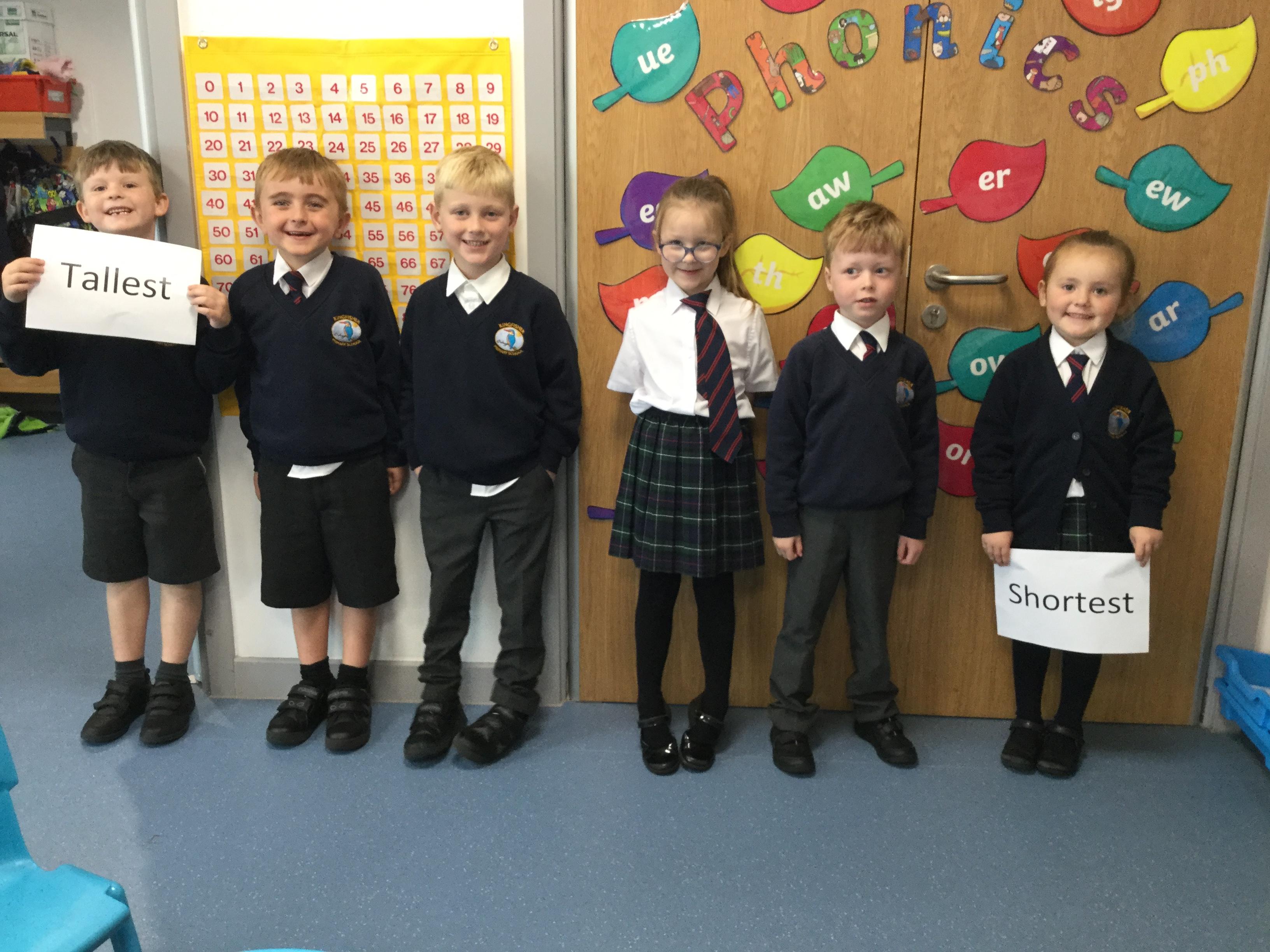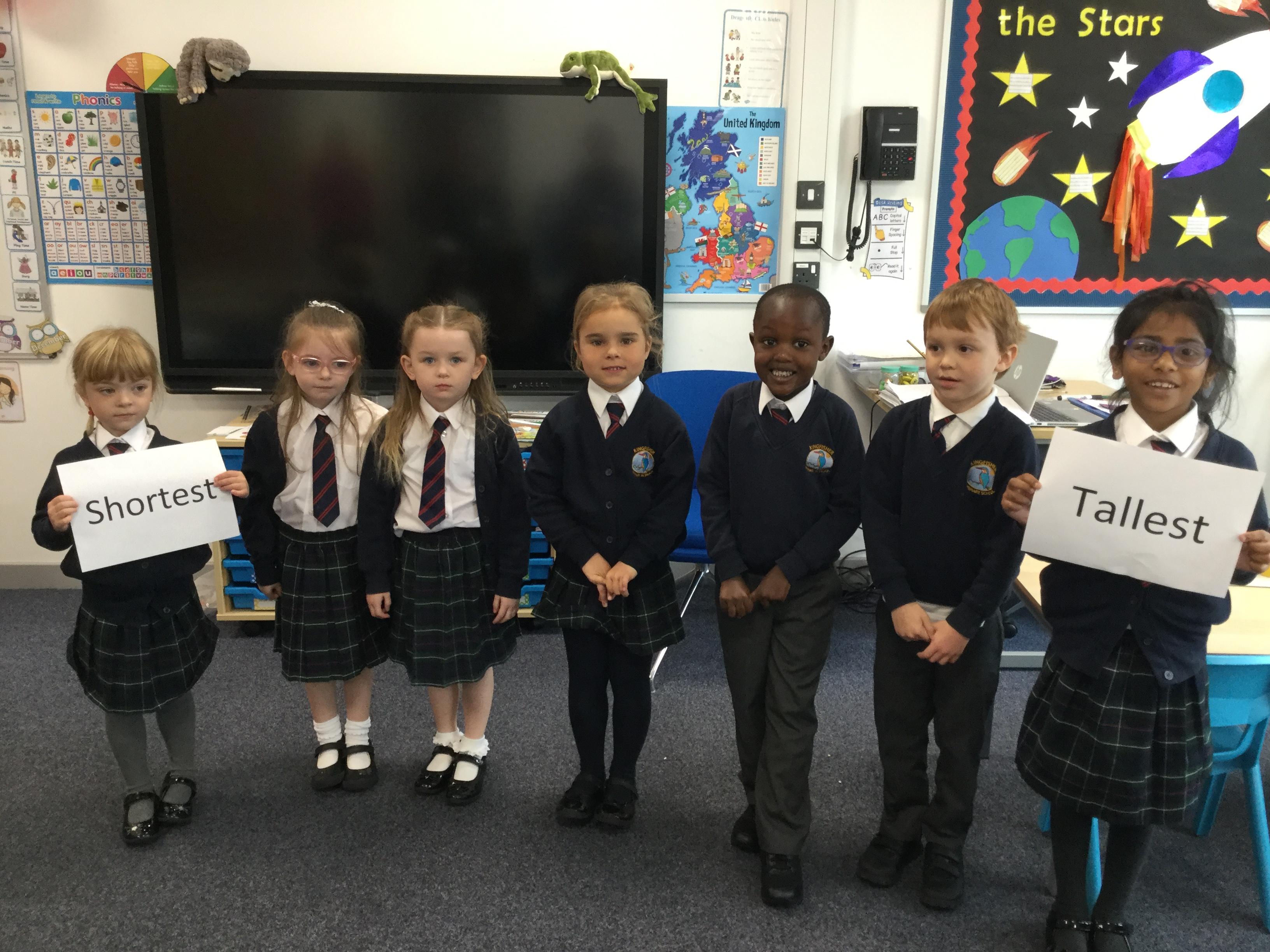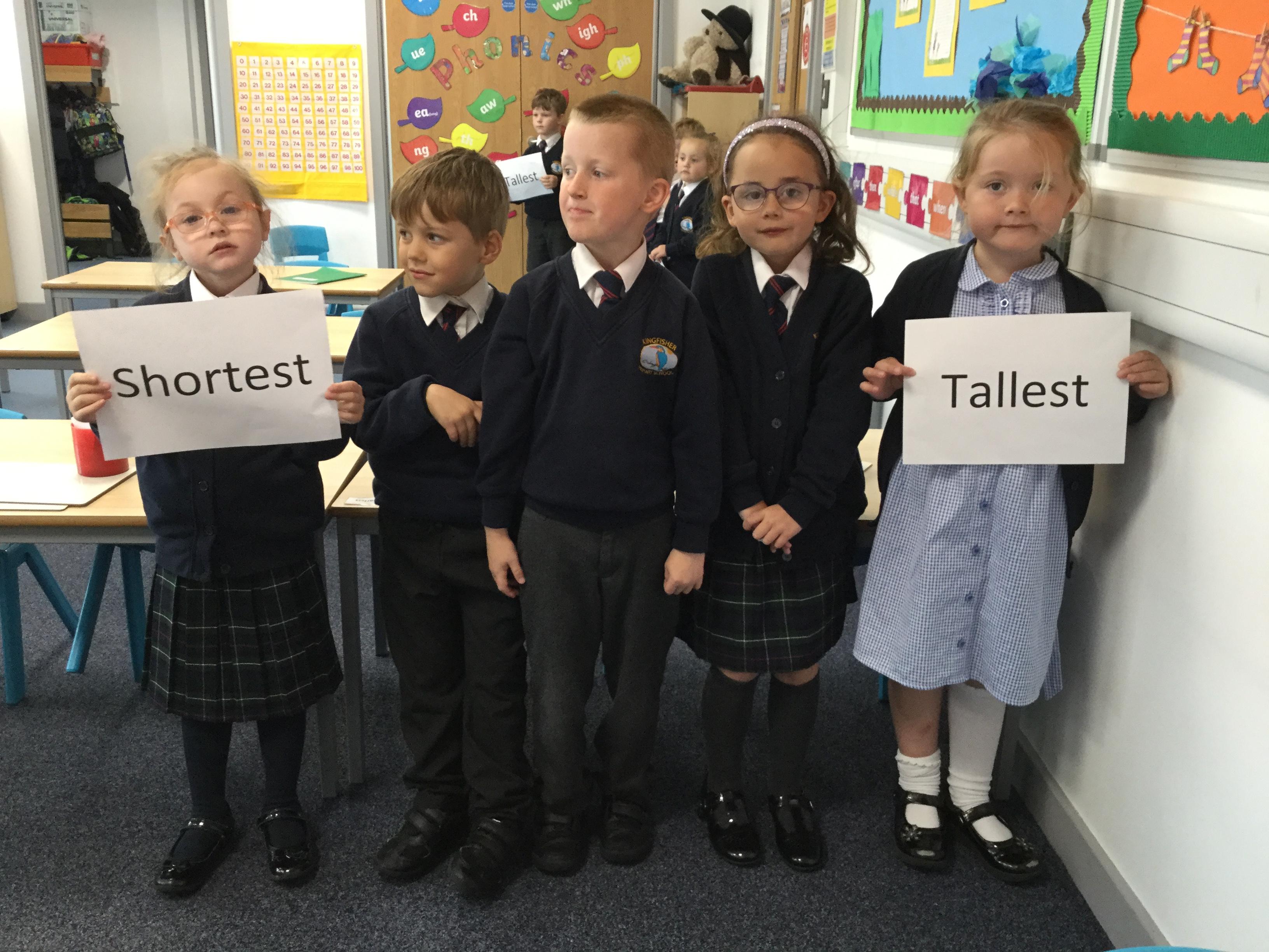 In Maths today, the children compared height by ordering themselves in order from tallest to shortest.