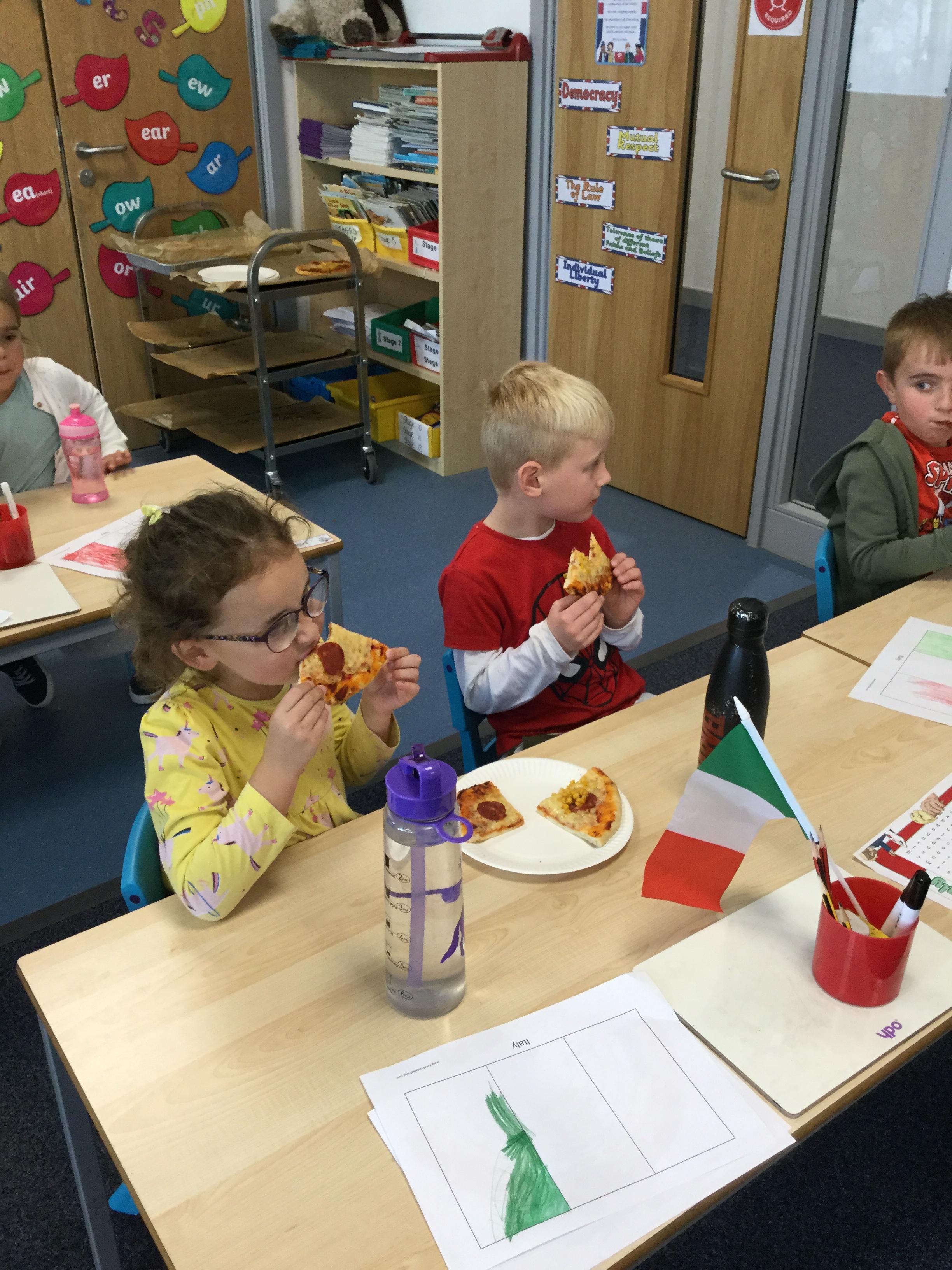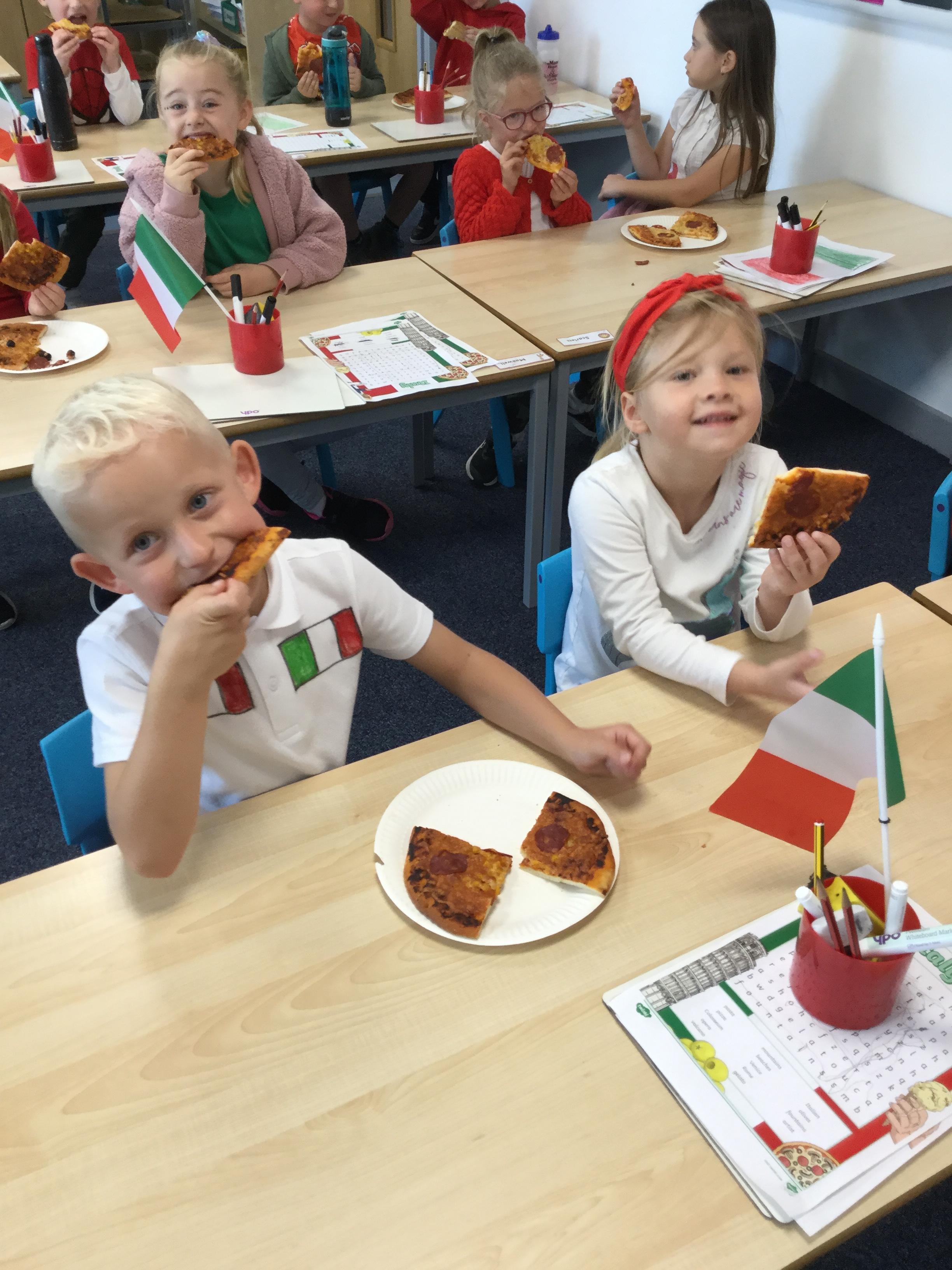 To celebrate European Languages Day Dragonfly class spent the day learning Italian. The whole class came to school dressed in the colours of the Italian flag and were very lucky to have had a virtual Italian lesson with Miss Delaney who is fluent in multiple European languages. We learnt to count to 10 in Italian and even learnt the colours of the rainbow. After all their hard work, the children were treated to some iconic Italian cuisine- pizza! It was such a fun day and the children thoroughly enjoyed learning another language. A big thank you to Miss Broadribb for organising the day.