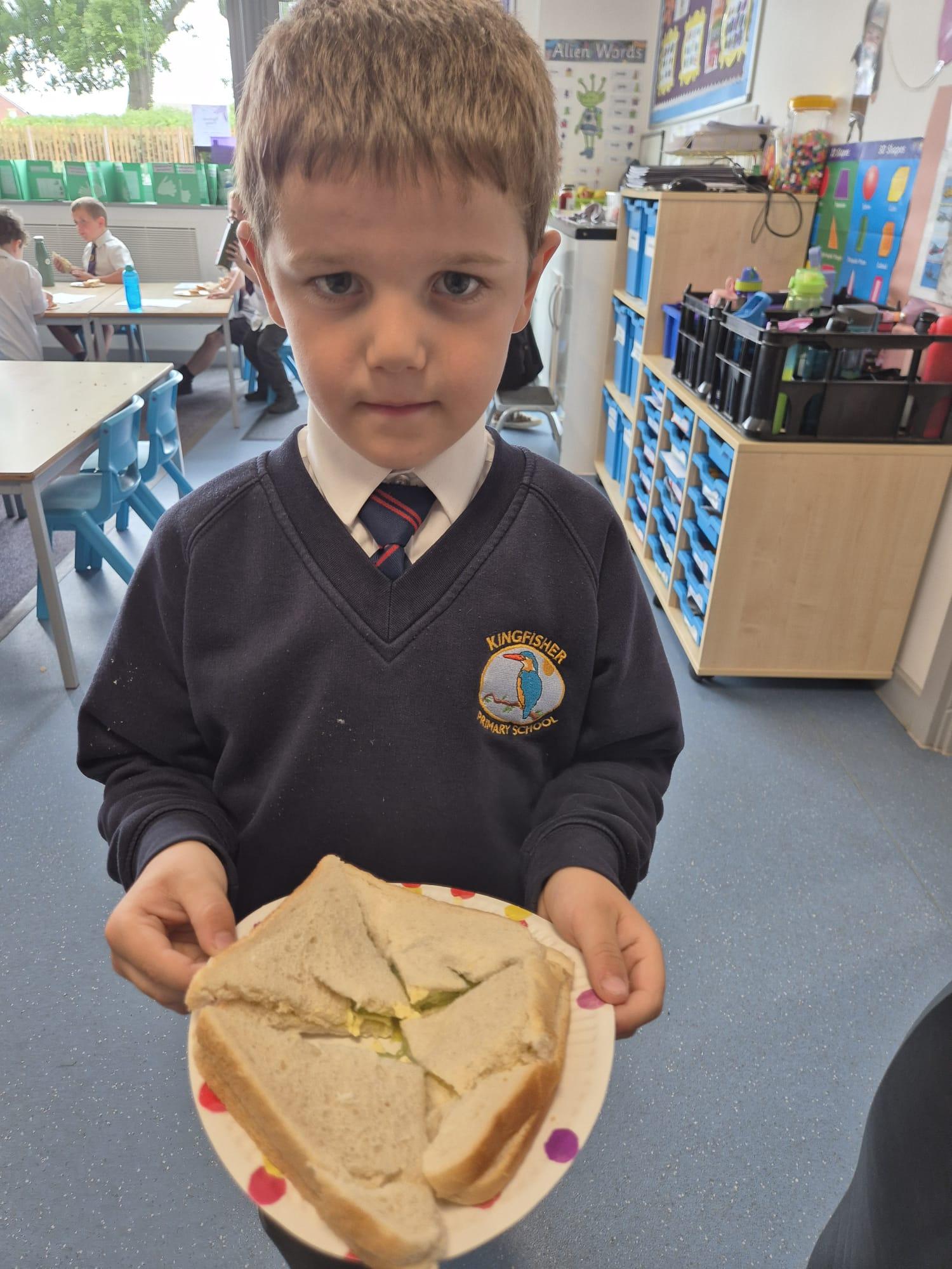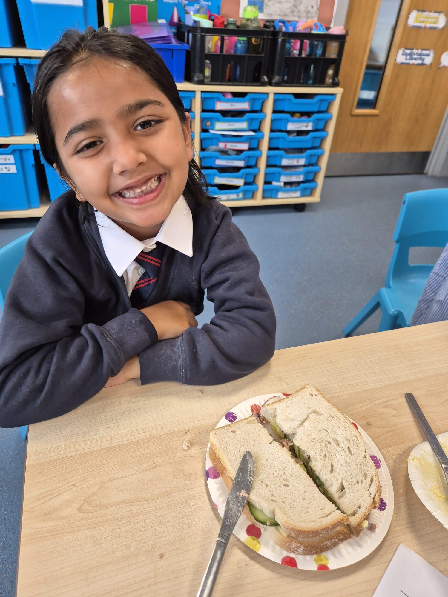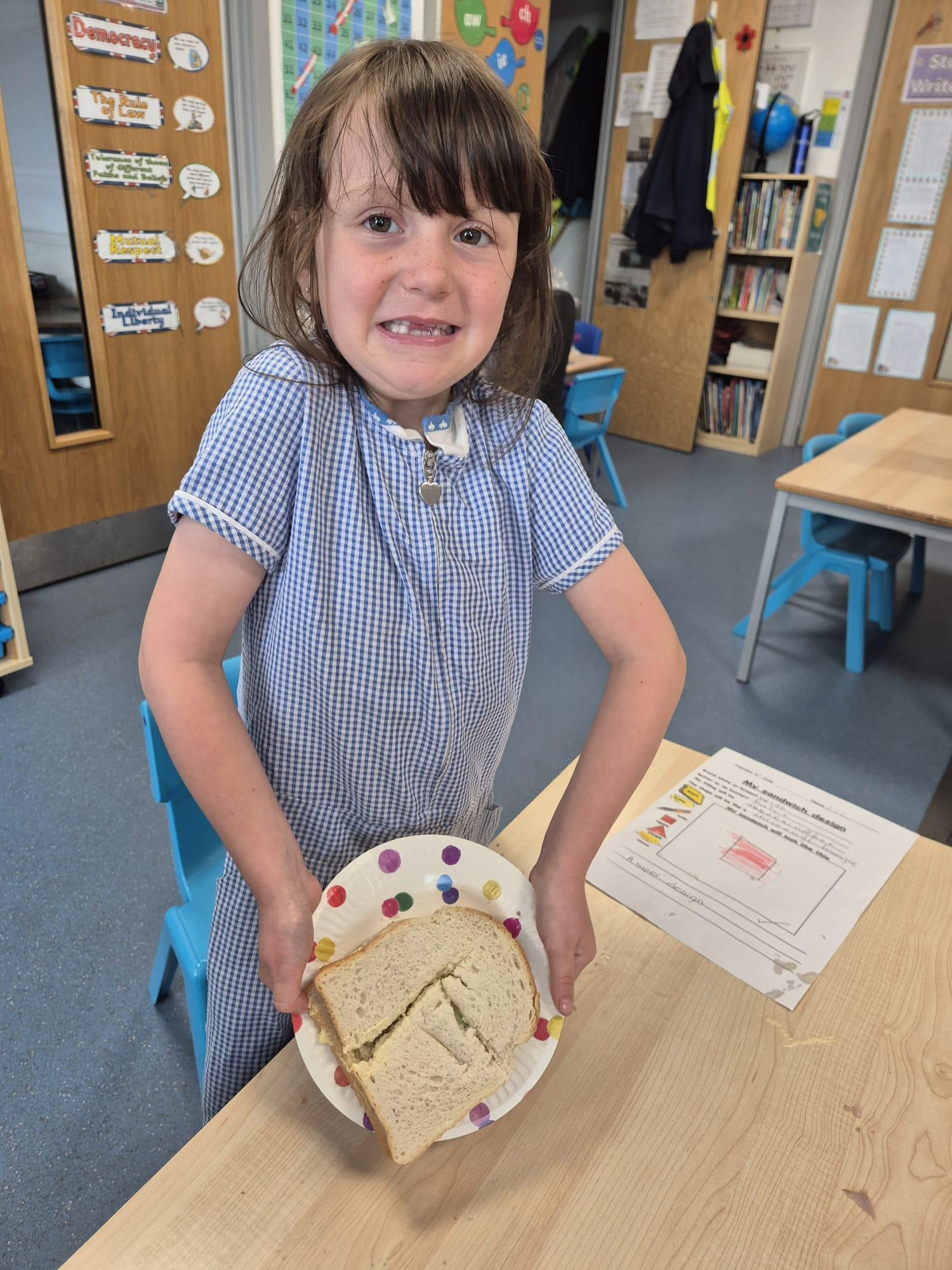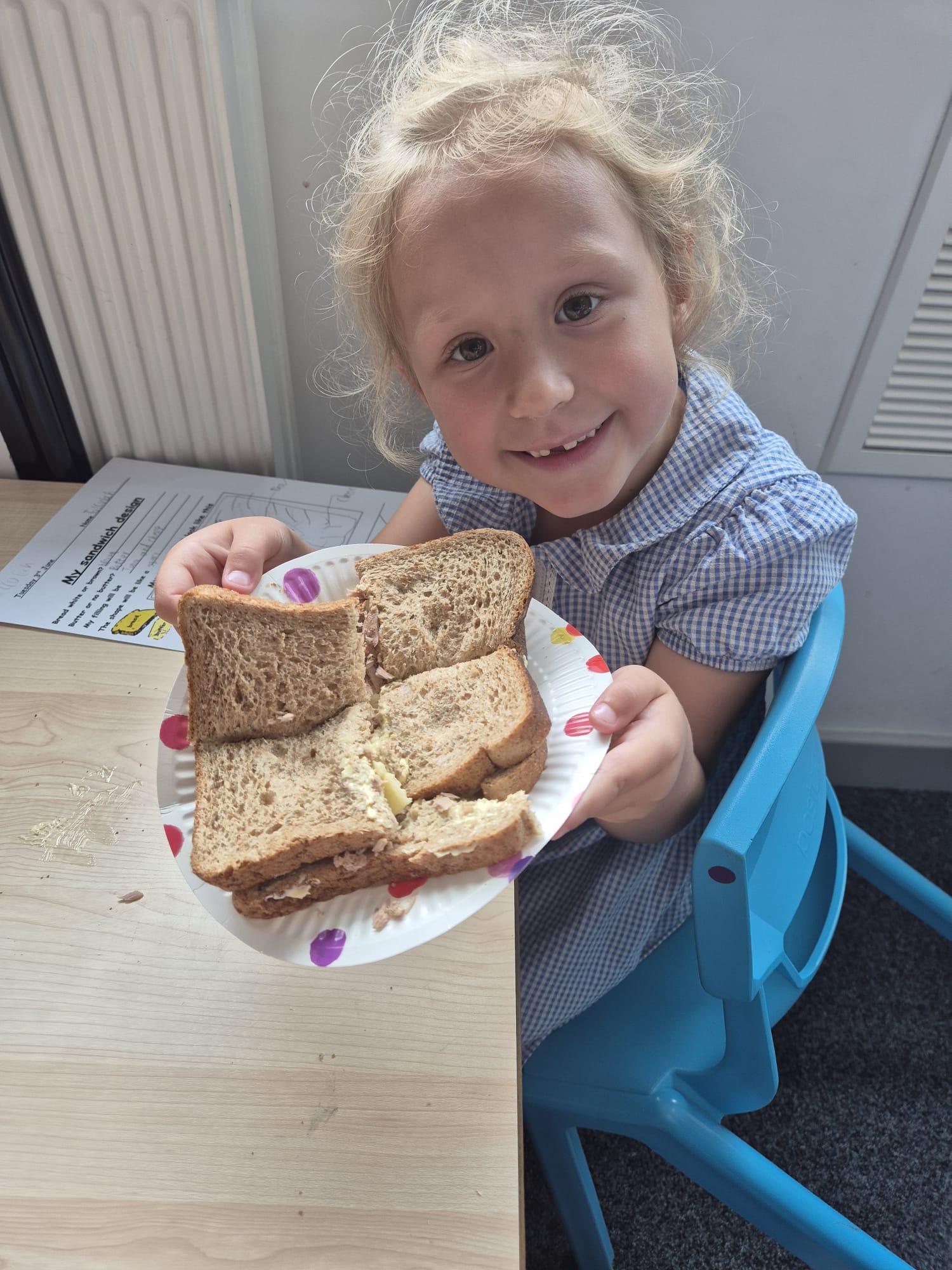 Last week, the Dragonfly children had a wonderful time designing their own sandwiches, carefully choosing their favourite ingredients. This week, their excitement bubbled over as they finally got to make them! With a selection of fillings including ham, cheese, egg, tuna, and jam, each child created a sandwich that was uniquely their own. They confidently spread, layered, and assembled their tasty creations, proudly showing off their finished sandwiches before enjoying every bite. It was a joyful, hands-on experience that combined creativity, independence, and a little bit of delicious fun!