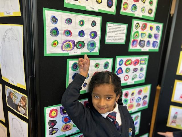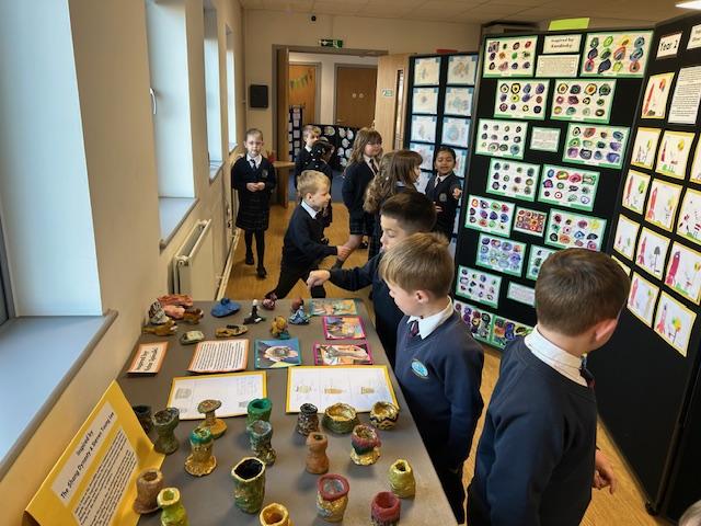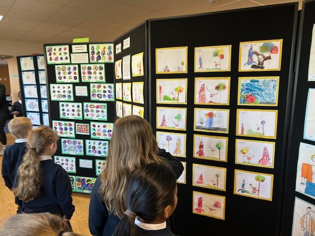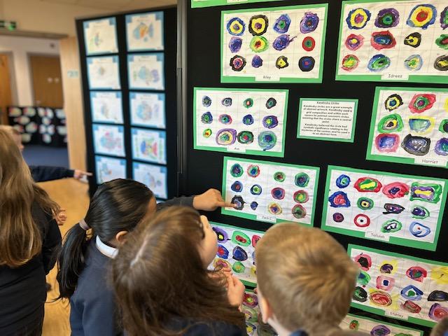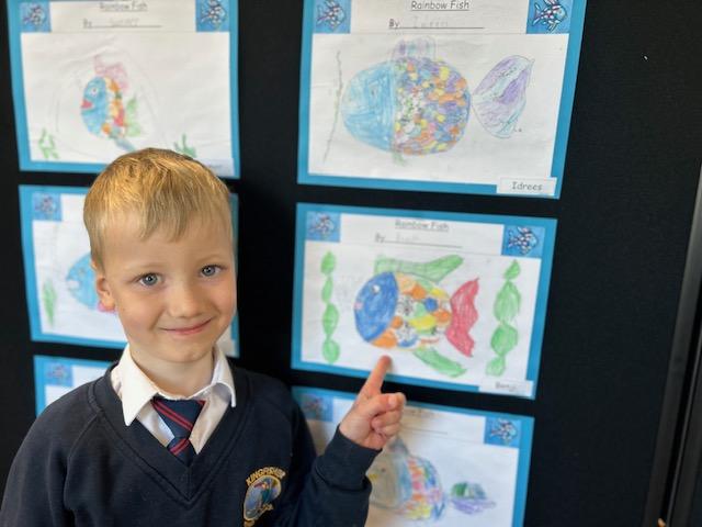 The children were very proud to show off their art work during Kingfisher's Art Exhibition last week. They had some fantastic pieces painted in the style of Kandinsky, some self- portraits and Rainbow Fish sketches in the style of Marcus Pfister. They also enjoyed looking at all the other pieces of art from the other classes.