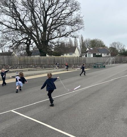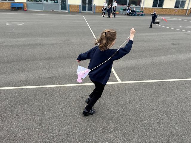 In DT, the children have been learning about kites. They have investigated different styles of kites, and which countries use them for different purposes. This week, the children designed and made their own diamond kites and enjoyed flying them on the playground.