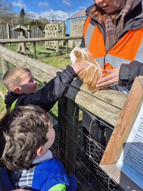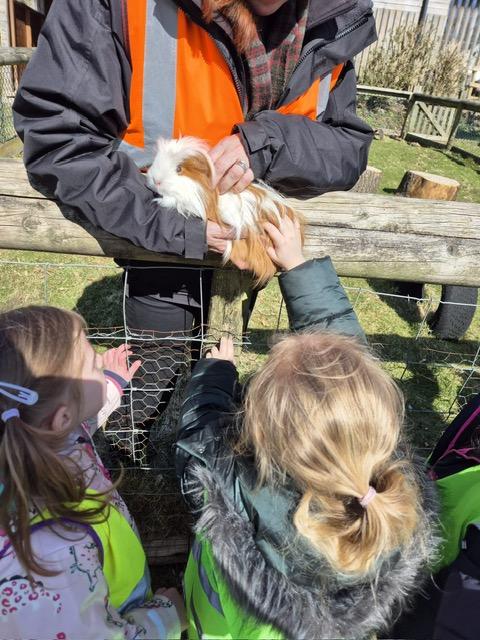 We had a super day at Kingston Maurward last Friday visting the farm animals.Sarah showed the children how to do Guinea Pig and Rabbit fishing, they also went around the animal park, and they saw some very licky calves and cute, new-born lambs! It was a lovely sunny day and we even managed to eat our lunch outside!