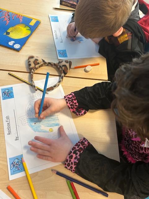 We had such a fun day celebrating World Book Day last week. The children looked amazing in their costumes and they enjoyed various different 'book' themed activities throughout the day. We started the day off with an assembly, led by Cruella De Vile! Then the children had some time in the library, followed by a storywriting session. We were then visited by Sean (from Somerset Cricket Federation), who read a story to the class. After lunch, the children learnt to draw in the style of the author and illustrator, Marcus Pfister, and created some excellent Rainbow Fish pictures.It was a great day!