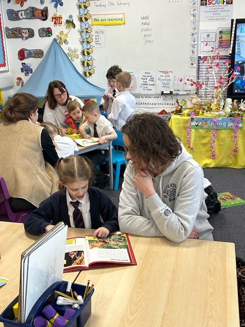 We had a wonderfully successful Rock Up and Read session this week, made even more special by the beautiful weather. Taking advantage of the sunshine, we held the session both inside and outside, creating a relaxed and enjoyable atmosphere for everyone. It was lovely to see so many parents and grandparents join us, sharing stories and spending quality time reading with the children. The event was filled with smiles, laughter, and a real love for books, making it a memorable experience for all involved.