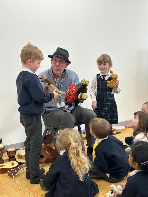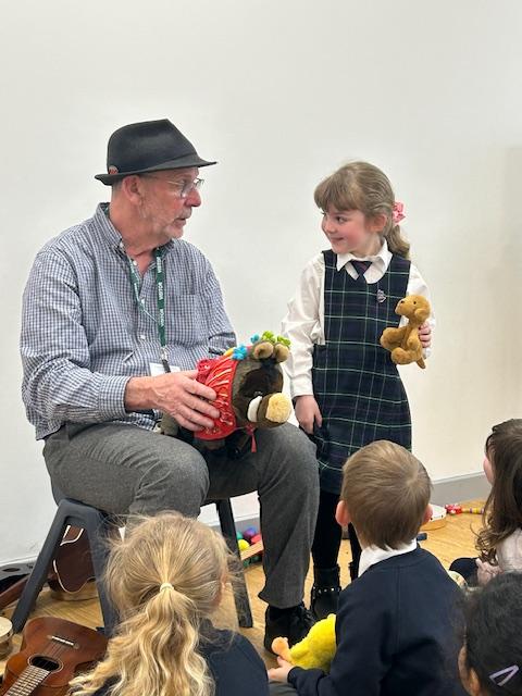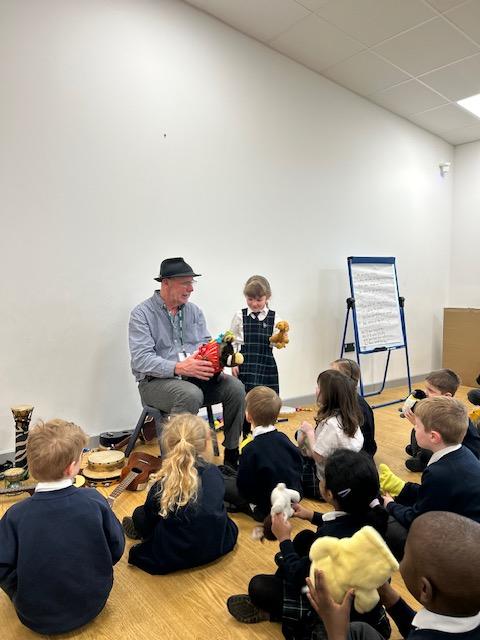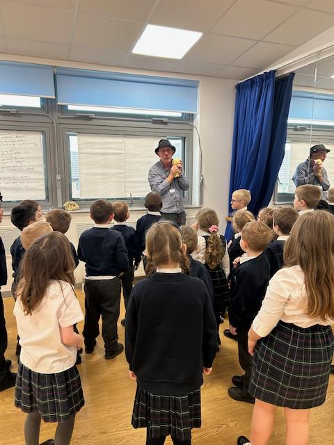 Dragonfly Class had a fun and inspiring day as they immersed themselves in the magical world of storytelling. The highlight of the day was a special visit from Mark Fraser, a talented storyteller who captivated the children with his imaginative tales and expressive storytelling style. His lively performance sparked curiosity and excitement, leaving the class buzzing with ideas. Mark also shared a simple but powerful technique for starting a story: using just one name and three words. This sparked the children's creativity and helped them see how a whole story can unfold from the smallest idea. It was a truly memorable day that ignited a love for storytelling in every child.