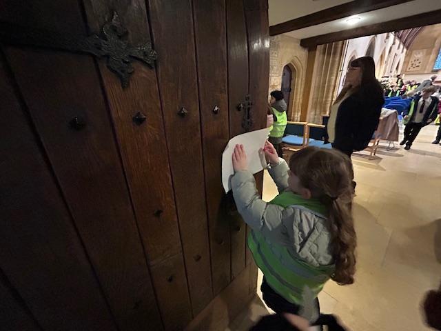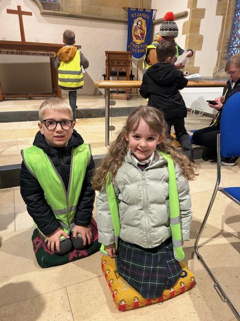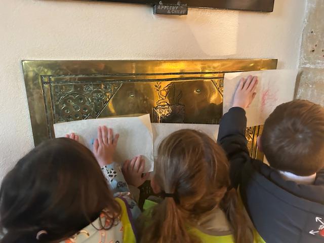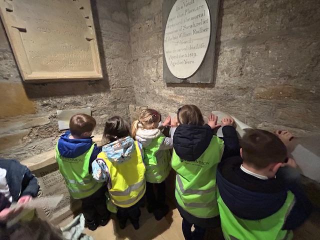 As part of our RE topic on Christianity, the Year 1 and Year 2 children had a visit to one of our local churches. Sarah ( the Pioneer Priest) from St James' Church spoke to the children about the features of the church, and she also read them a Bible story. The children enjoyed investigating the different areas of the church and completed some lovely rubbings from the brass and stone.