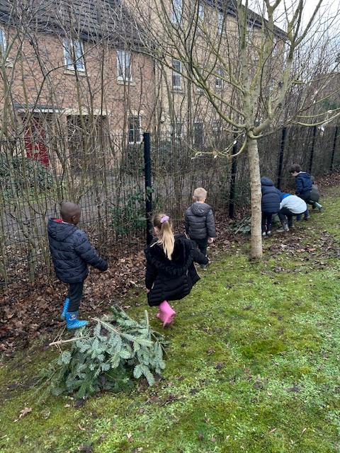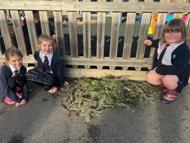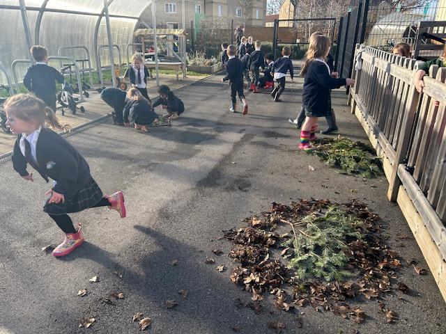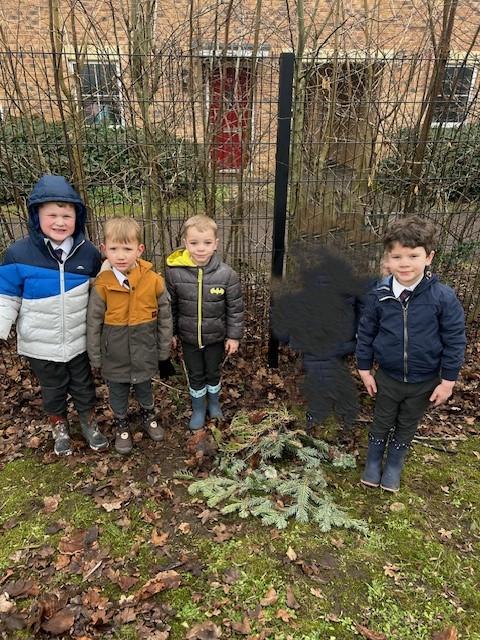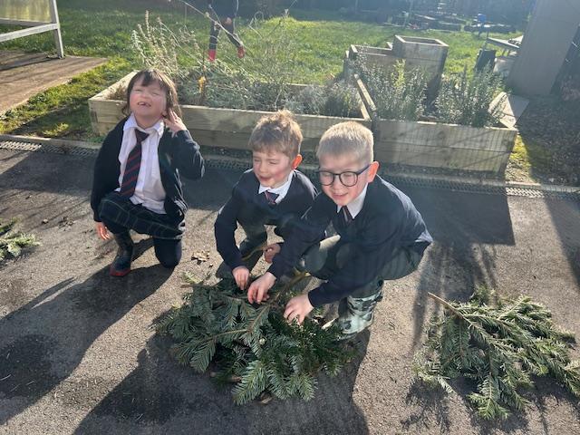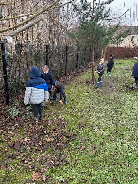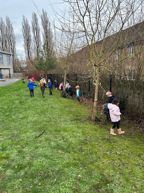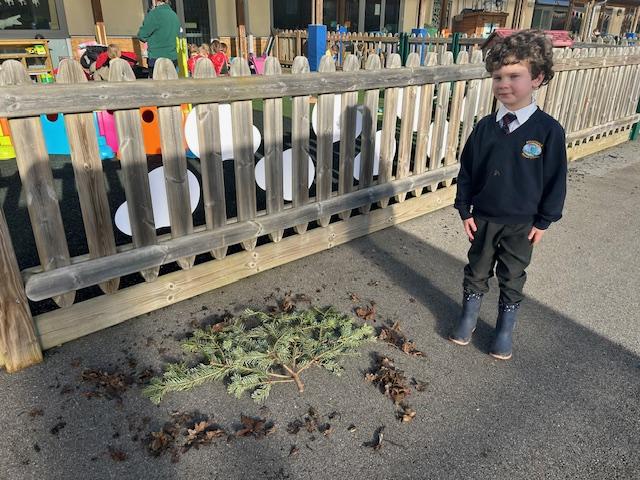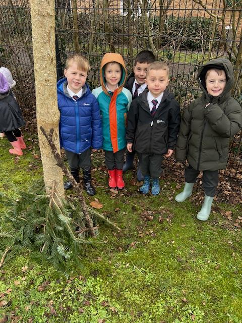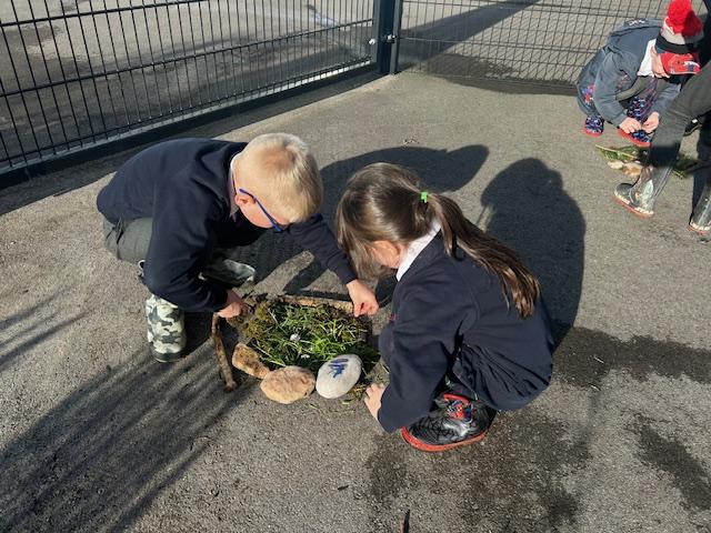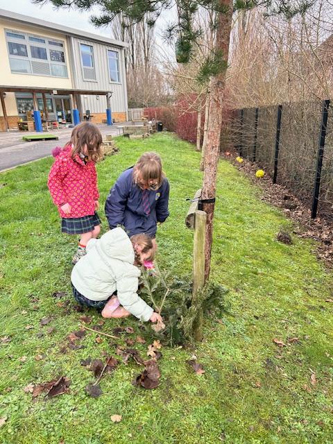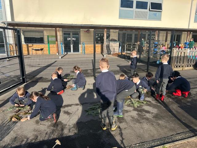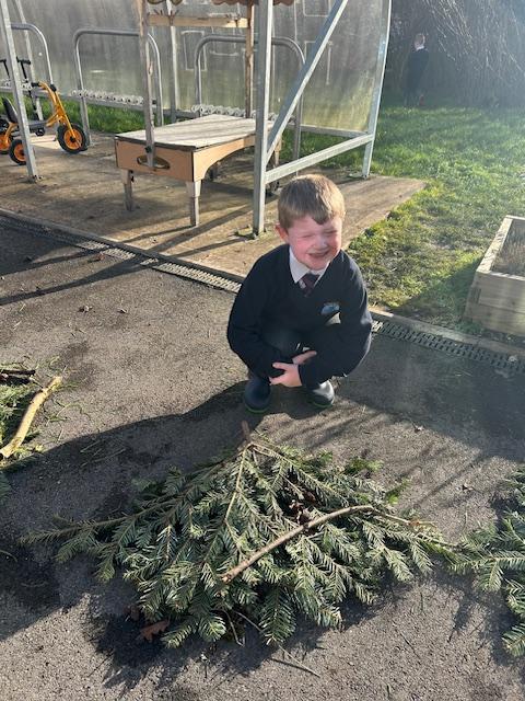 In Outdoor Leaning this week, the children enjoyed hearing the story 'One Snowy Night' by Nick Butterworth. They then went out into our Kingfisher garden to make some homes for some wild animals. They considered what would make a good shelter, including having a roof and an entrance, and also having a nice cosy base for them to sleep on. The children used fir tree branches, leaves, twigs and moss to create their homes and as you can see, they were very proud of them!