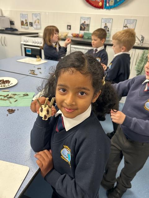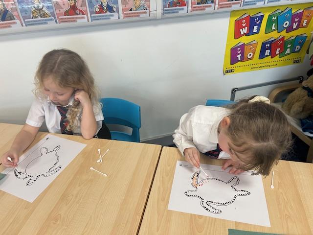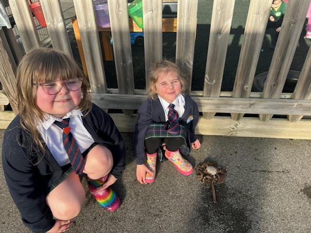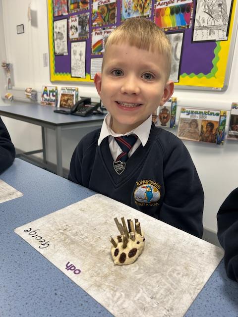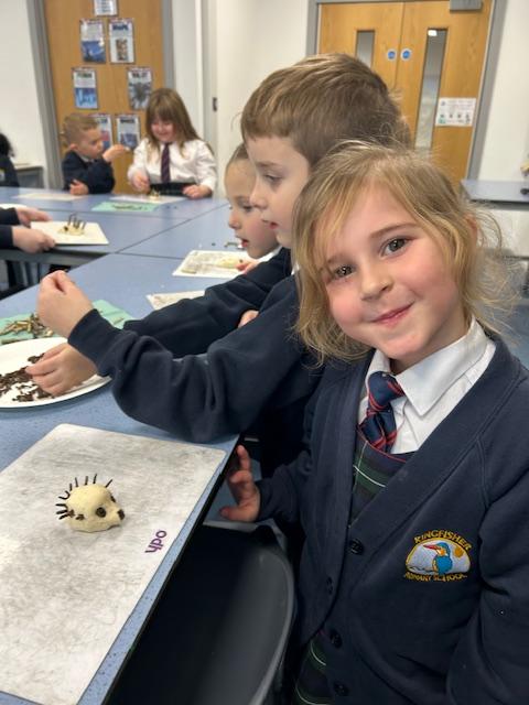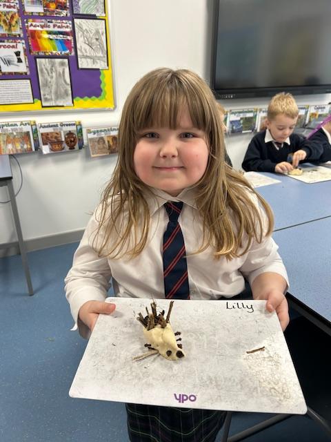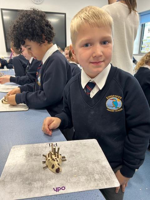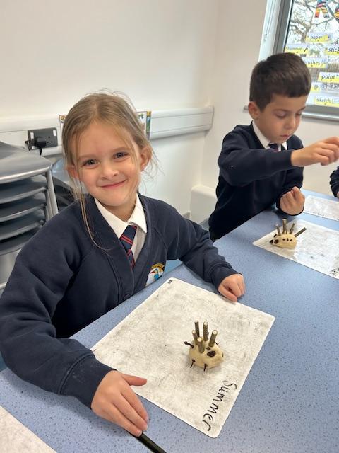 In Outdoor Learning the children used sticks to create their own salt-dough hedgehogs. These were very cute and it linked in nicely with our topic on hedgehogs for that week.