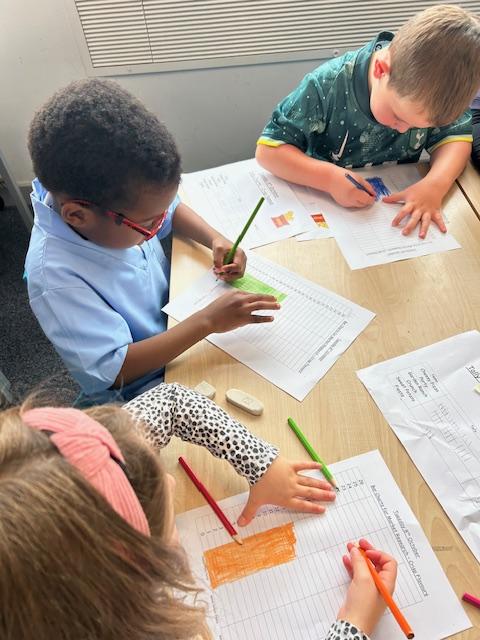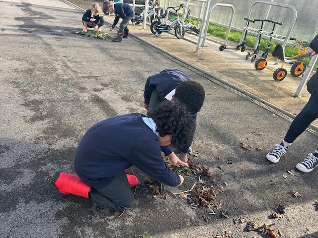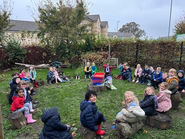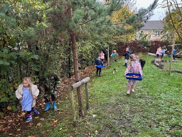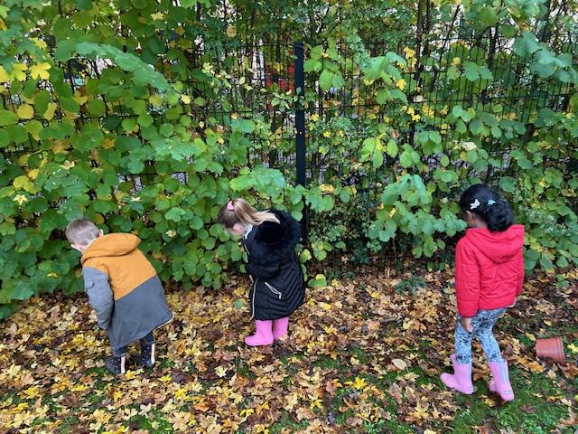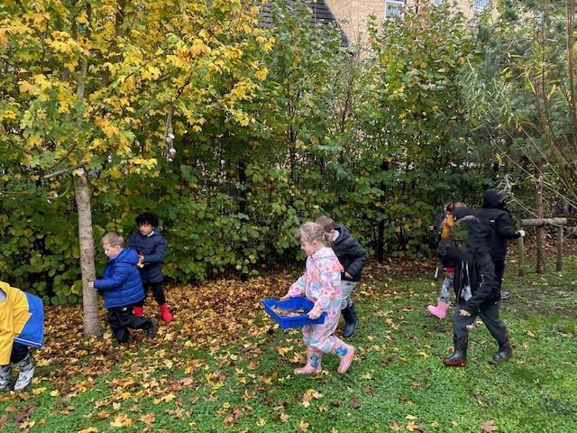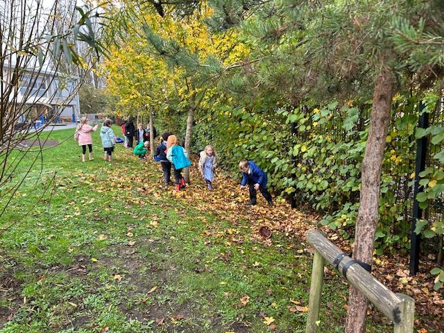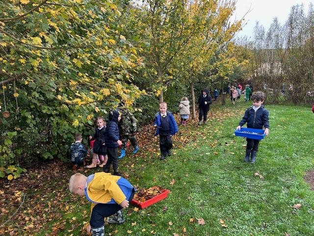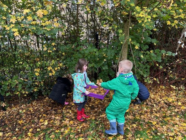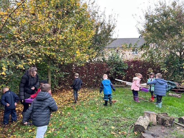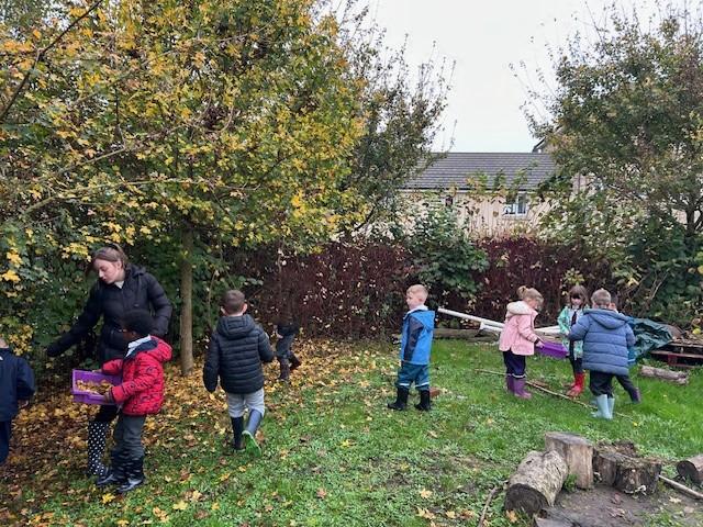 Our first session in Outdoor Learning was learning about leaves. The children found out that leaves change colour in Autumn due to the reduction of chlorophyll being produced. They then went on a leaf hunt around our gardens to find different coloured leaves for our chart.