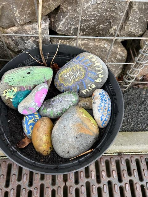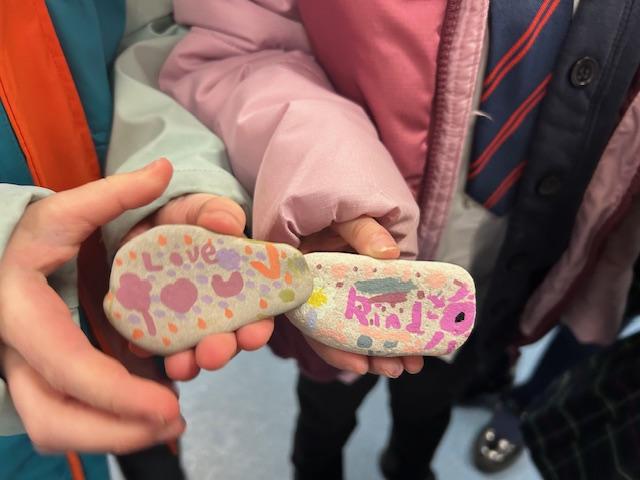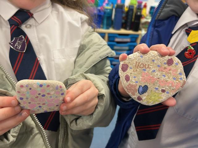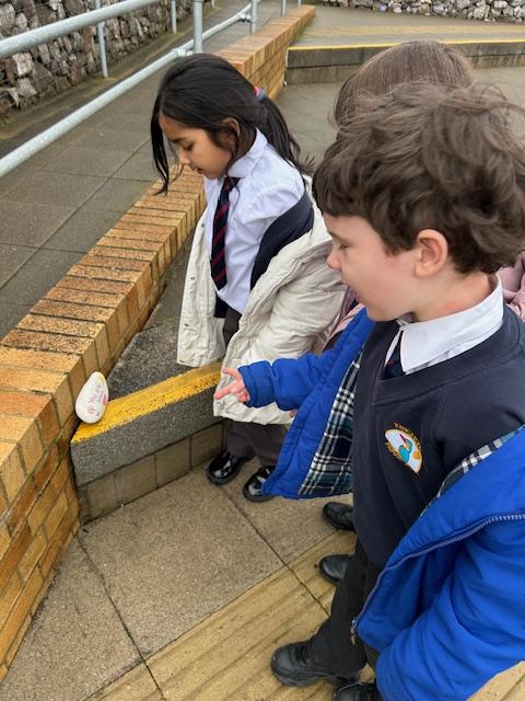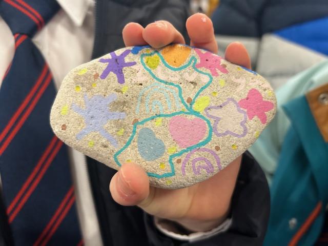 As a class we talked about how sometimes we may feel a bit sad or low and what we can do about it. We then had a discussion about positive words and phrases, and the children wrote these on rocks to place around the school grounds. The children did a fantastic job and we hope other children enjoy their handywork and feel brightened by their positivity.