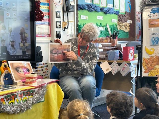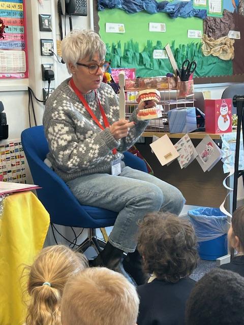This week Dragonfly class had a visit from a Dental Nurse. She came to talk to them about her job, and she brought in things to show the children. She discussed what food/drink was good and bad for our teeth, and she demonstrated how to clean them properly. The children were even given a goody bag to take home!
