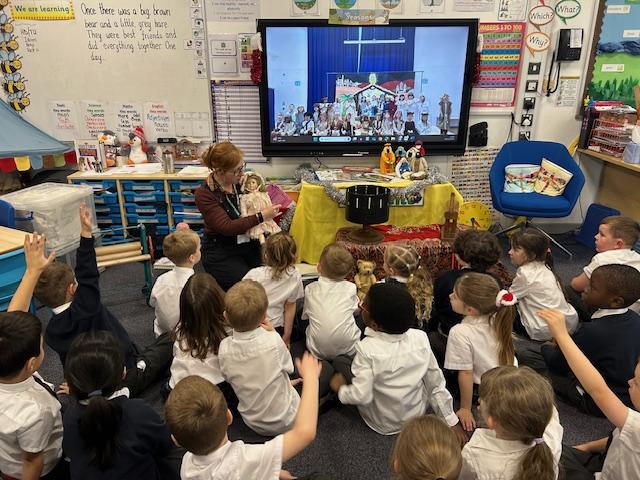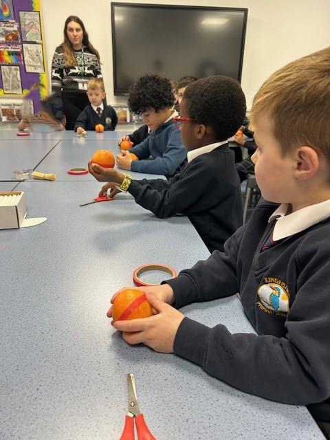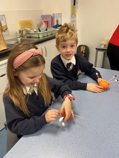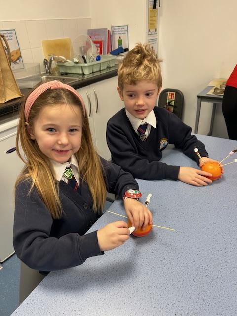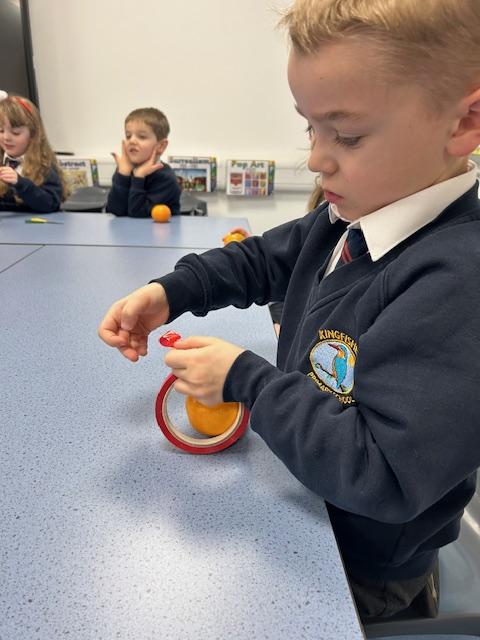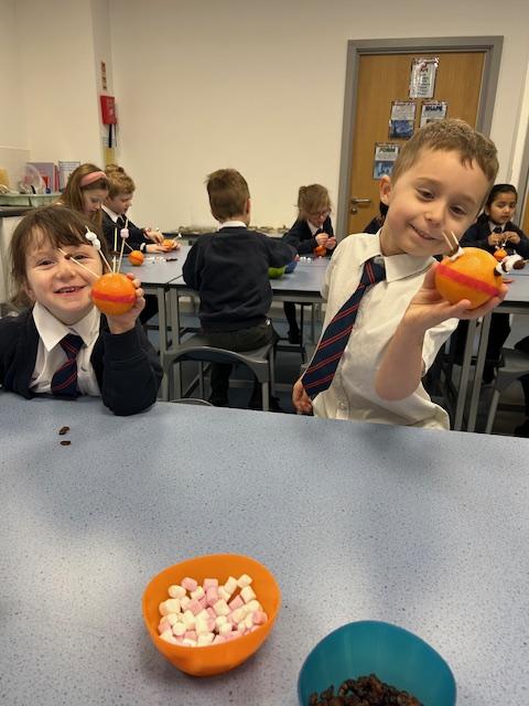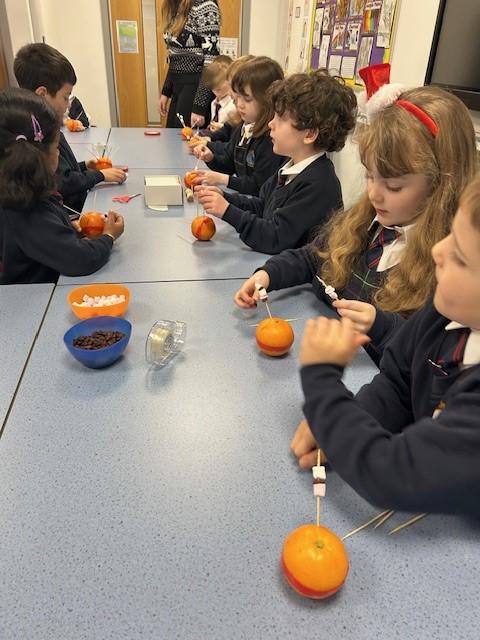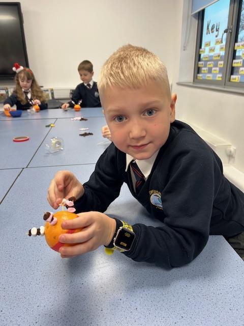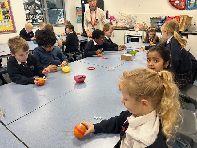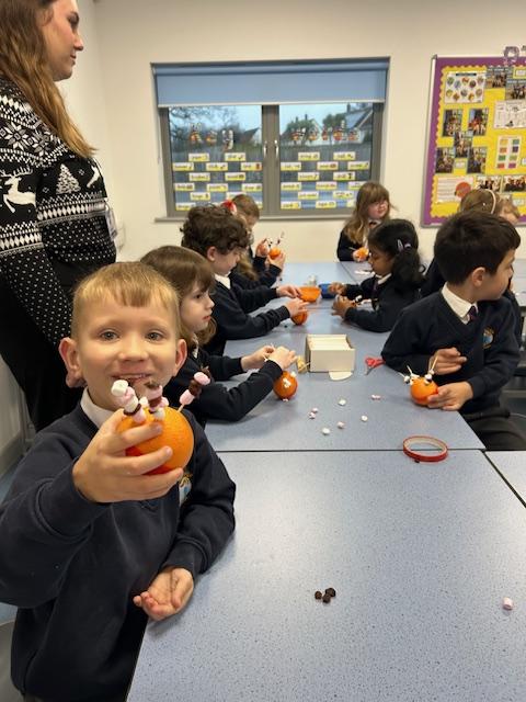 Rev. Sarah came in to school to help the children make Christingles this week. She told them what each part of the Christingle represented, and they all took them to our special Christingle assembly. Some of the candles were lit and it looked beautiful.