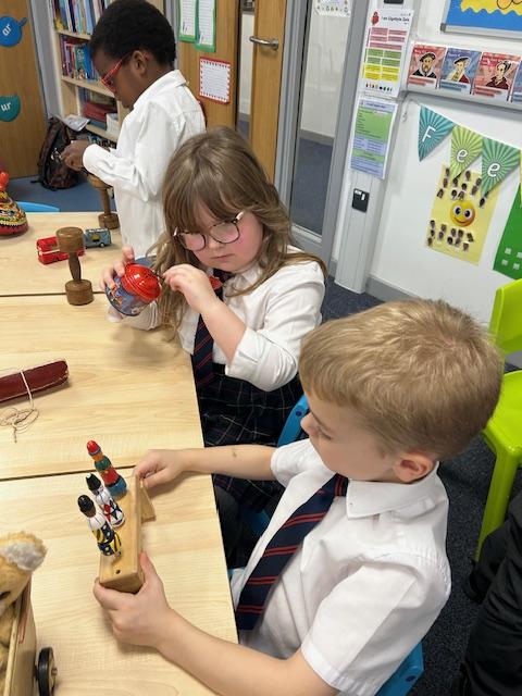 As part of our history topic on Toys, we had Natasha come and visit us from the Heritage Centre with lots of old toys for the children to see.