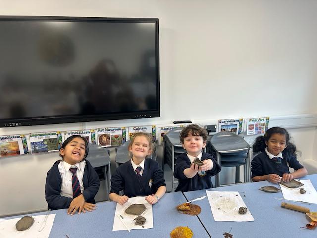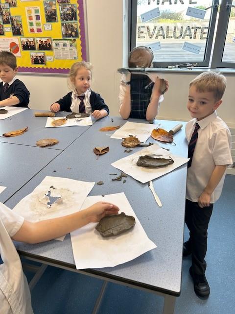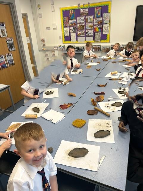 The children really enjoyed using Autumnal leaves in Outdoor Learning to create some beautiful clay bowls. They used the leaves to make an imprint on the clay and then cut these out and shaped them. They were very proud of their creations.