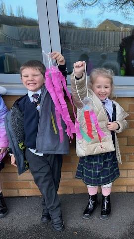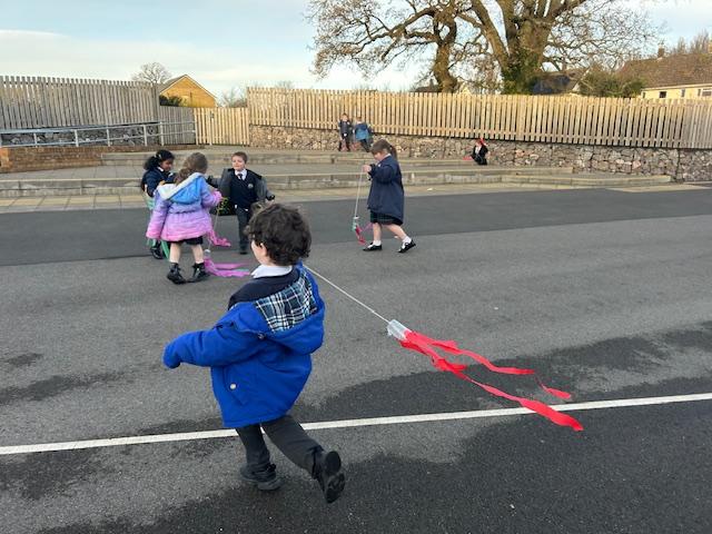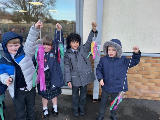 In Science this half term, the children have been learning about seasonal changes to the weather. This week we have been looking at wind, and the children created their own wind socks to use in the playground!