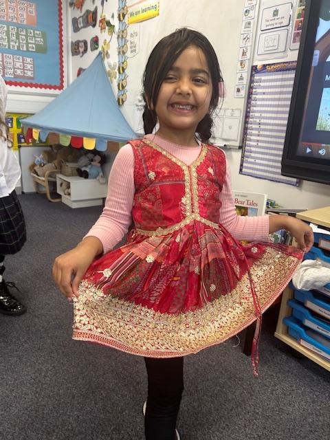 Aaranika came dressed in a beautiful outfit to celebrate Diwali and she brought all the children sweets too.