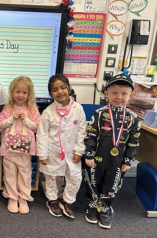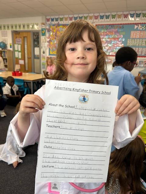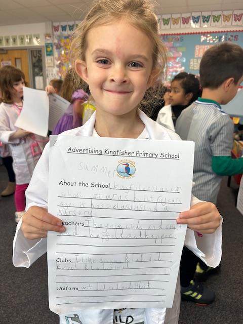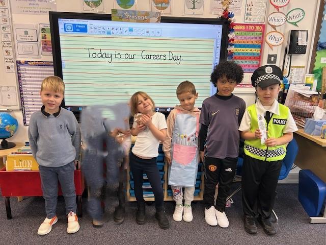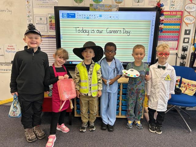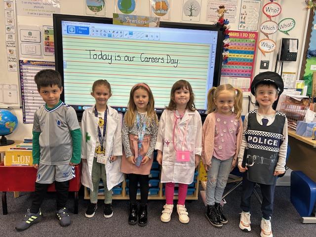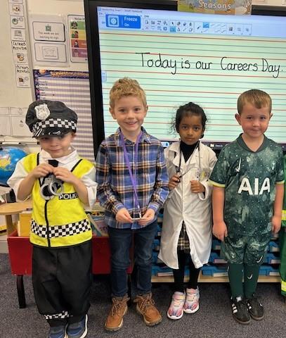 To launch our Careers at Kingfisher, we had a fun day discussing and learning about different career options. The children enjoyed coming dressed up using the theme,'when I grow up I want to be...' We had so many amazing costumes, and it was great to see and discuss with them, what career aspirations these young children have now. Dragonfly Class spent the morning being Advertisers (promoting Kingfisher School) and Market Researchers (investigating what favourite crisp, chocolate bar and cereal names the class perferred). During the afternoon, we had different careers for the children to role-play, including Police, Vets, Teachers, Builders, Nurses/Doctors and Shop Keepers.