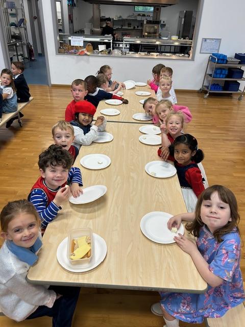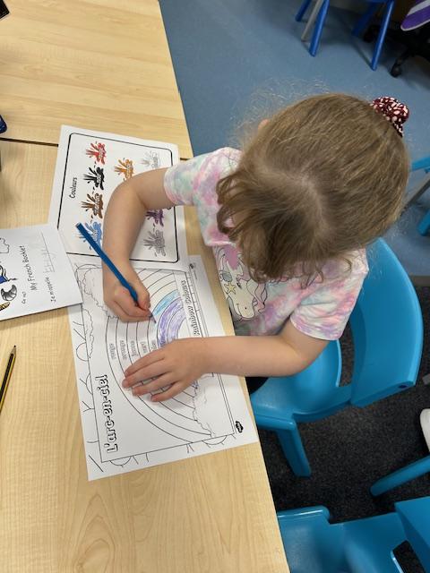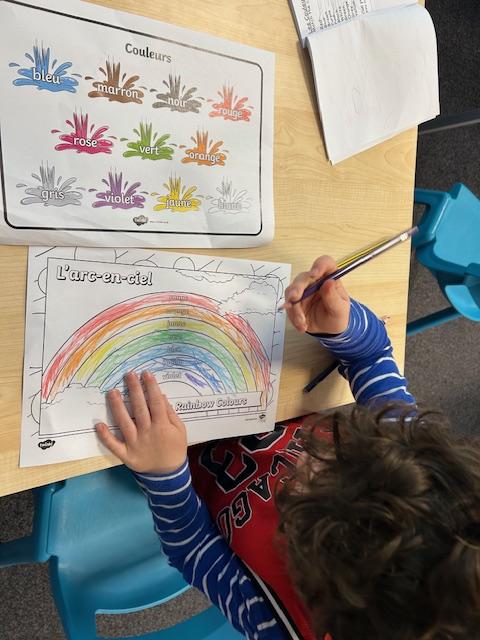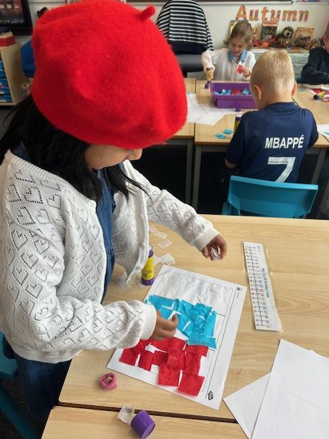 We had great fun on Languages Day learning all about France. The children had booklets to complete where they learned how to count up to 12 in French and also what different colours where in French too. They tasted different French food including, crepes, baguette, brie and madeleine cakes. They sang French songs, learned some basic french phrases and made collages of the French flag. It was 'tres bien!'