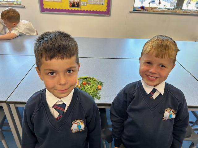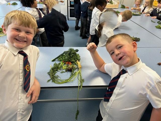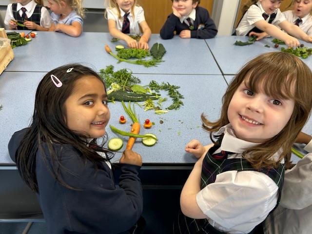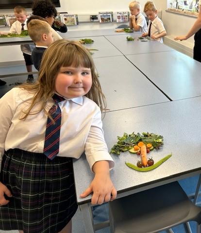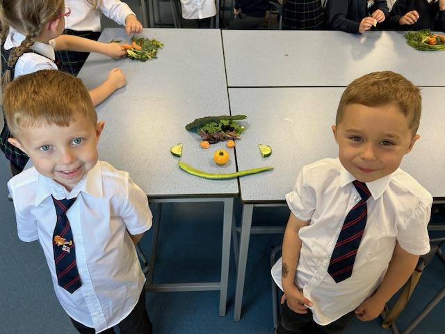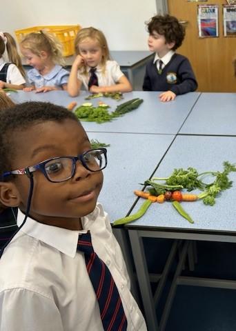 Our Art topic at the moment is drawing portraits. Over the last few weeks the children have been learning about different styles of portrait, and have learned about an artist from 500 years ago called Arcimboldo. This artist used fruit, vegetables and flowers to create some very unusual portraits and the children recreated his style and made their own portraits out of vegetables!